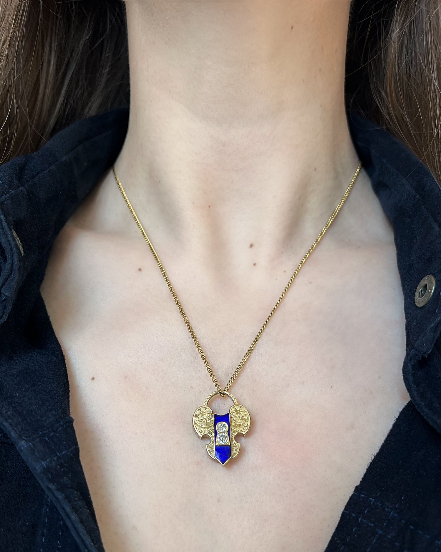 A superb Victorian high carat gold and diamond heart padlock pendant.