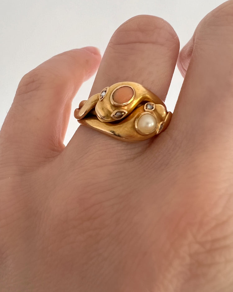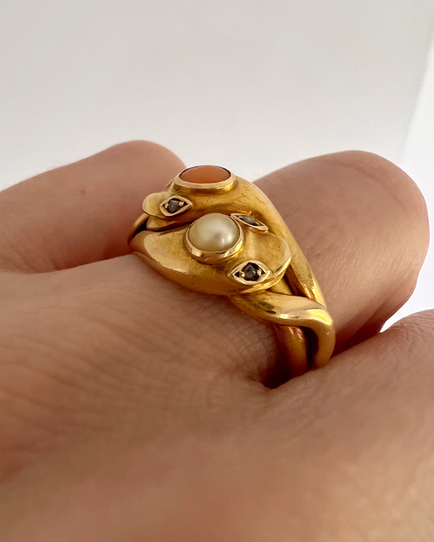 An epic Victorian double snake ring made of gorgeous yellow 18ct gold!