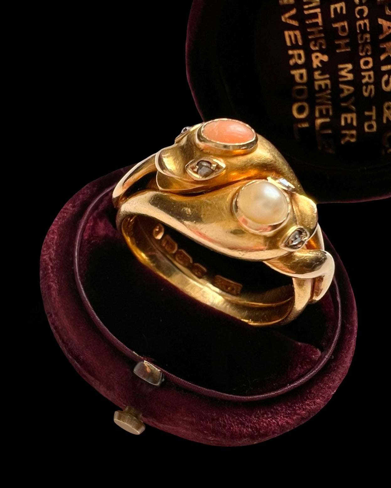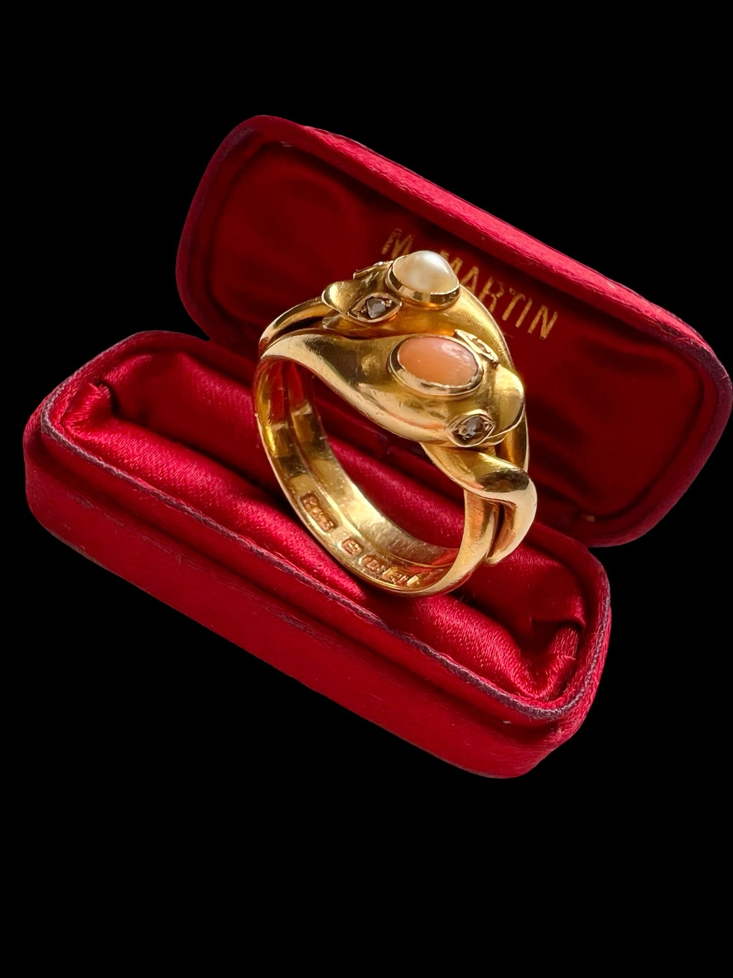 VICTORIAN 18CT GOLD DOUBLE SNAKE RING