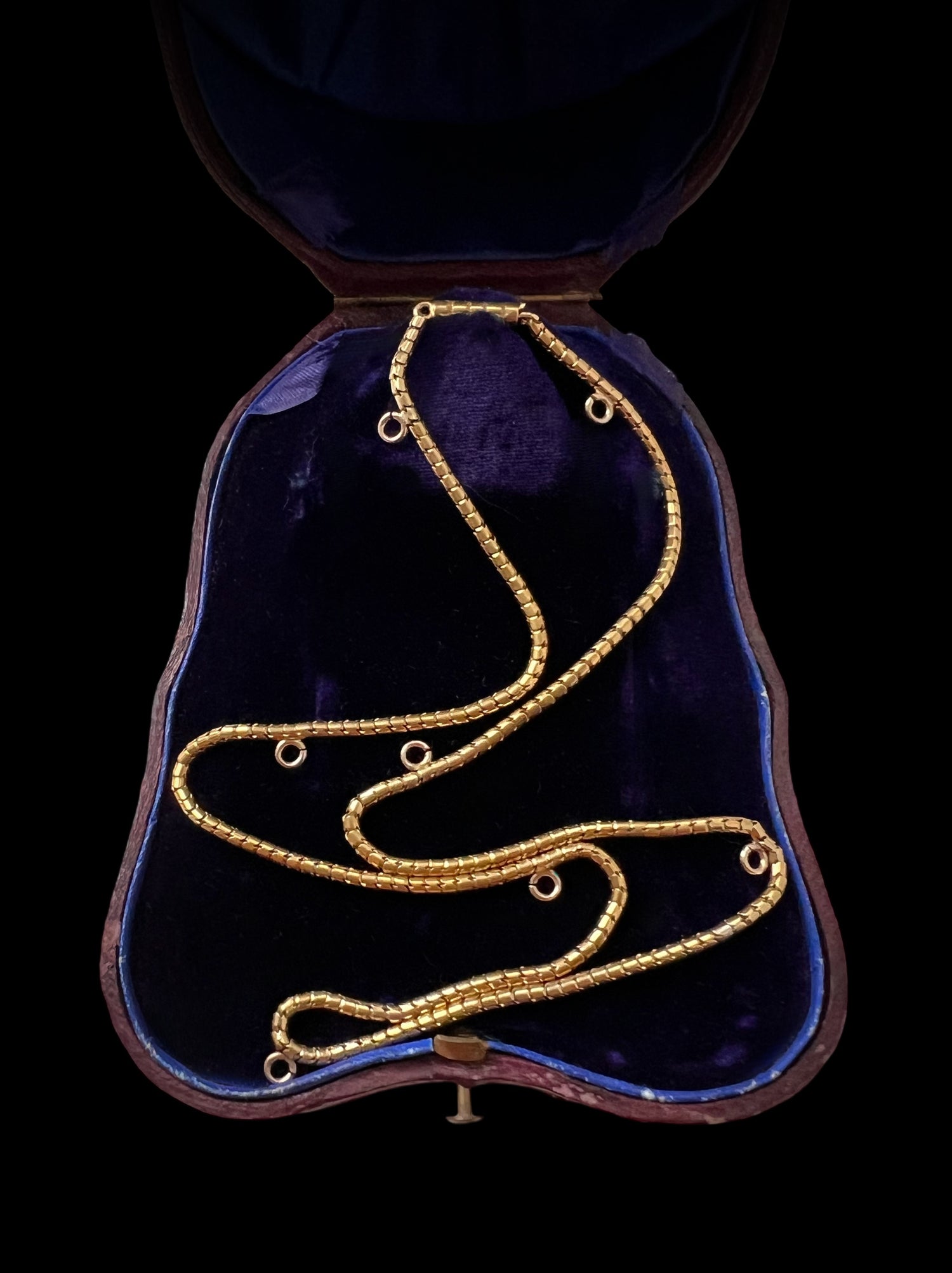 This is a lovely fine Victorian snake link chain made of 18ct gold.