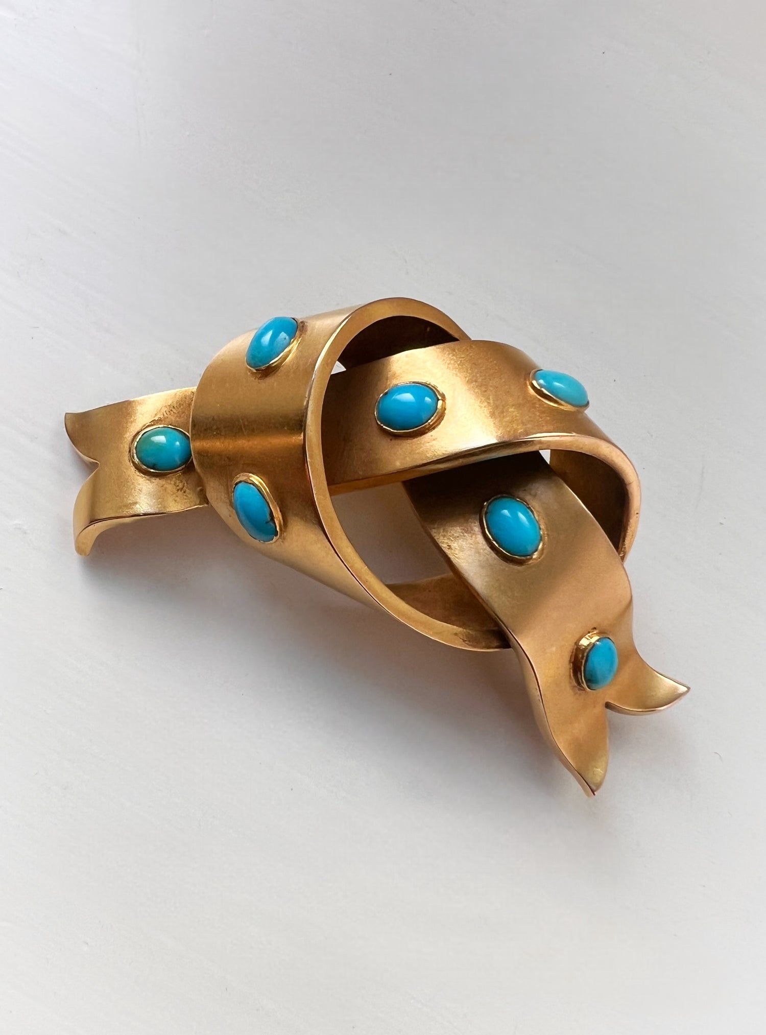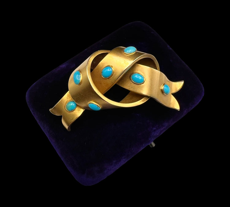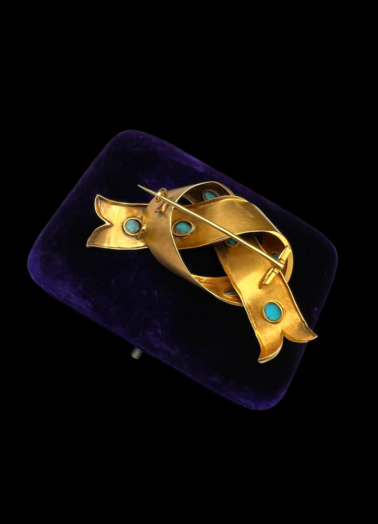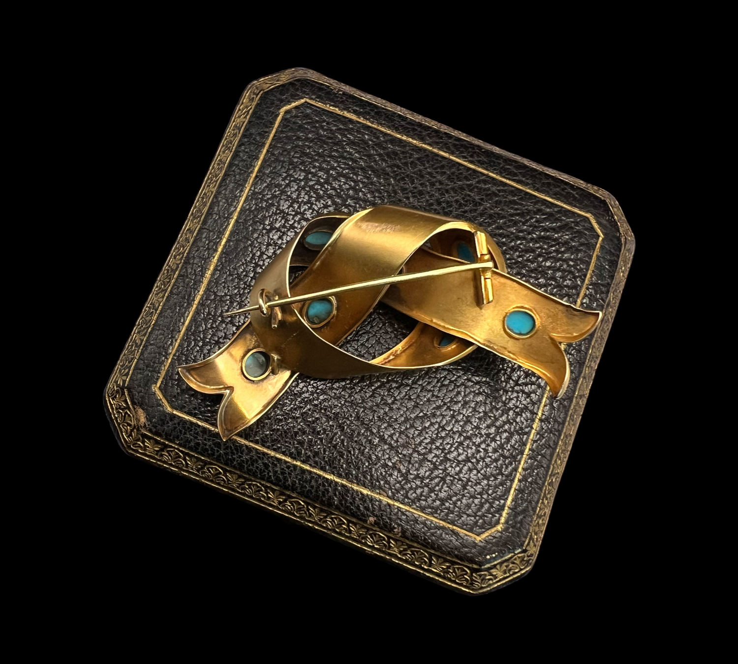 VICTORIAN 18CT GOLD & TURQUOISE KNOT BROOCH