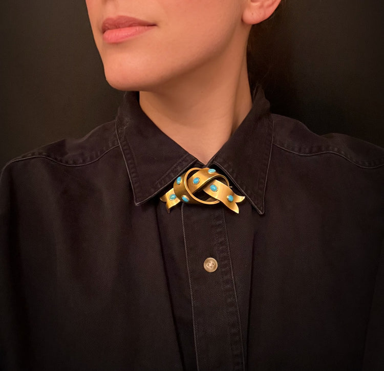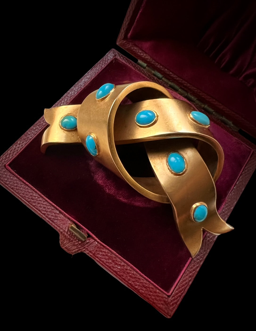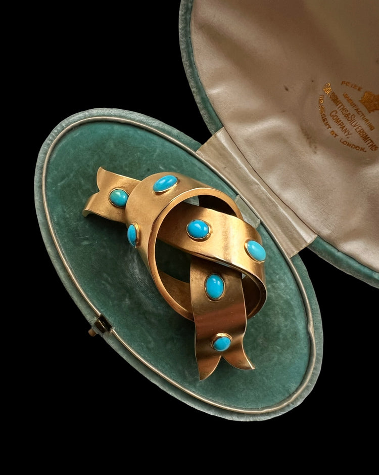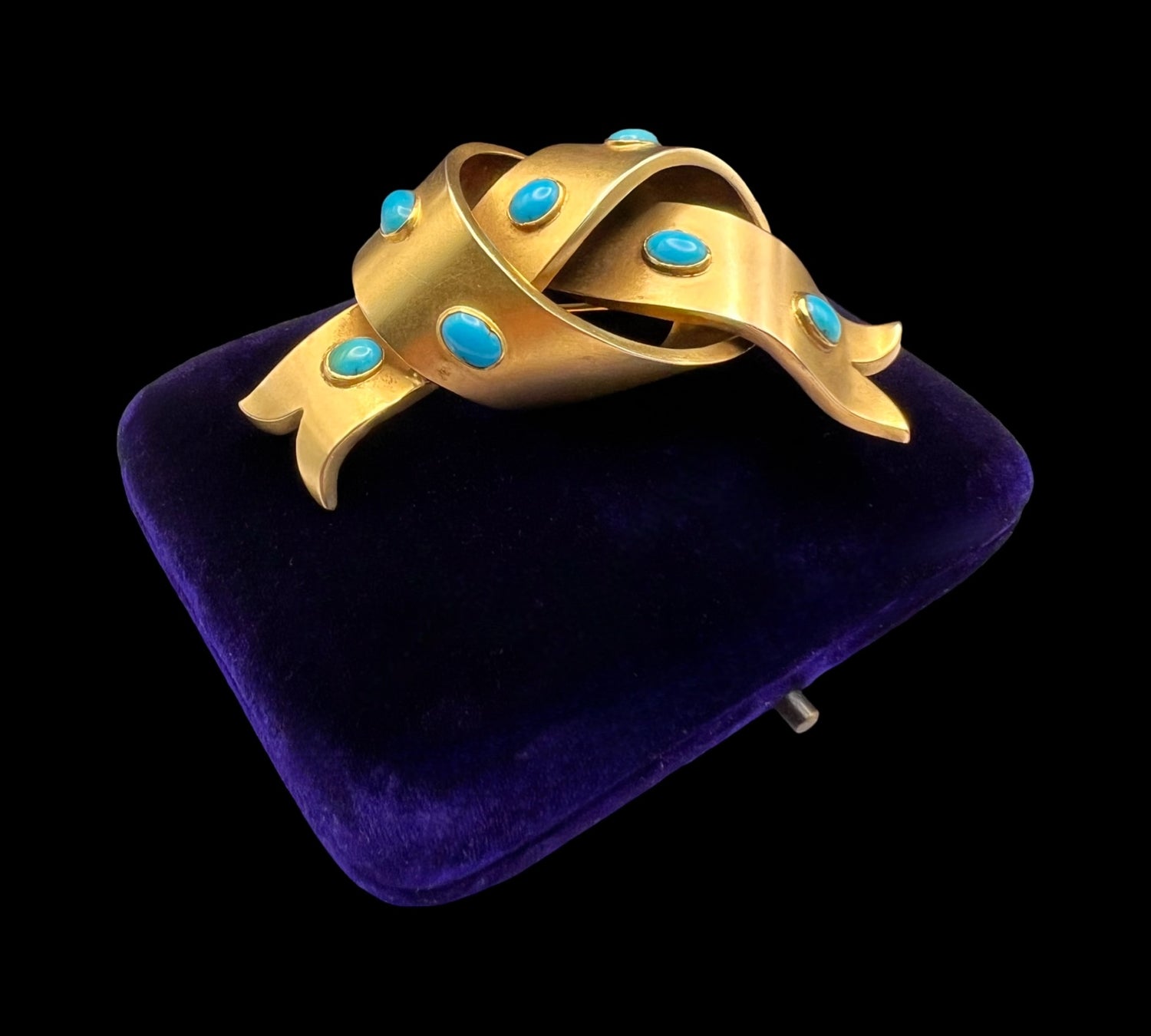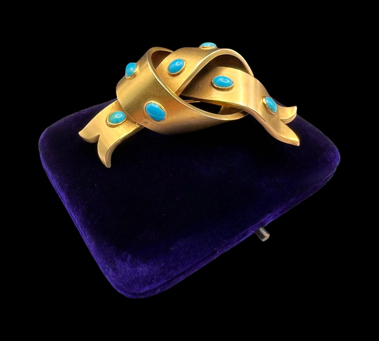 VICTORIAN 18CT GOLD & TURQUOISE KNOT BROOCH