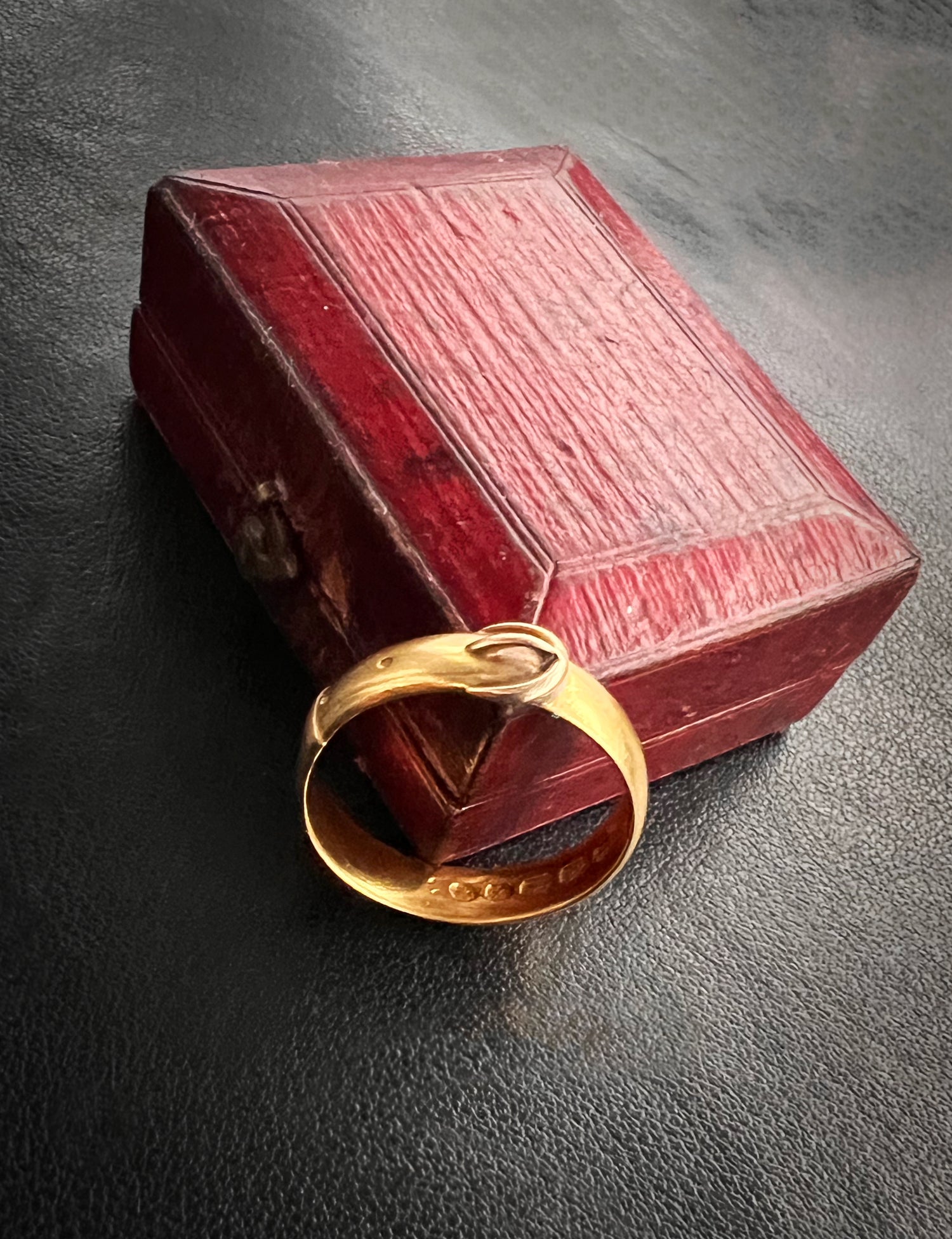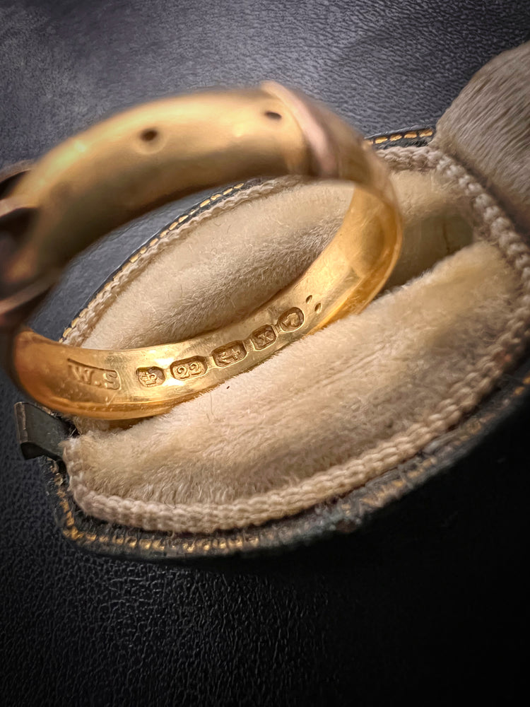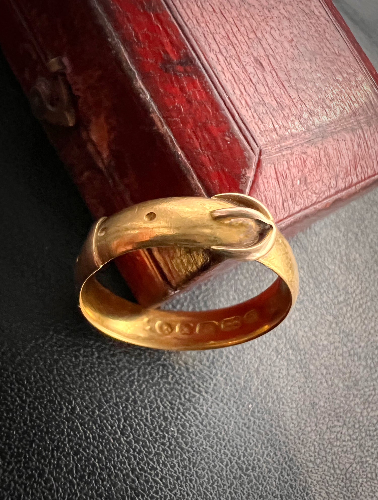 This is a gorgeous 22ct yellow gold Victorian buckle ring, with a wonderfully simple design.