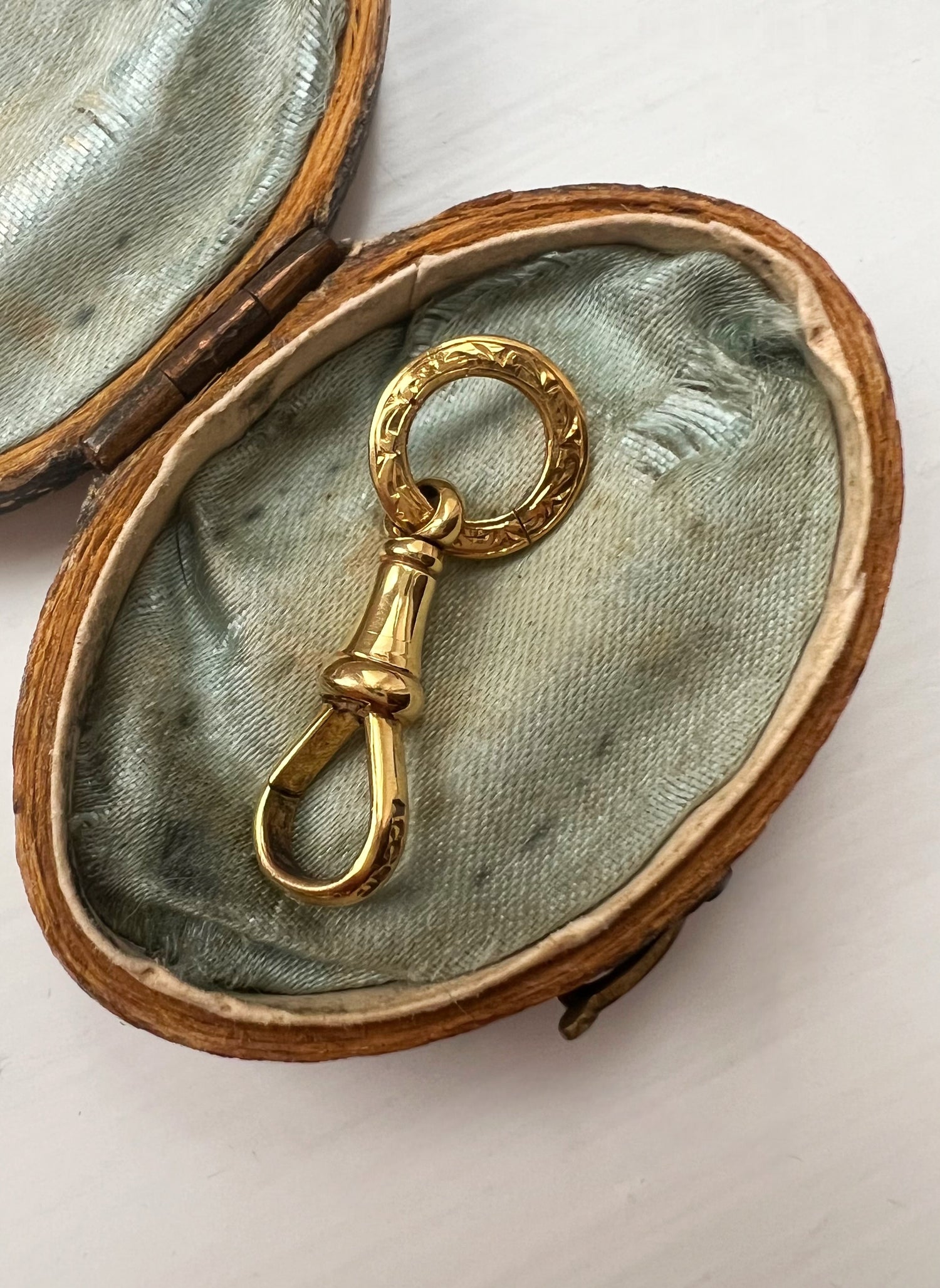 VICTORIAN 9CT DOGCLIP WITH ORIGINAL CHASED BAIL