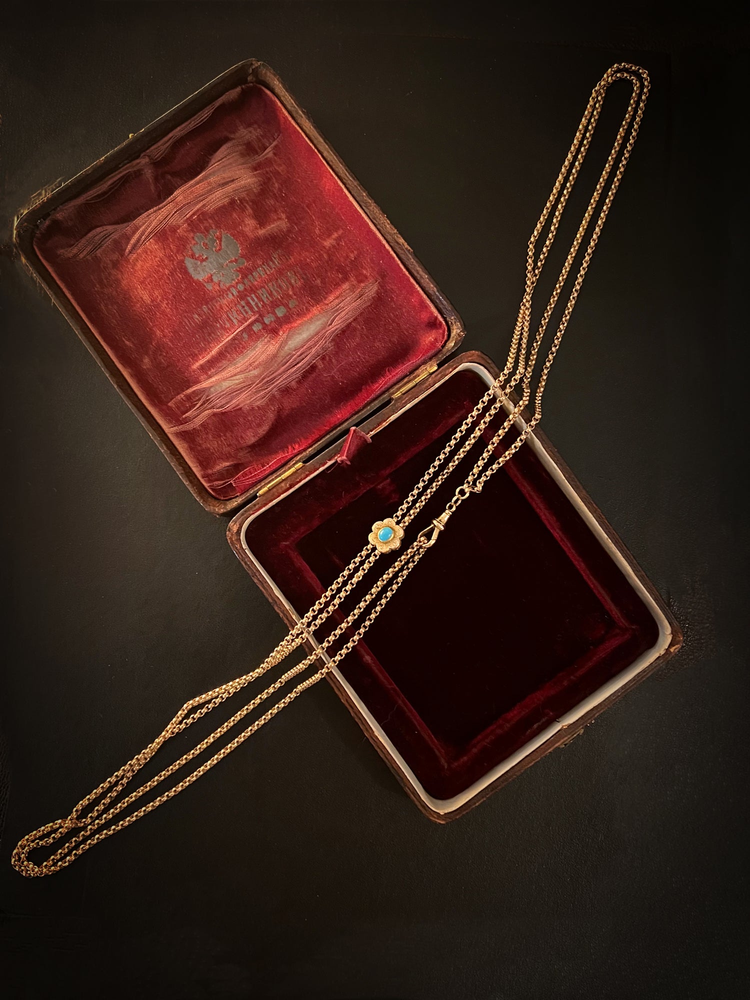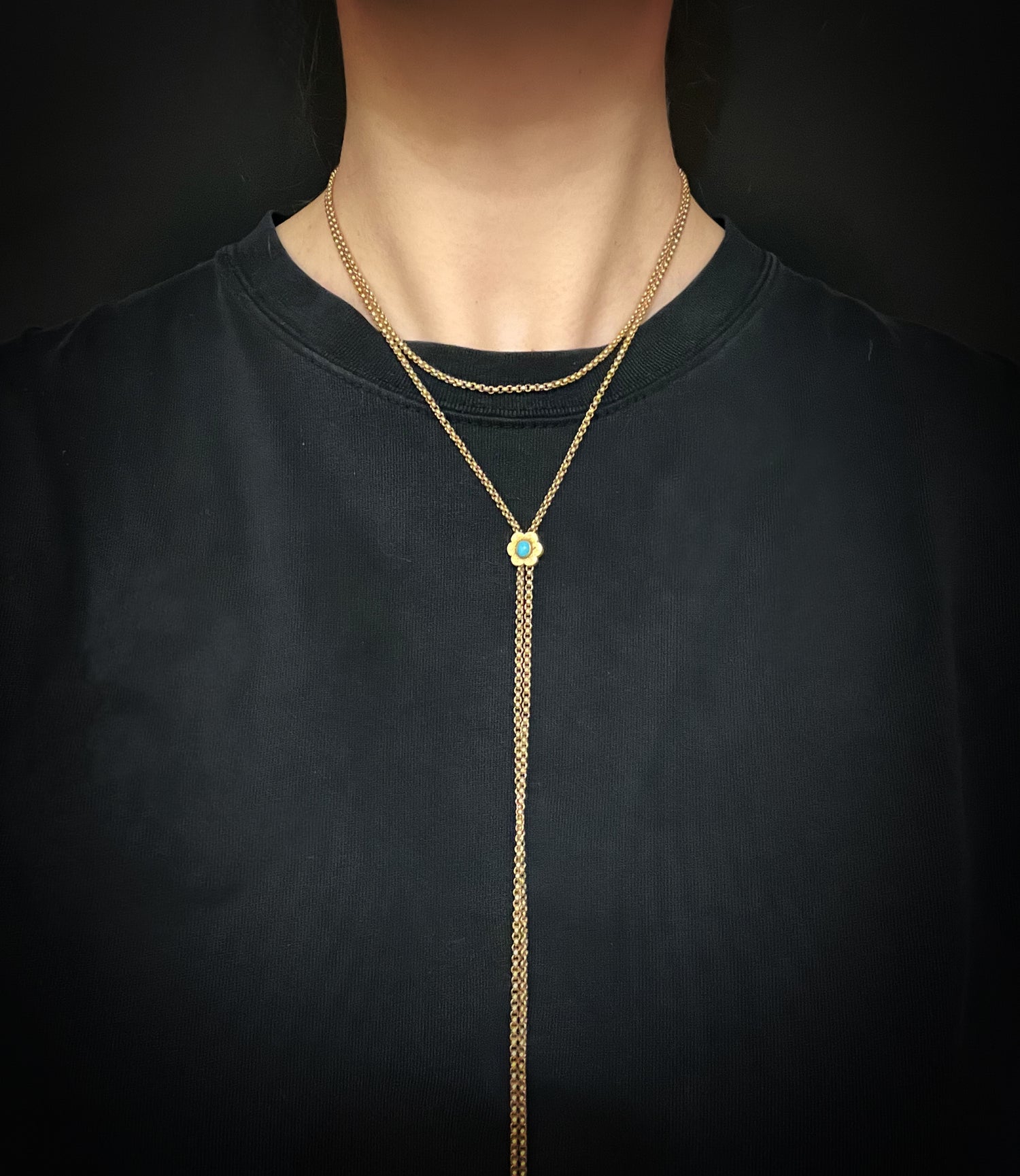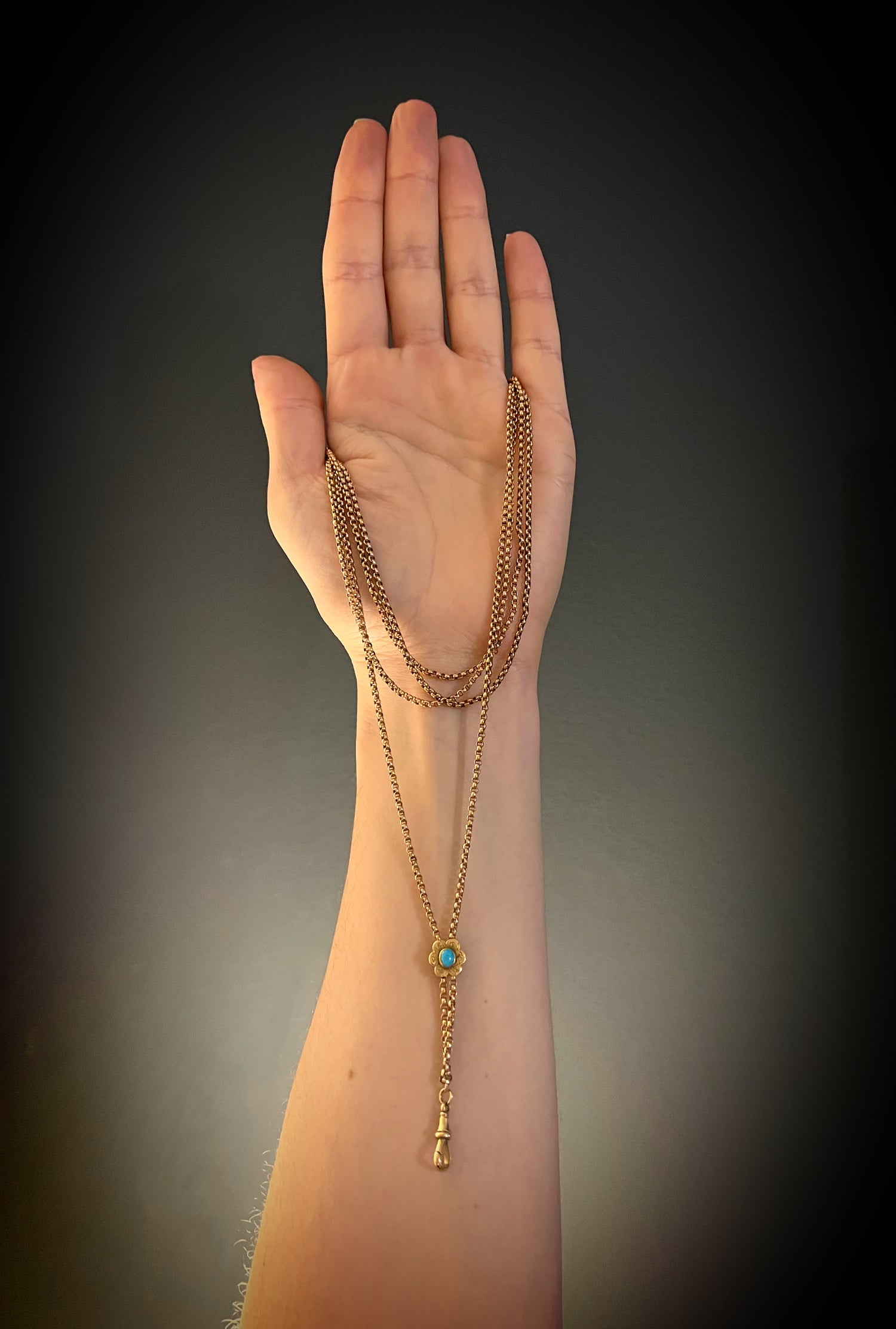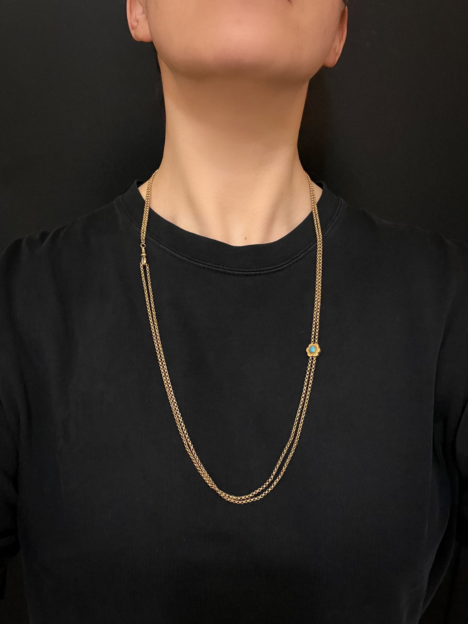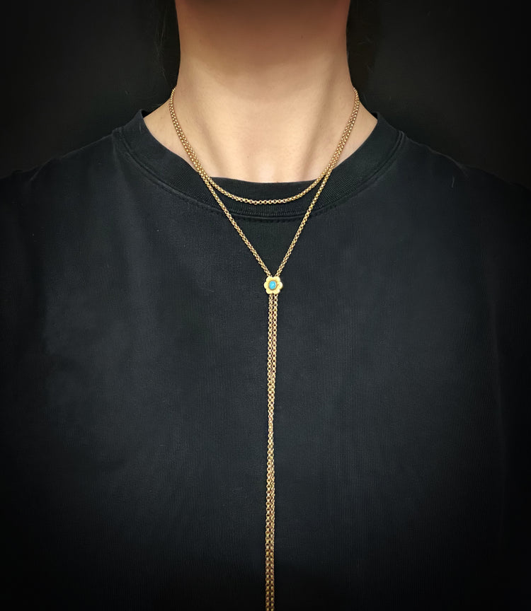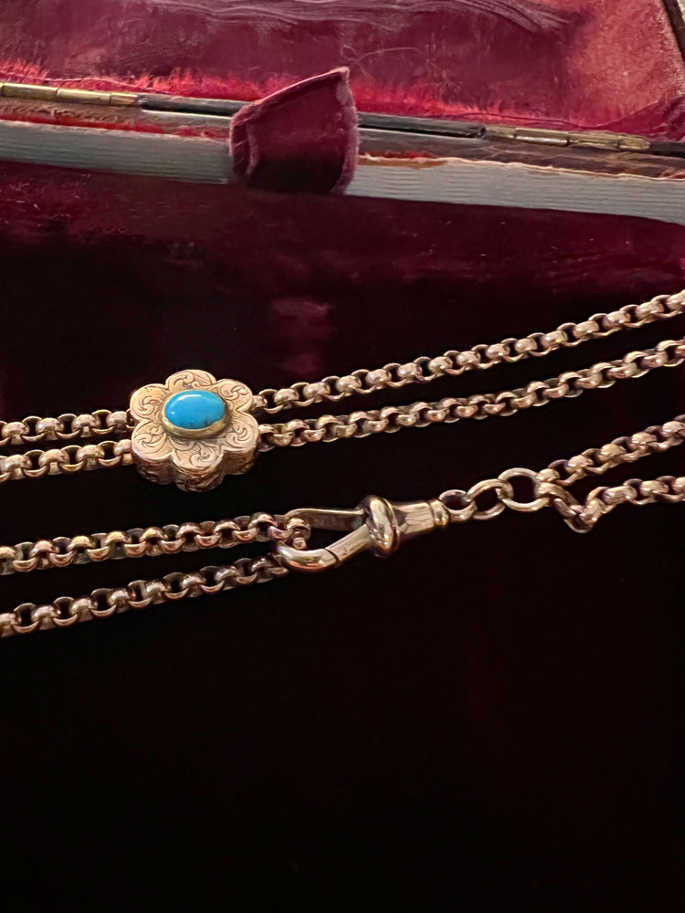VICTORIAN 9CT GOLD CHAIN WITH TURQUOISE SLIDER