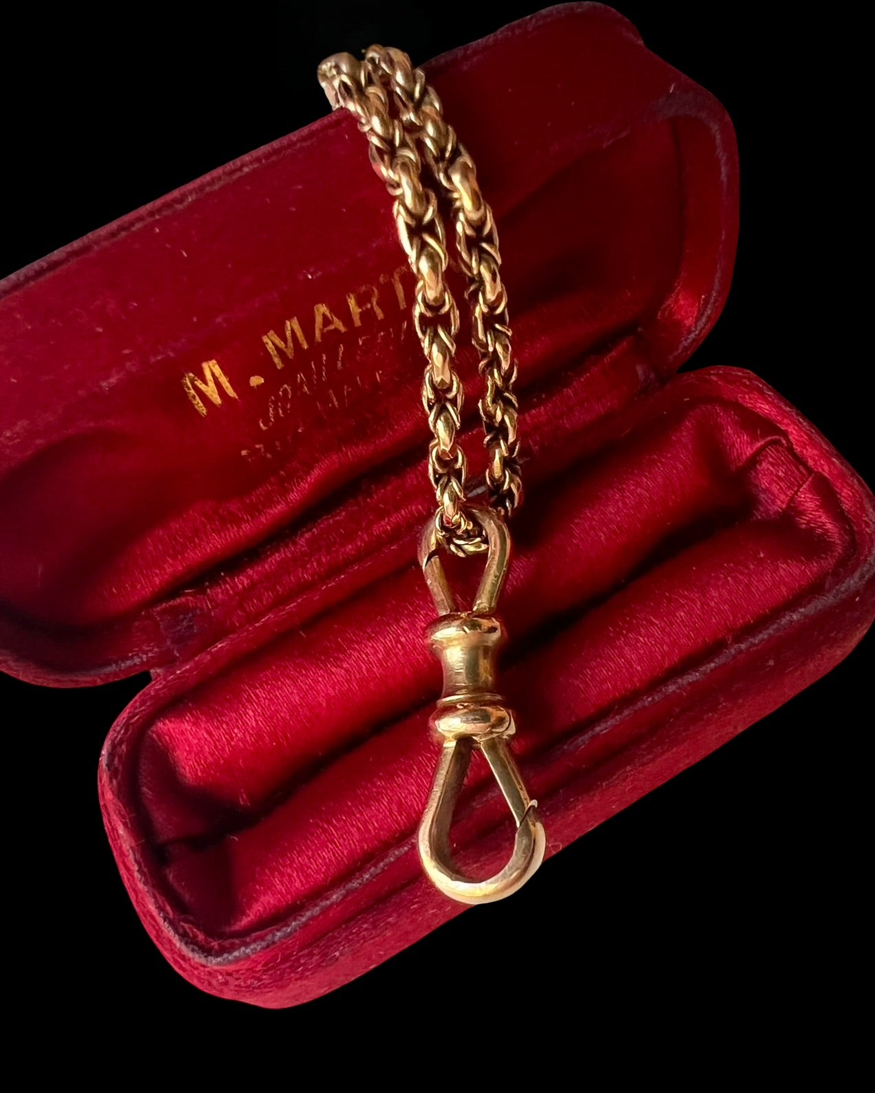 The dogclip has one larger chunky clip and the other slightly smaller, so you can choose which way round to use for different thickness chains.