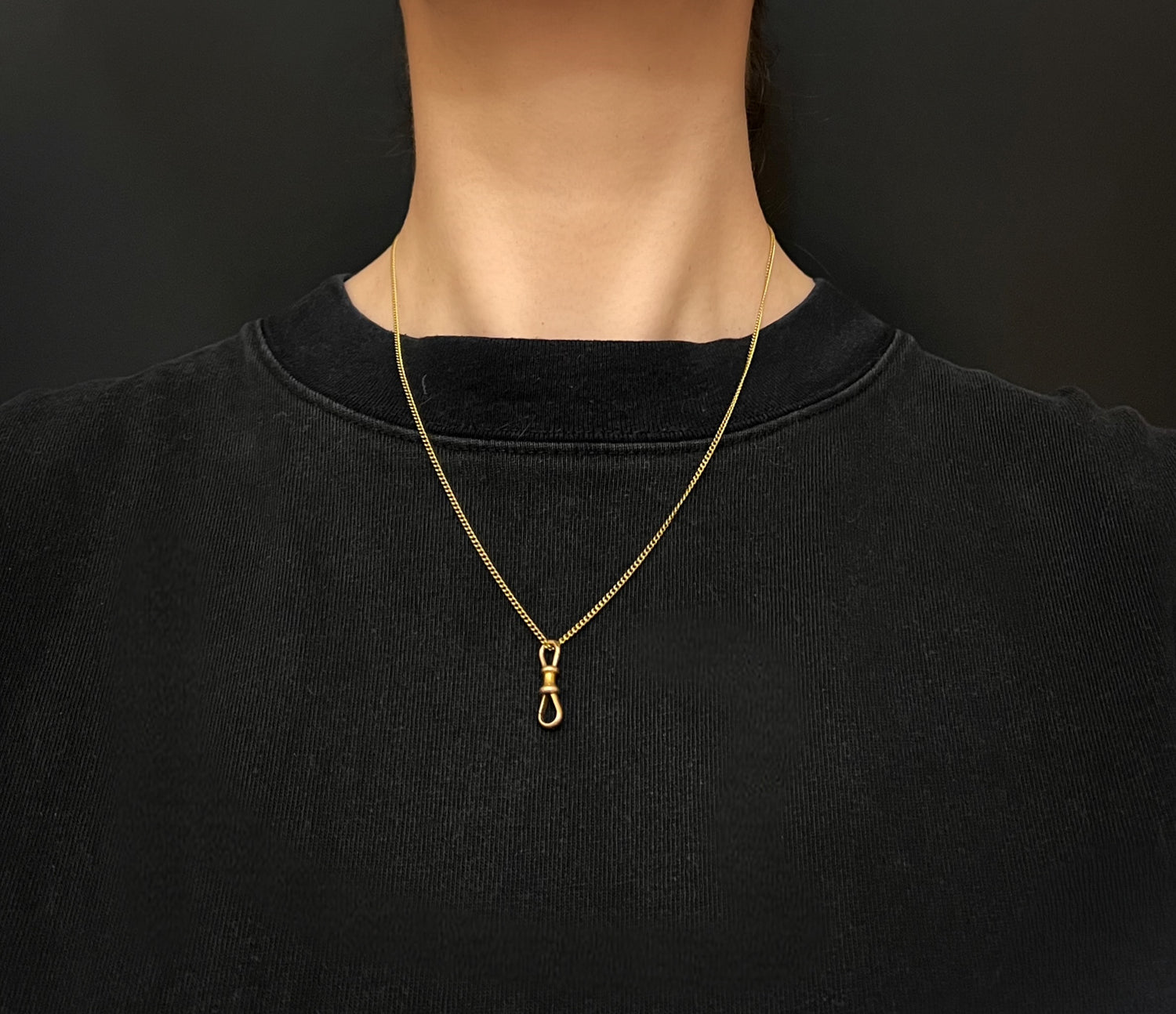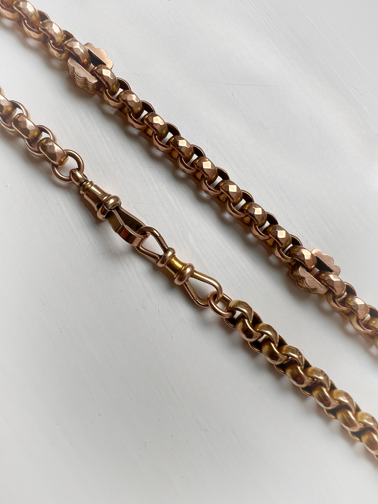 The dogclip has one larger chunky clip and the other slightly smaller, so you can choose which way round to use for different thickness chains.