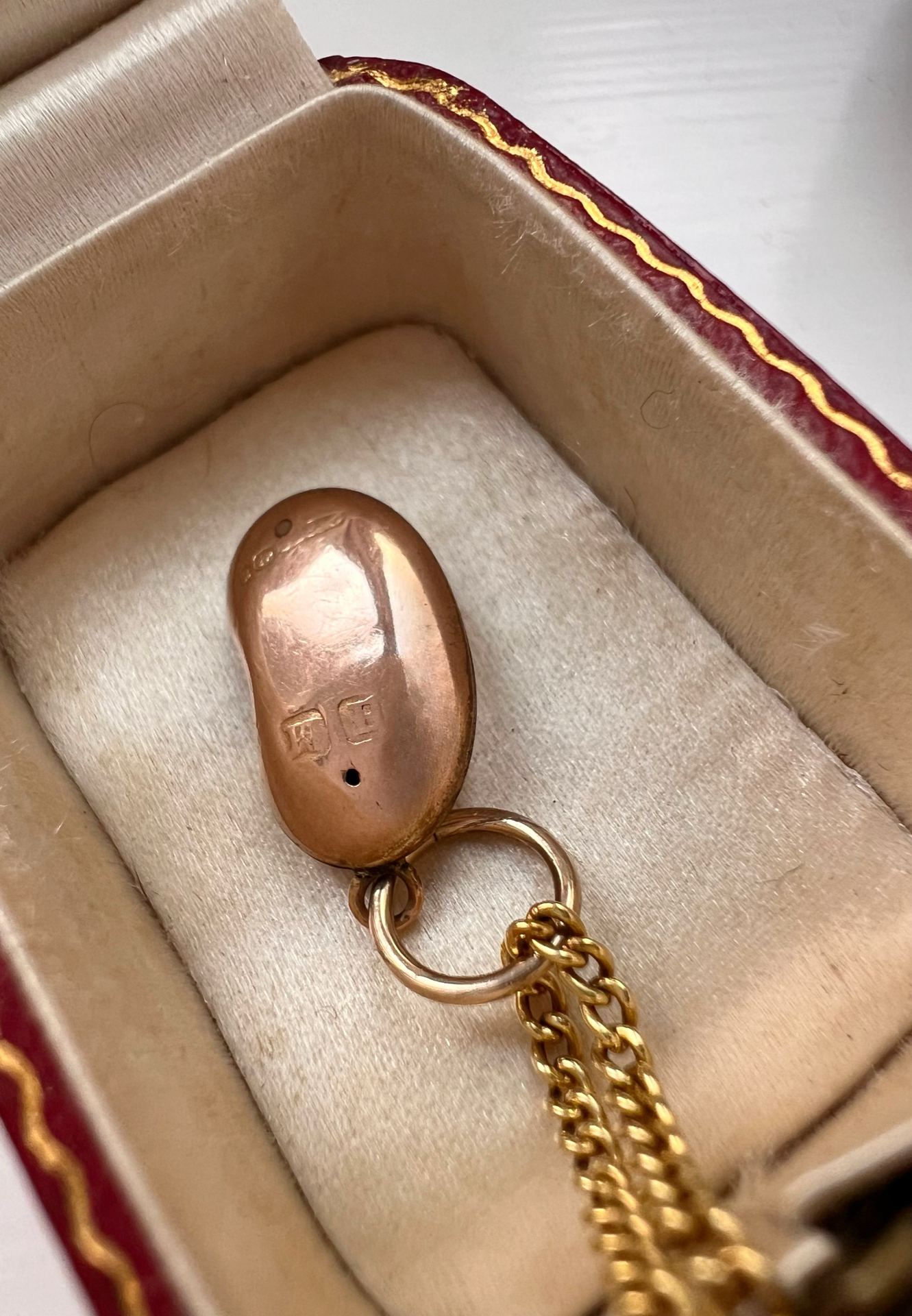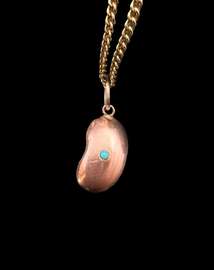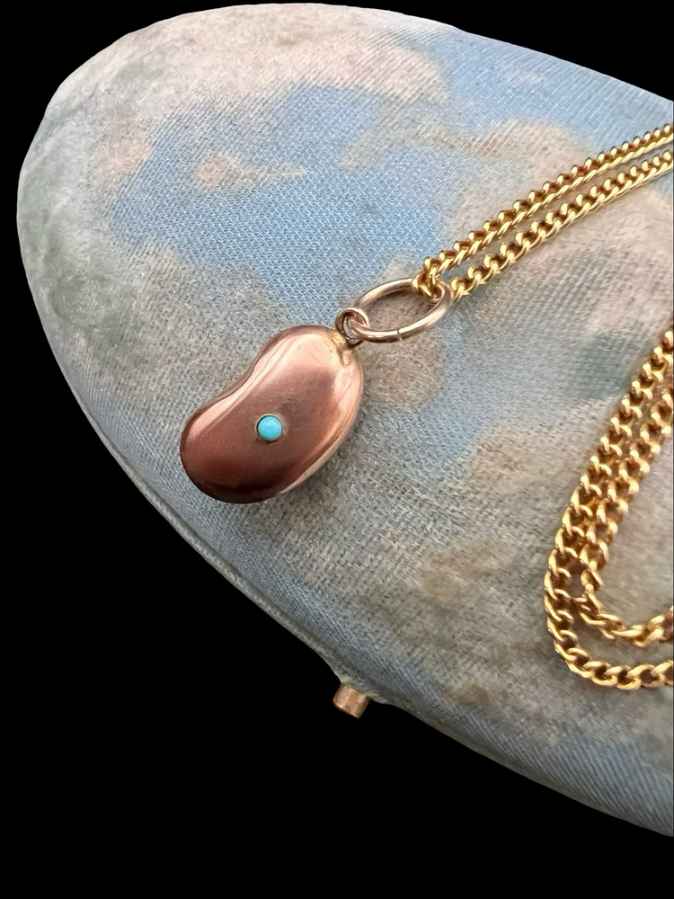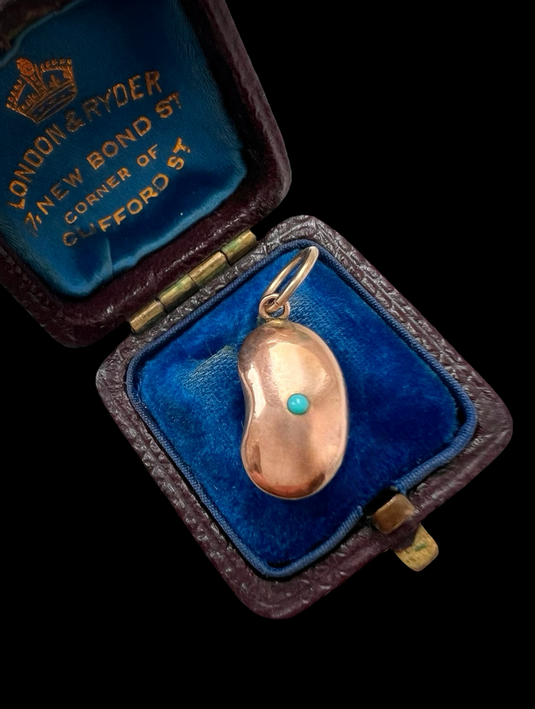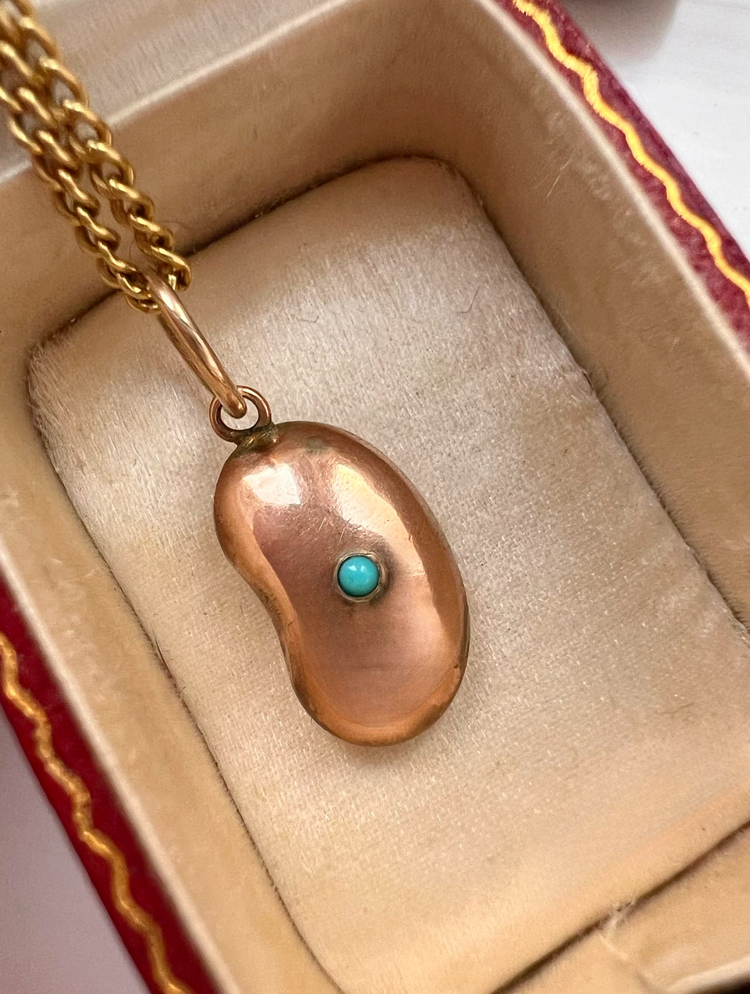 VICTORIAN 9CT GOLD & TURQUOISE LUCKY BEAN PENDANT
