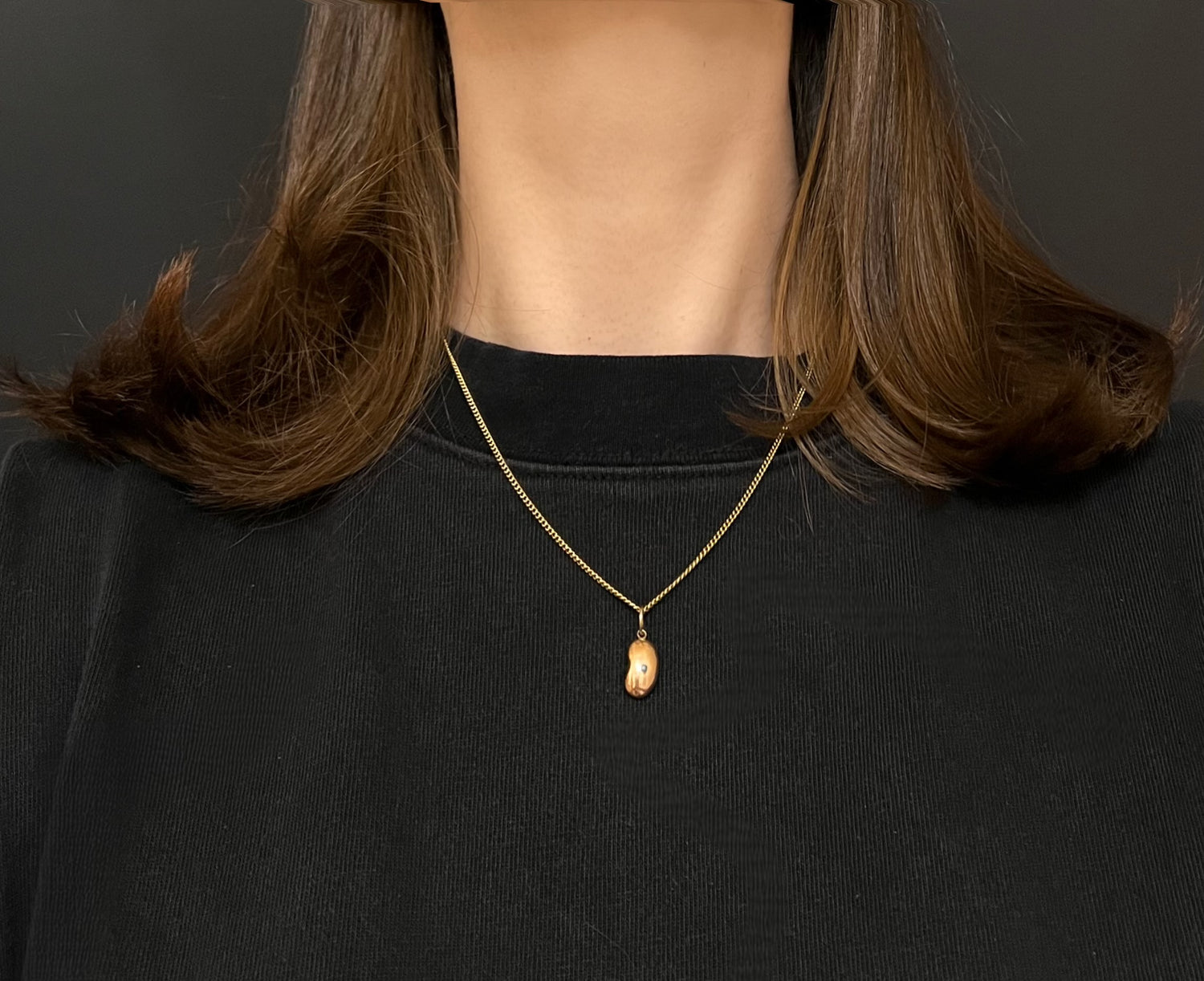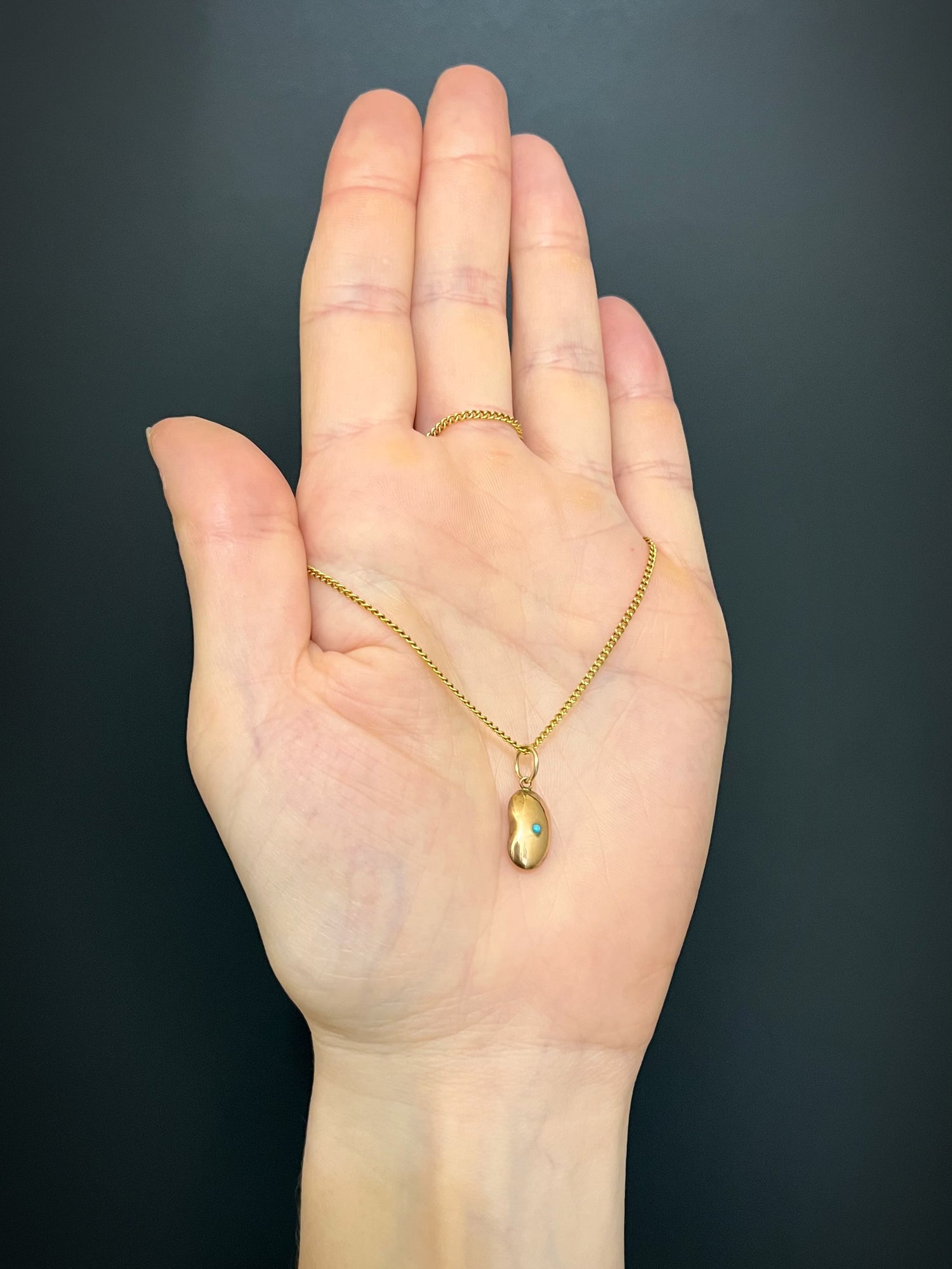 A super cute mini Victorian Lucky Bean pendant made of 9ct gold and set with a tiny cabochon Turquoise.
