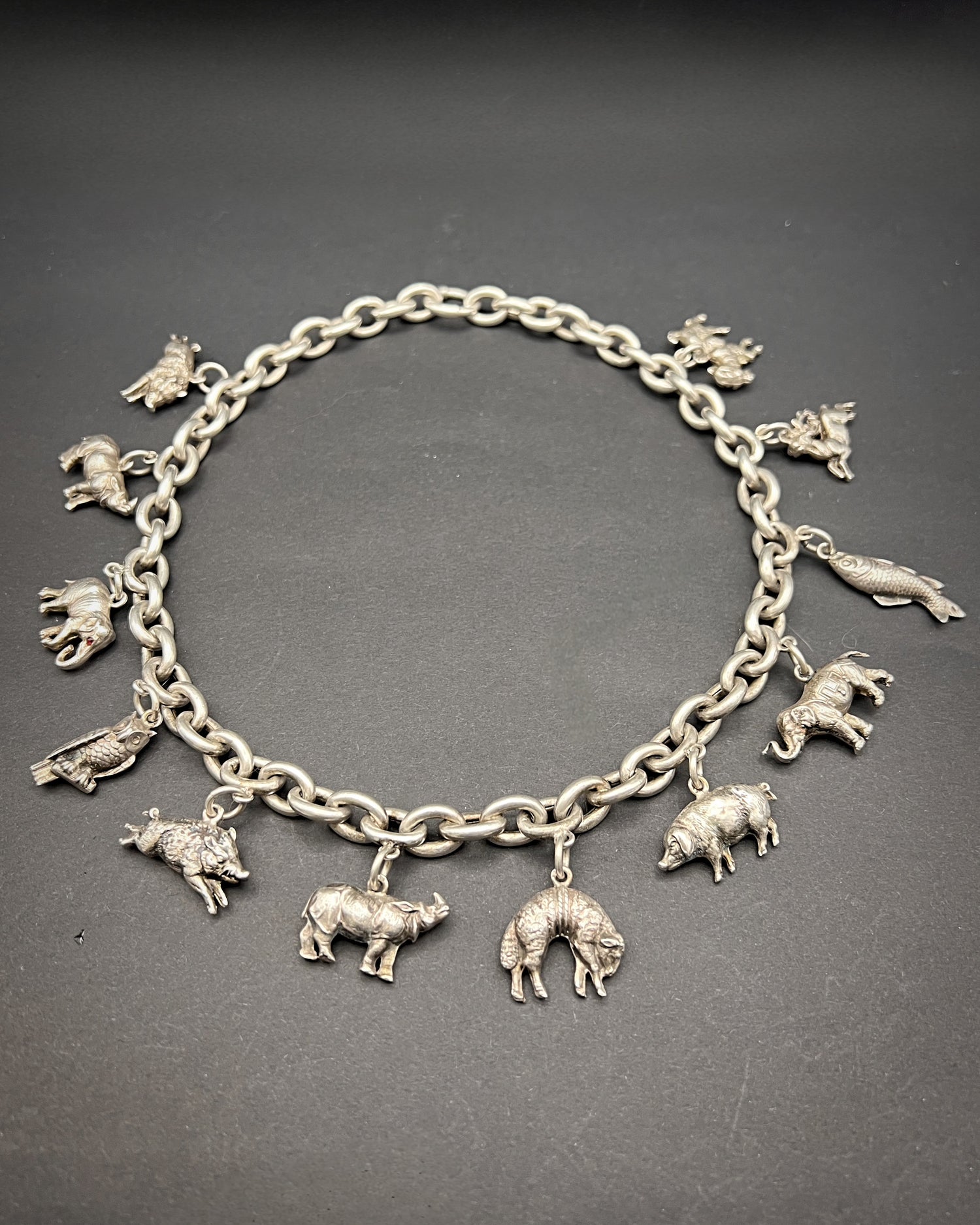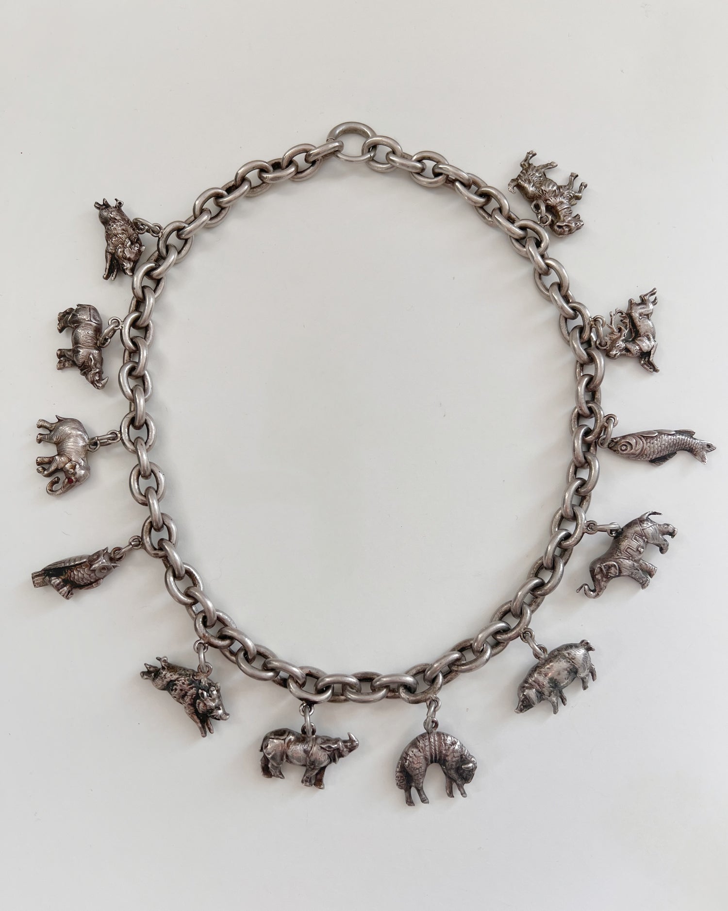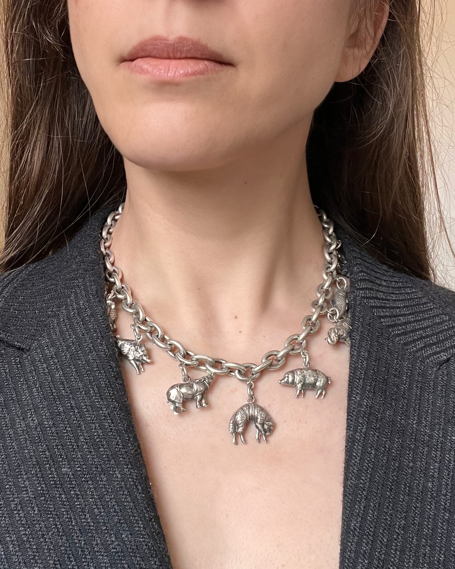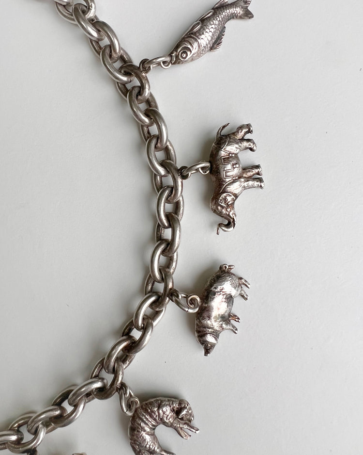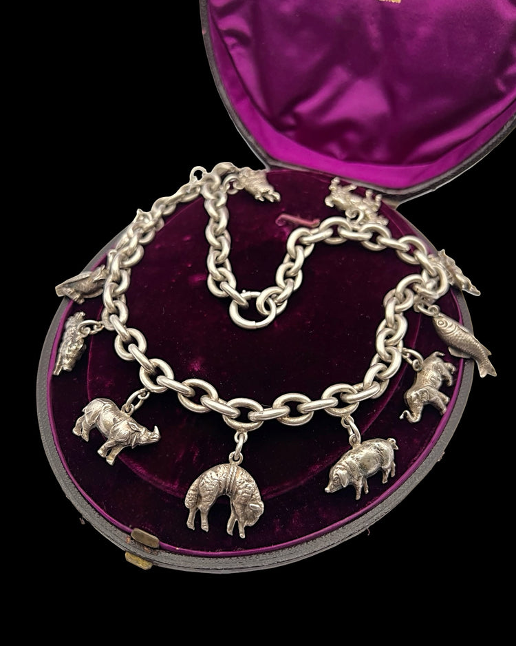 The coolest Victorian animal charm silver necklace.