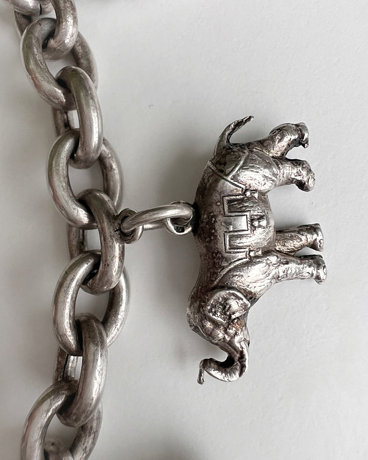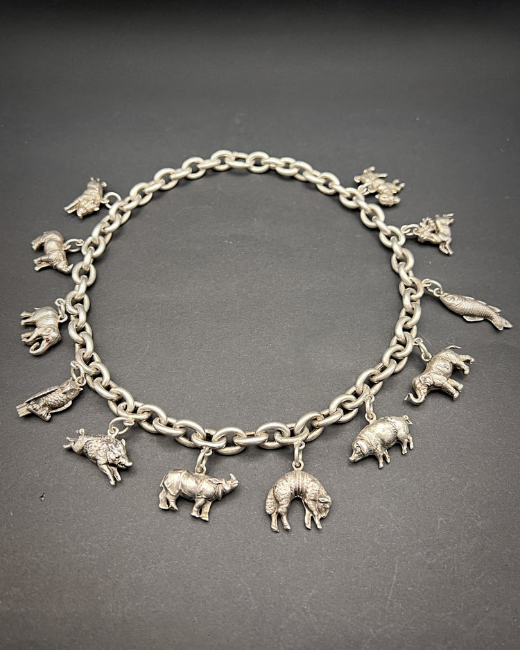VICTORIAN ANIMAL CHARM CHUNKY SILVER NECKLACE