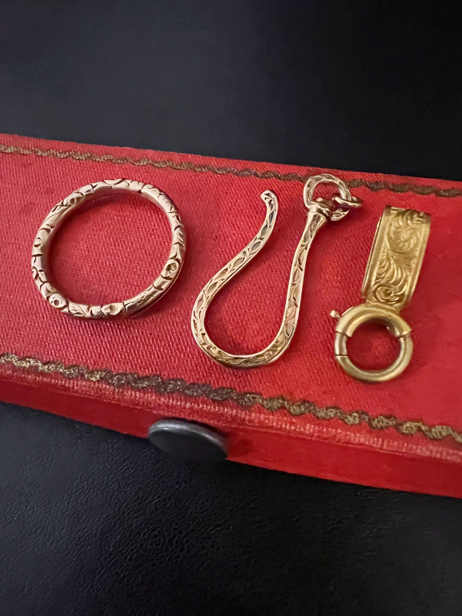 This is a stunning 15ct gold Victorian hook with a wonderful chased foliage pattern.