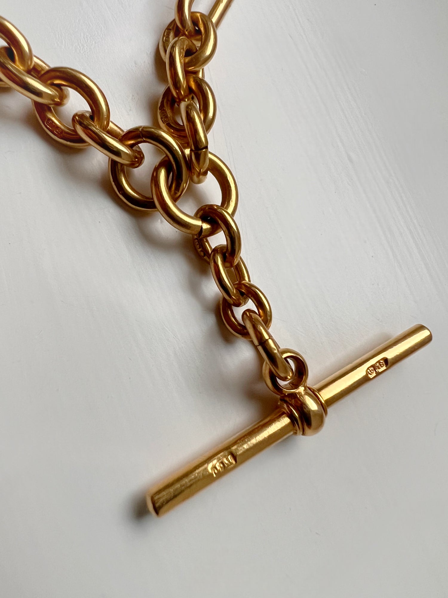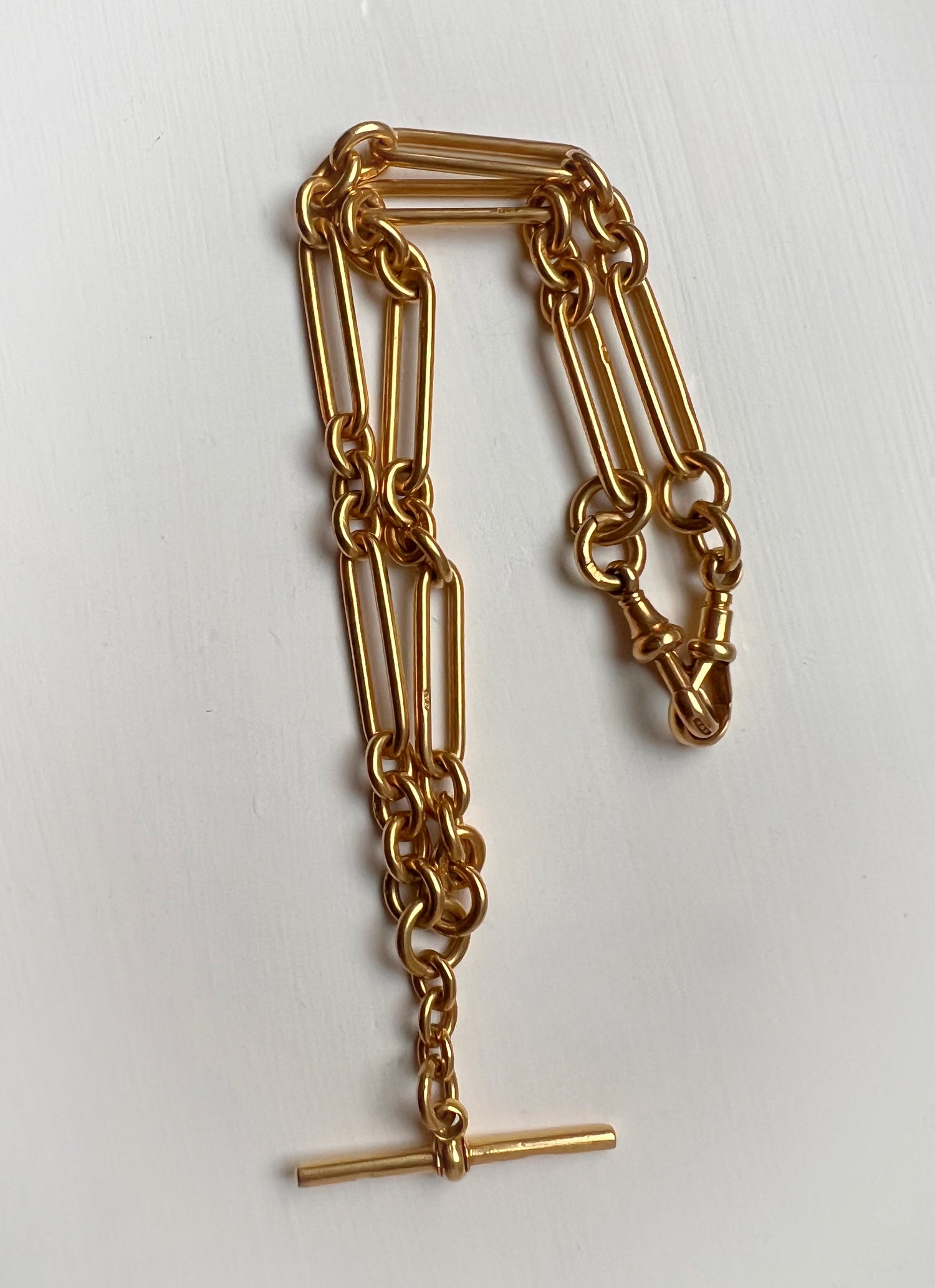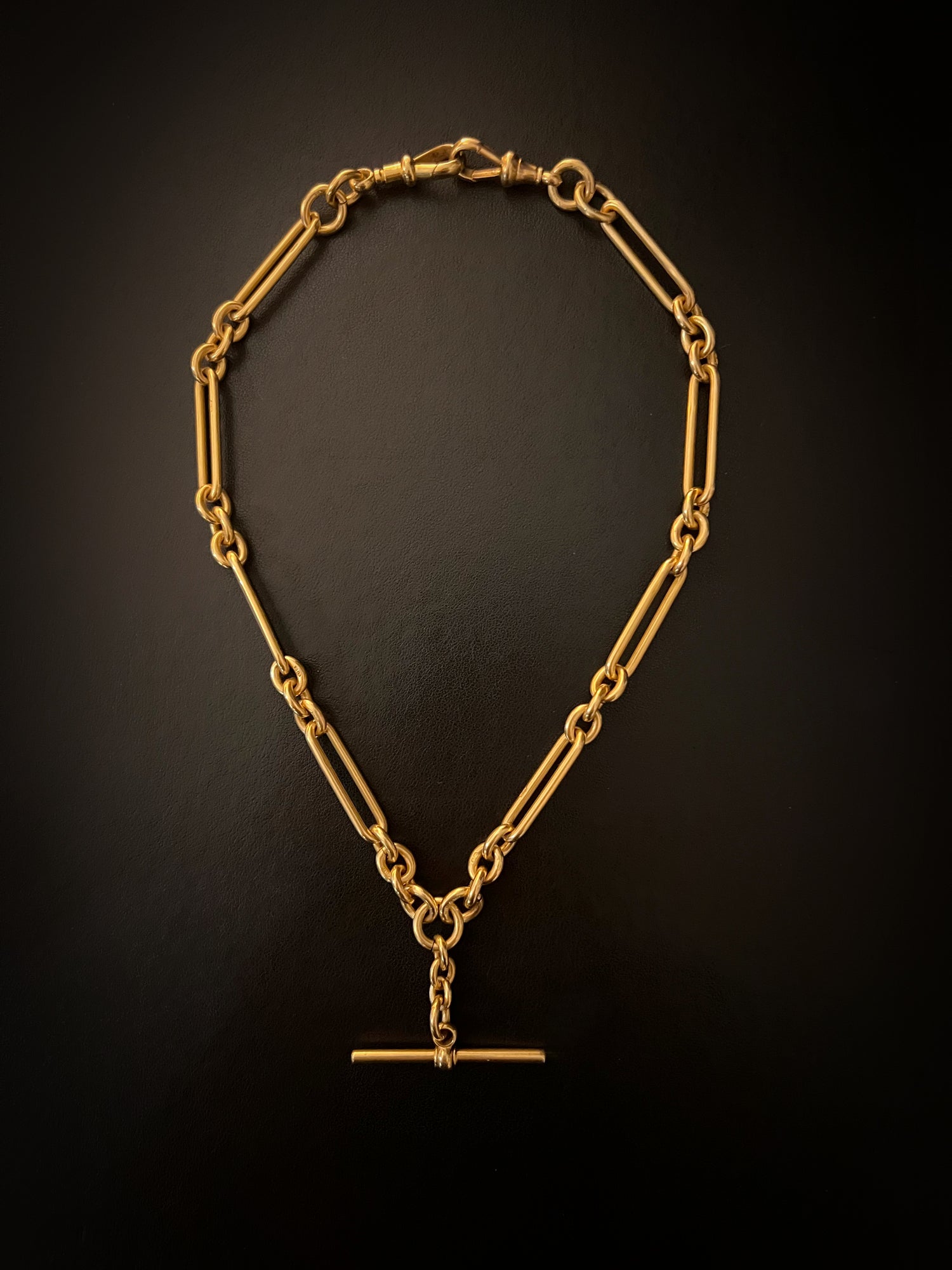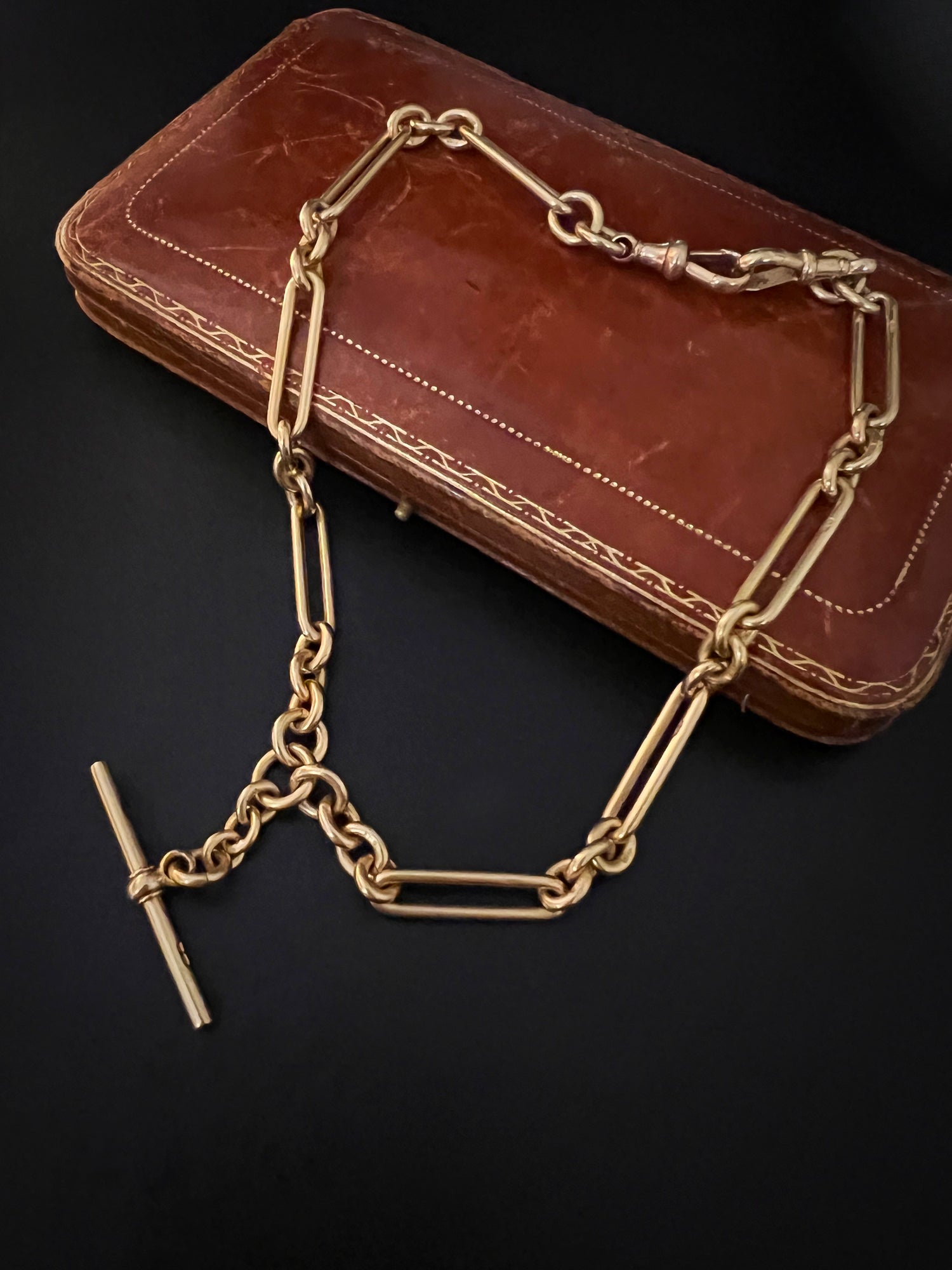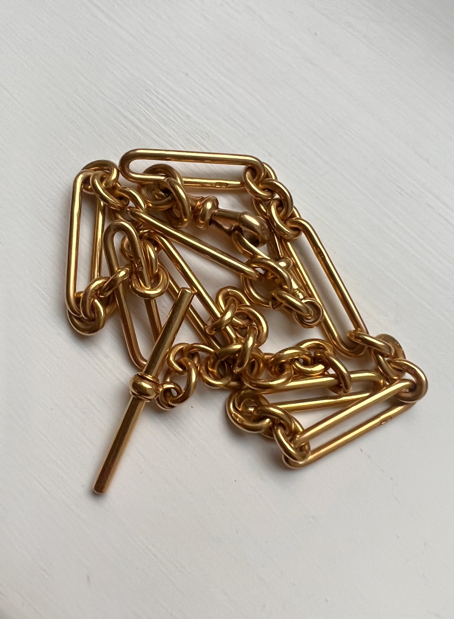 A stunning Victorian chunky 18ct gold paperclip/trombone Albert chain with T-bar.