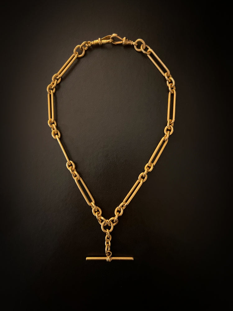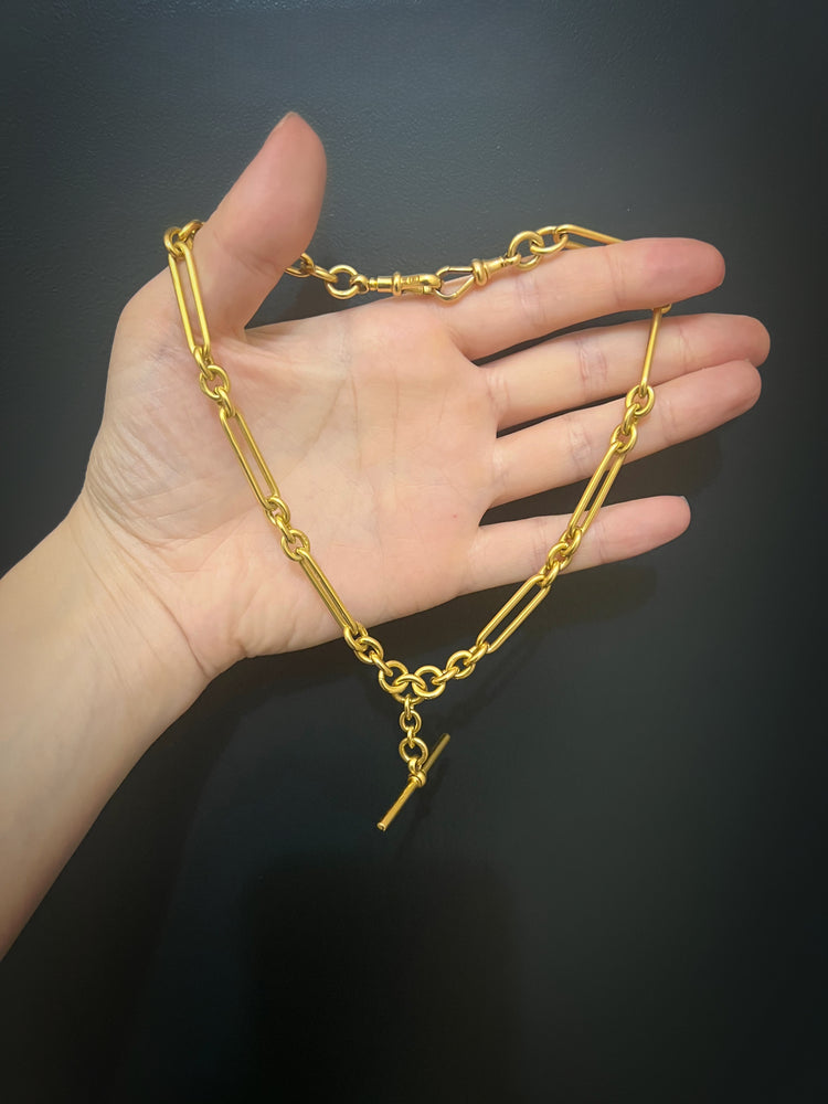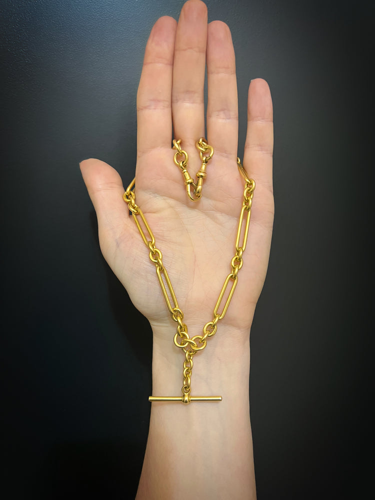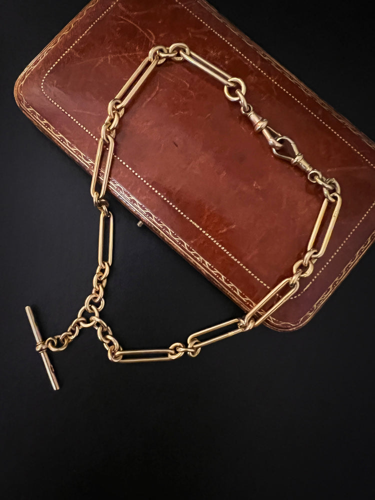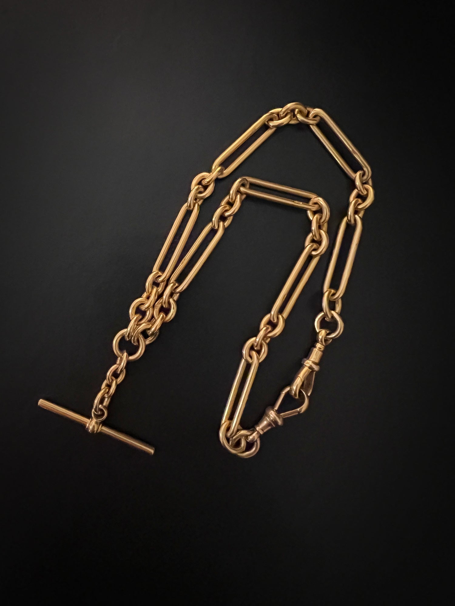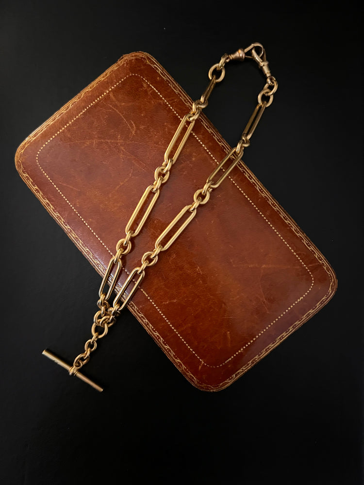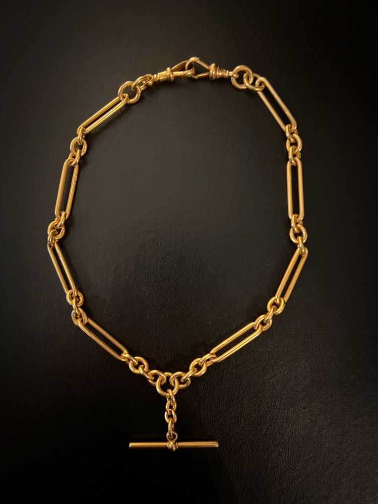 A stunning Victorian chunky 18ct gold paperclip/trombone Albert chain with T-bar.
