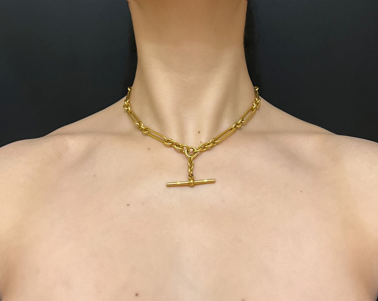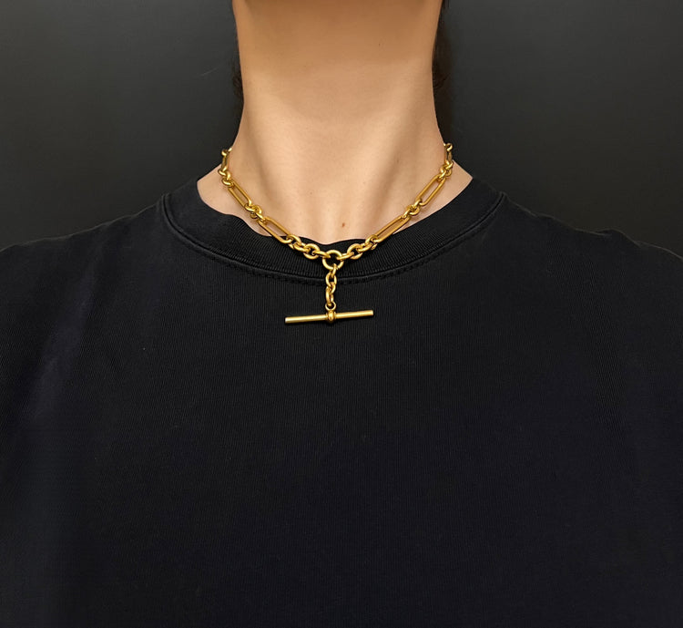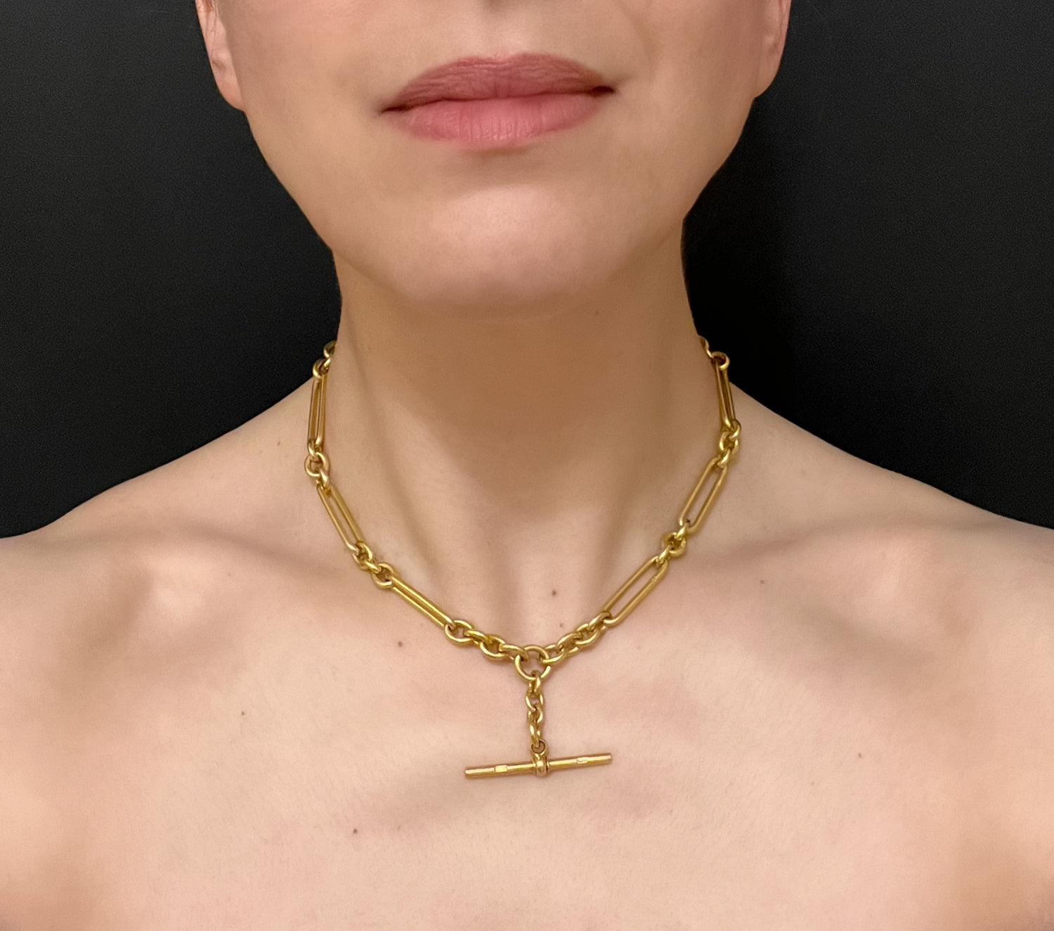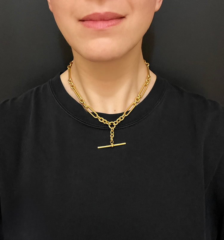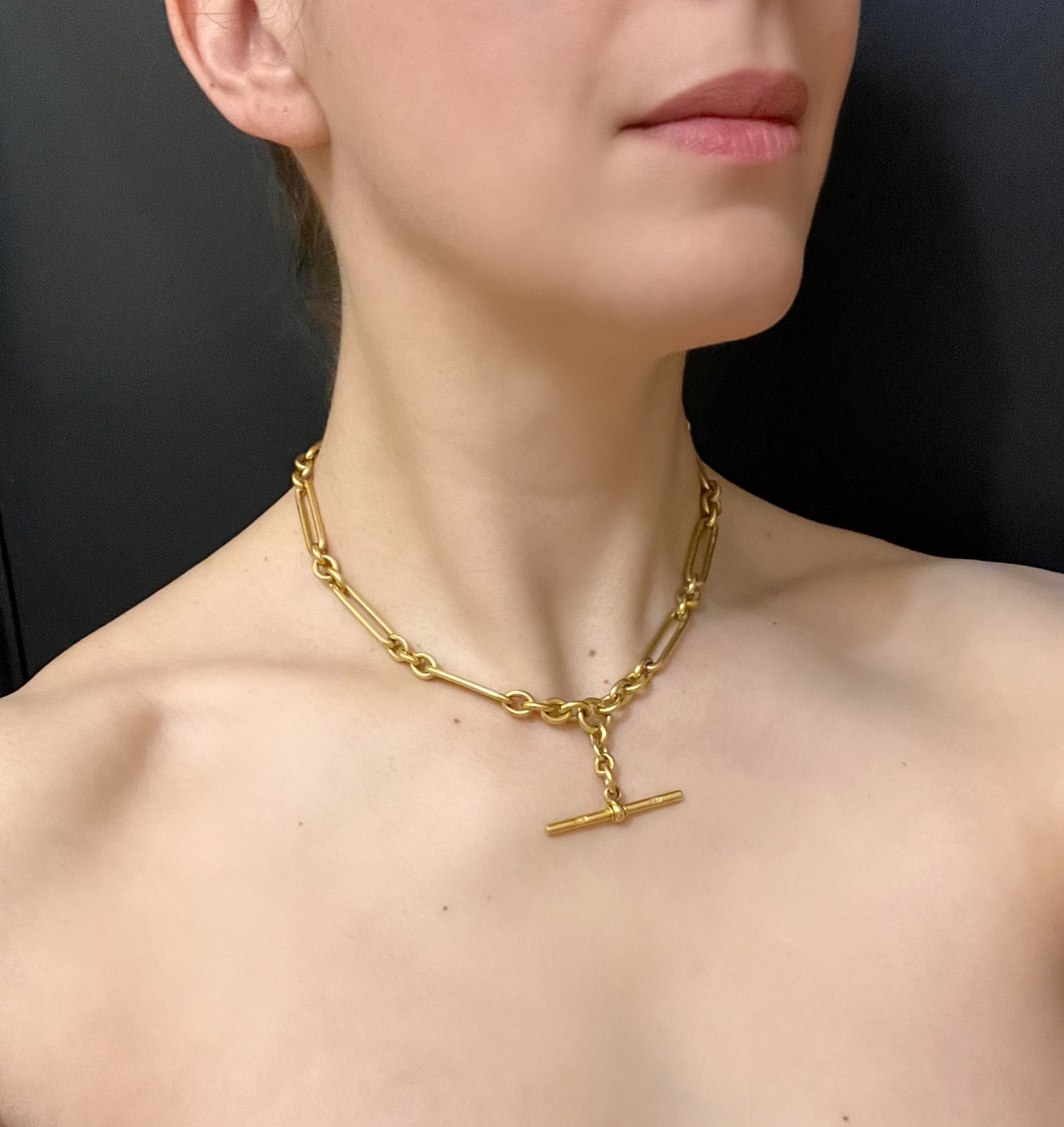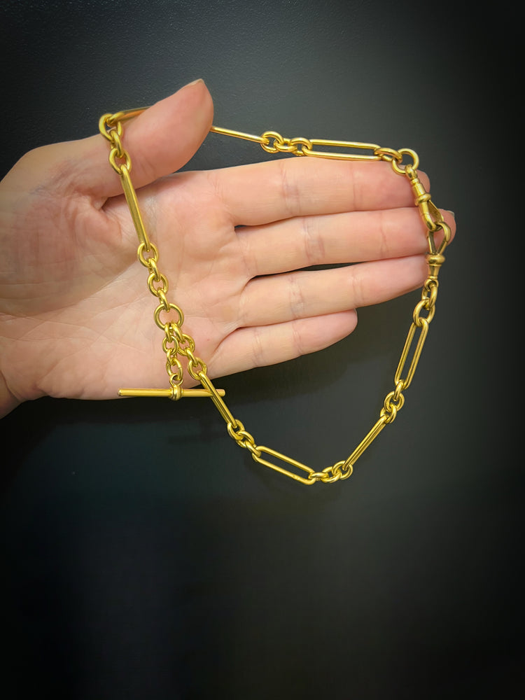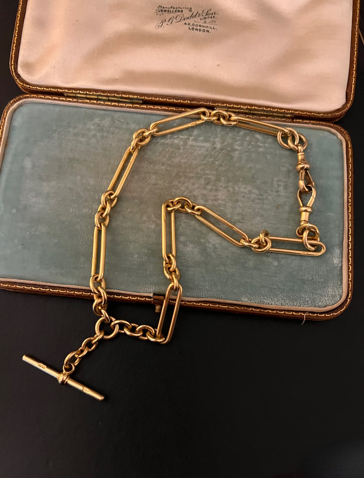 A stunning Victorian chunky 18ct gold paperclip/trombone Albert chain with T-bar.