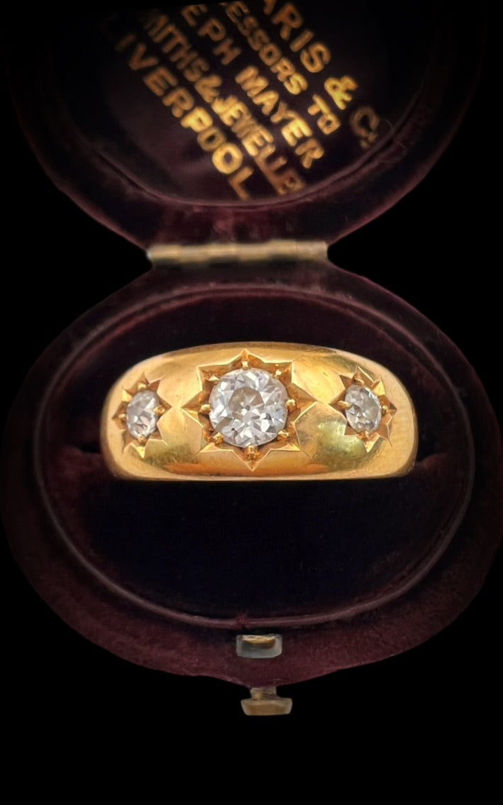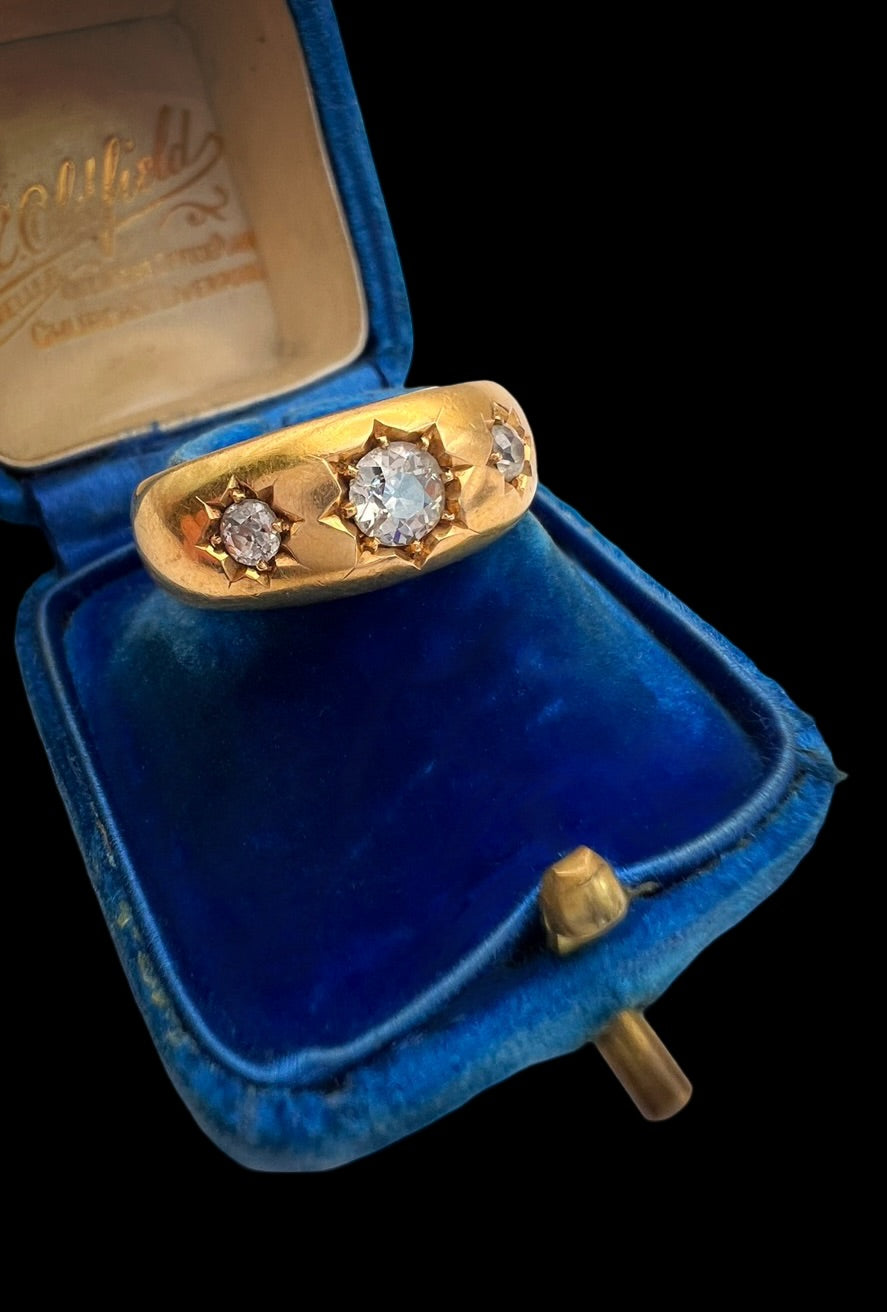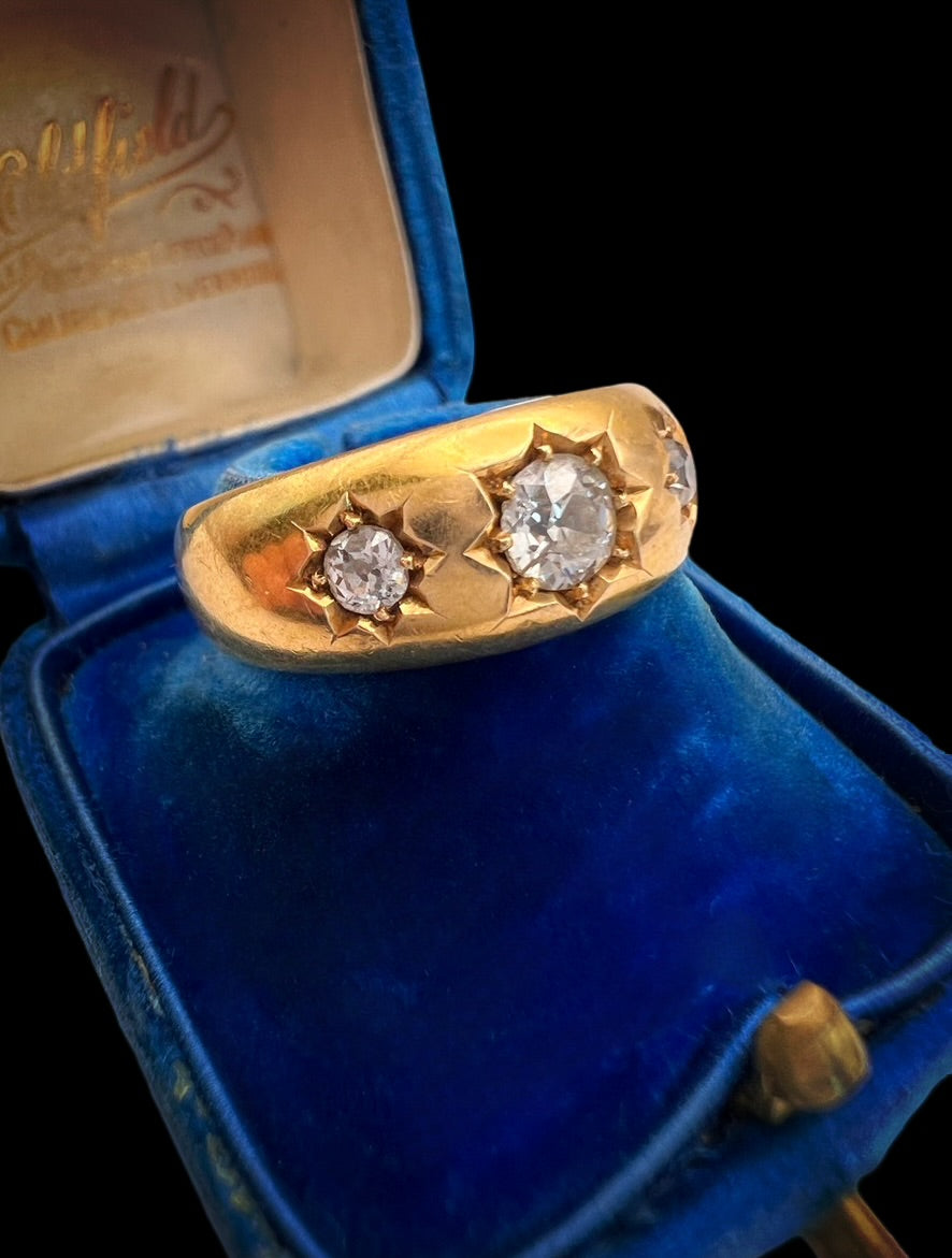 VICTORIAN CHUNKY 18CT GOLD THREE STONE DIAMOND GYPSY / STAR SET RING