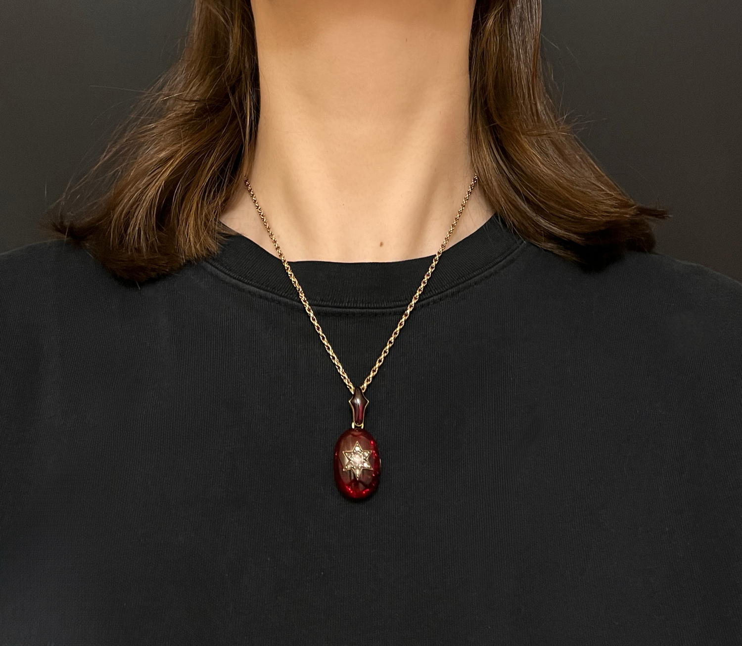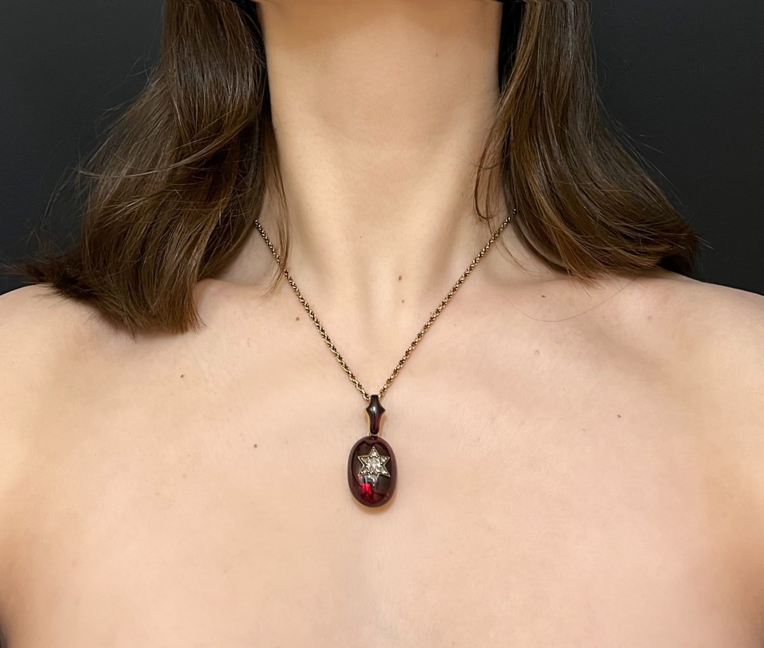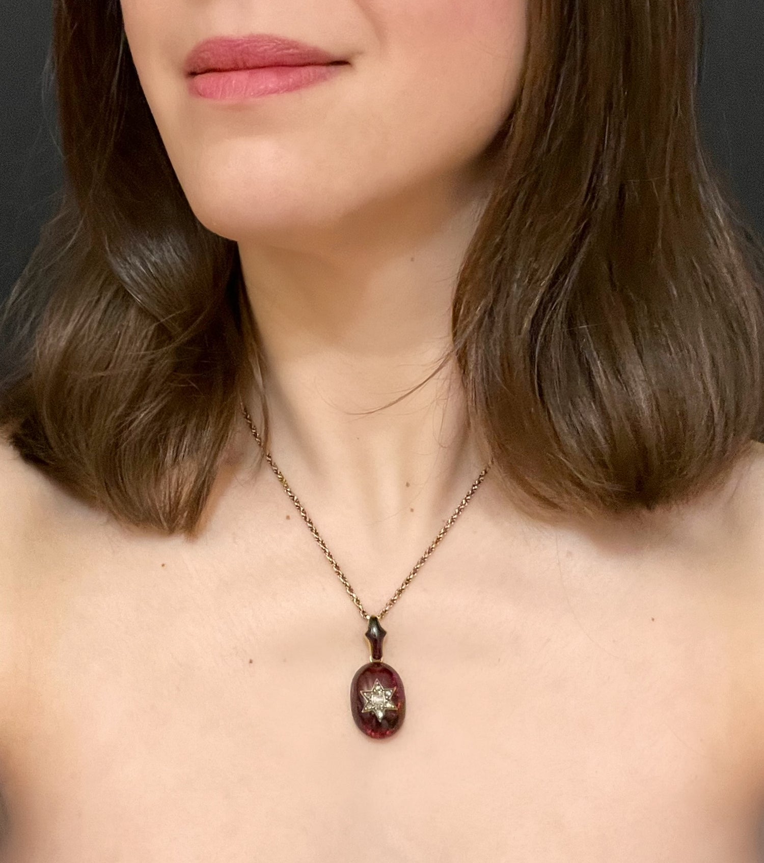 VICTORIAN CHUNKY GARNET & DIAMOND PENDANT