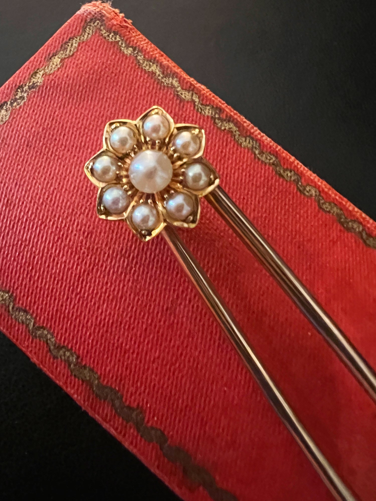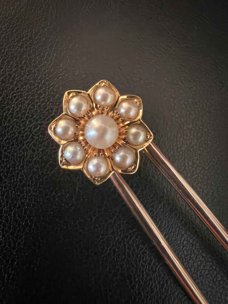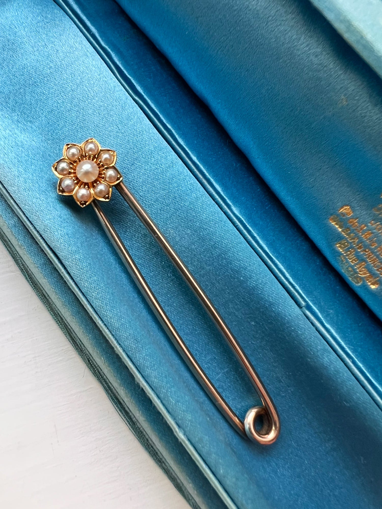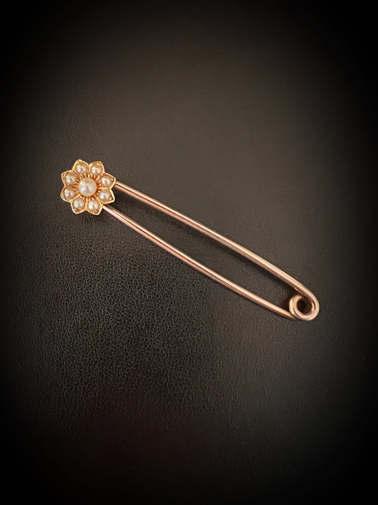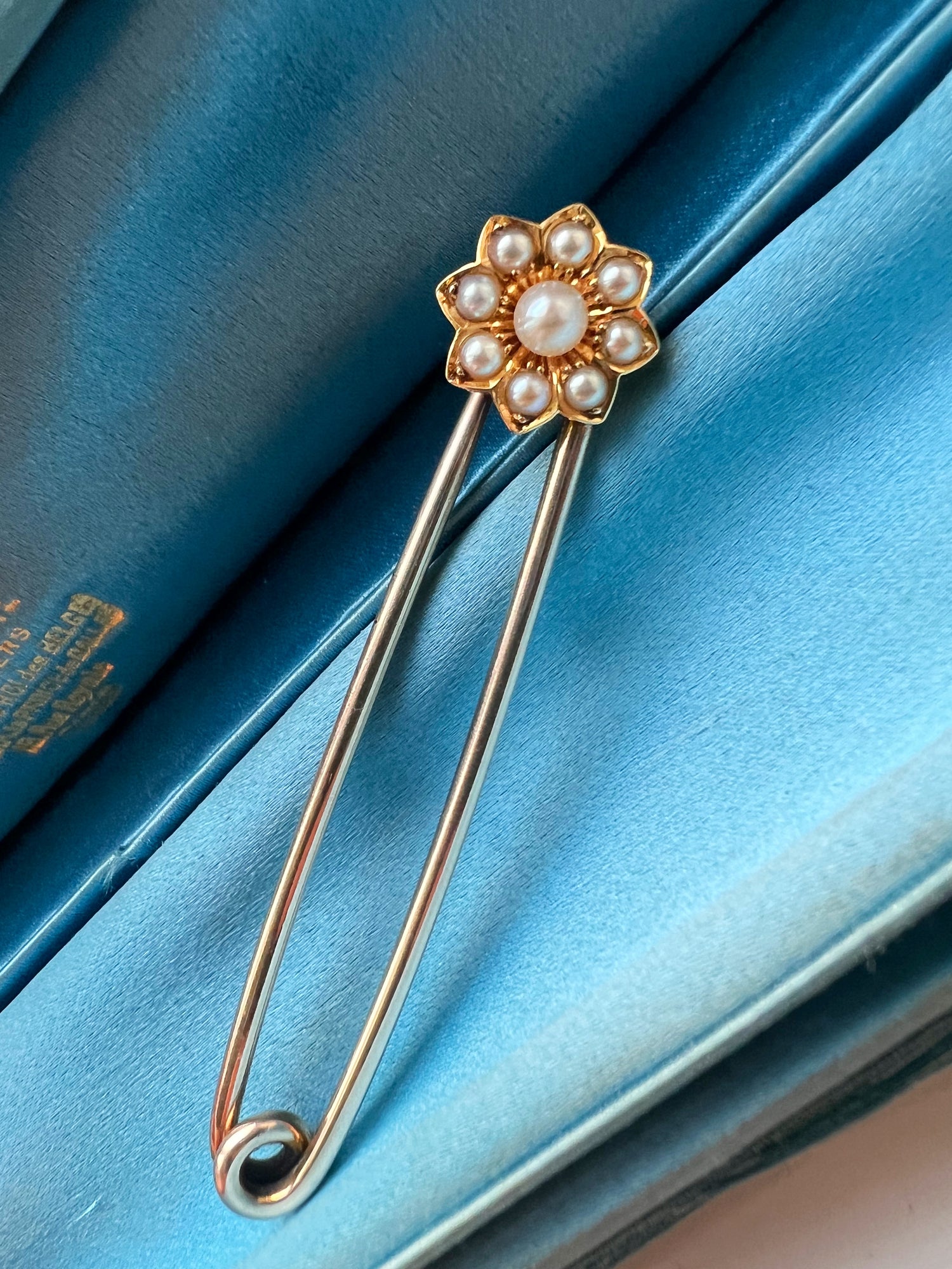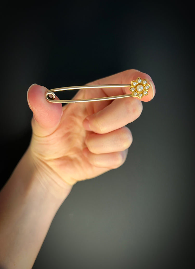 VICTORIAN CHUNKY PIN BROOCH WITH PEARL FLOWER