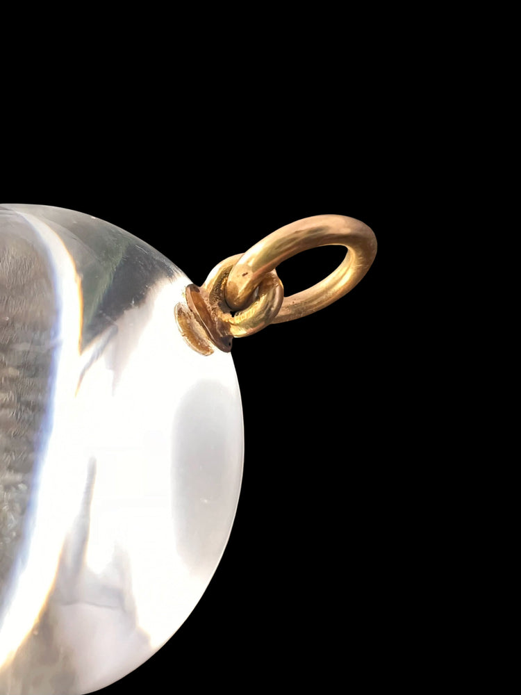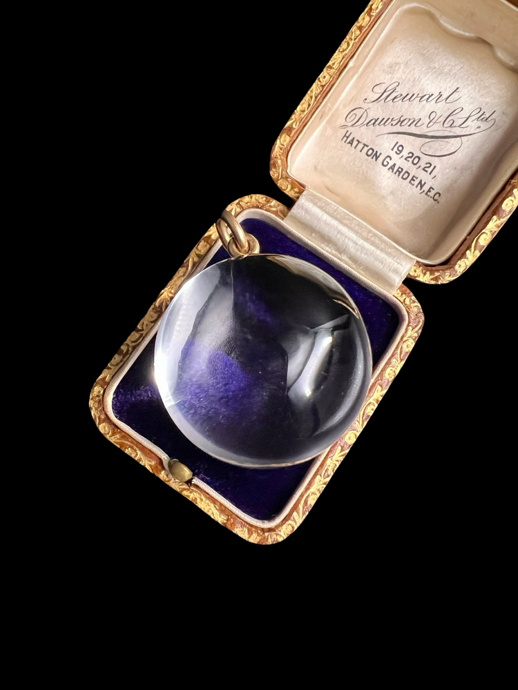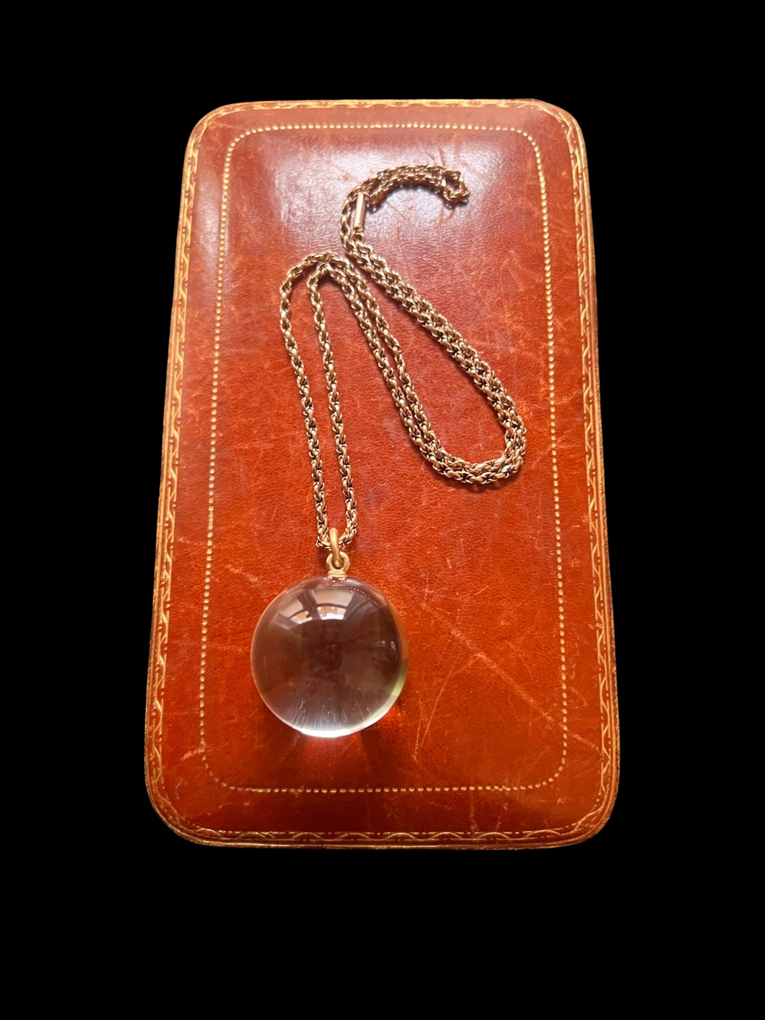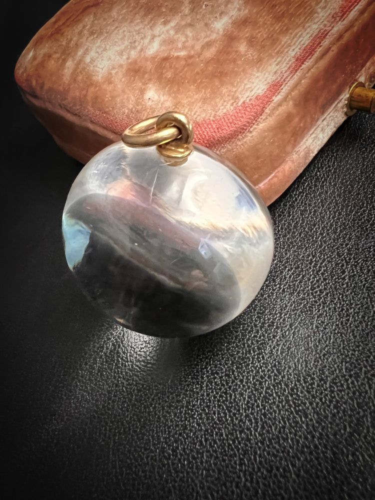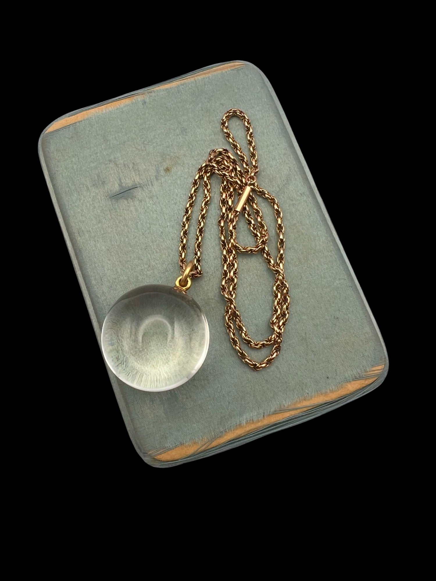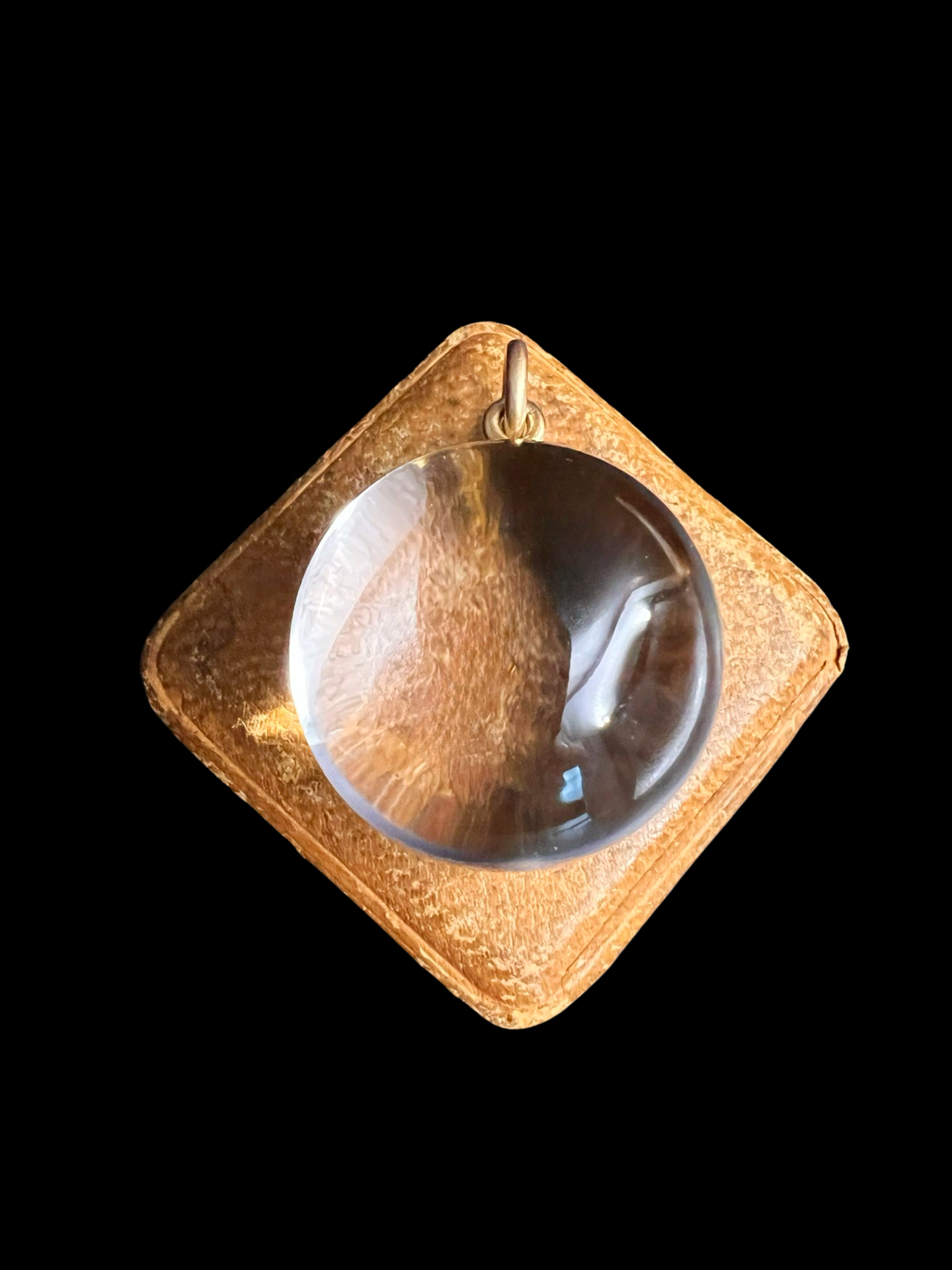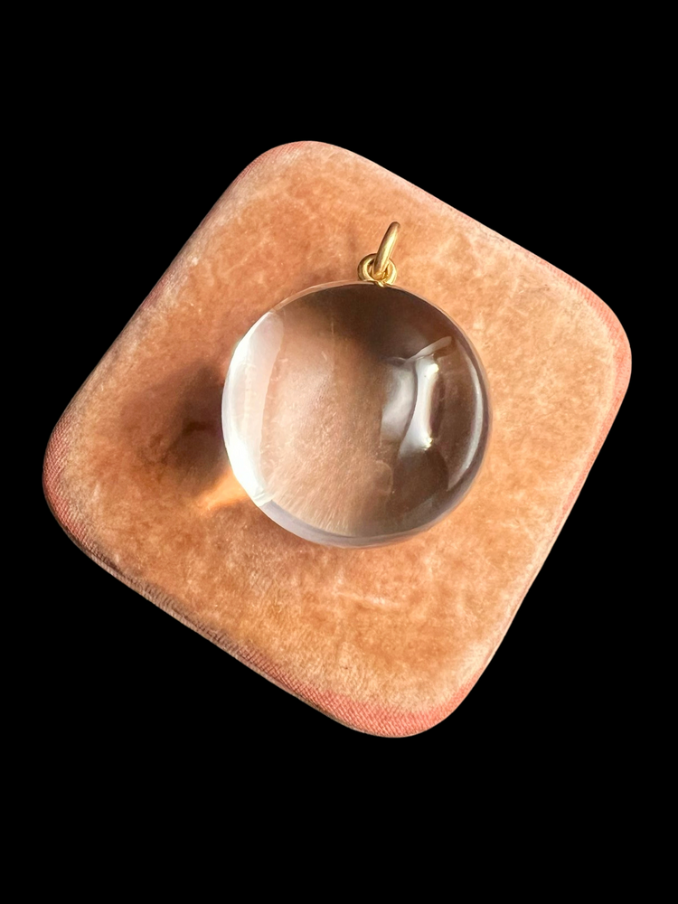 It’s a super chunky Victorian rock crystal pendant that has no setting! So the light catches the high domed piece of crystal beautifully!
