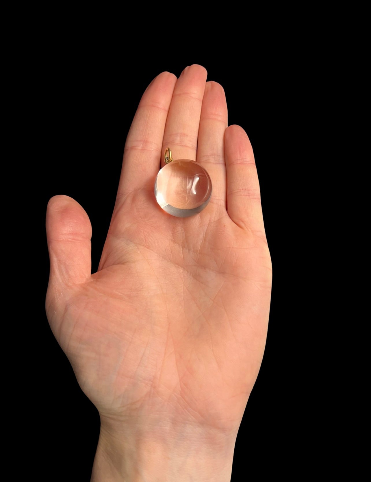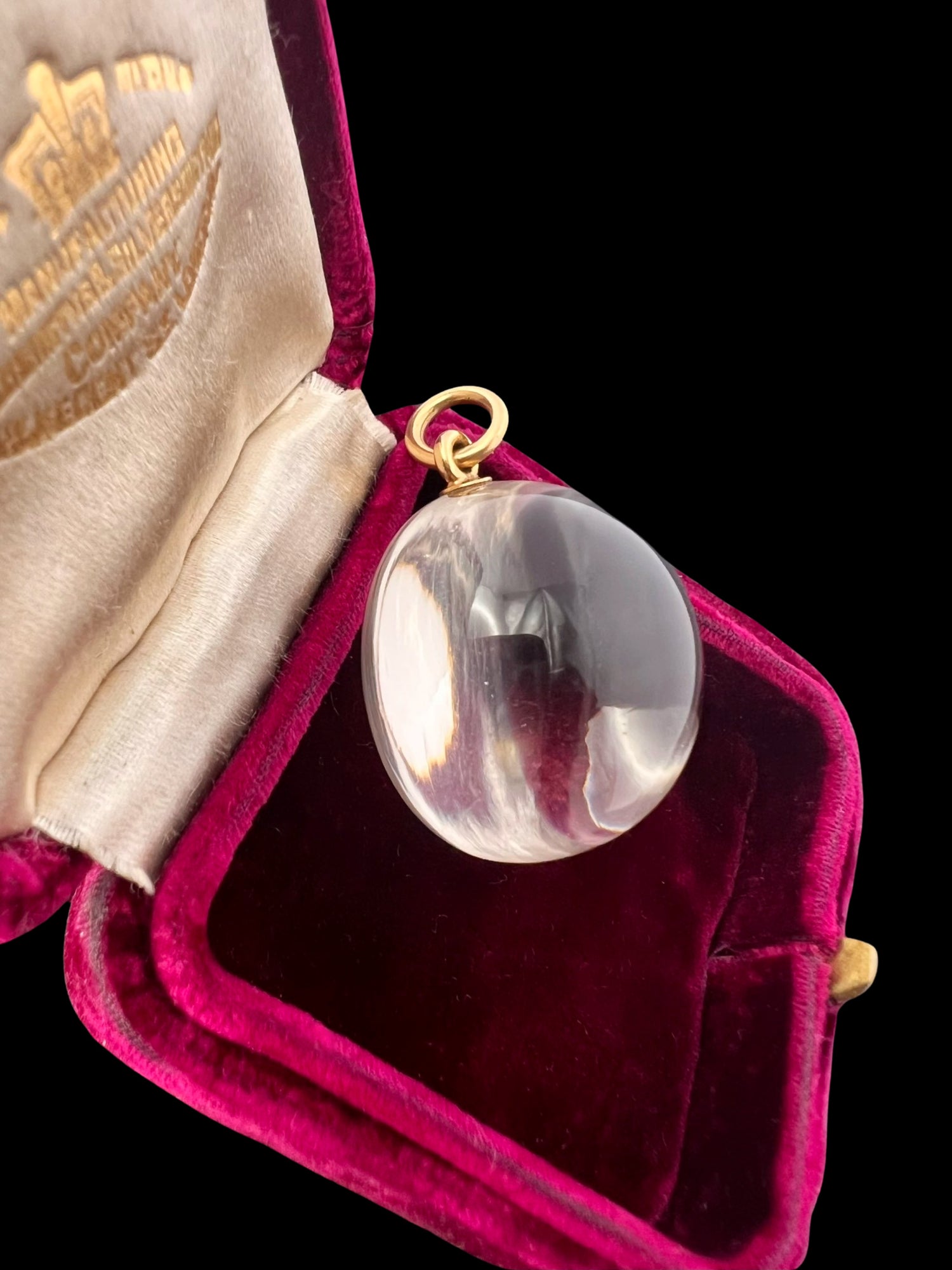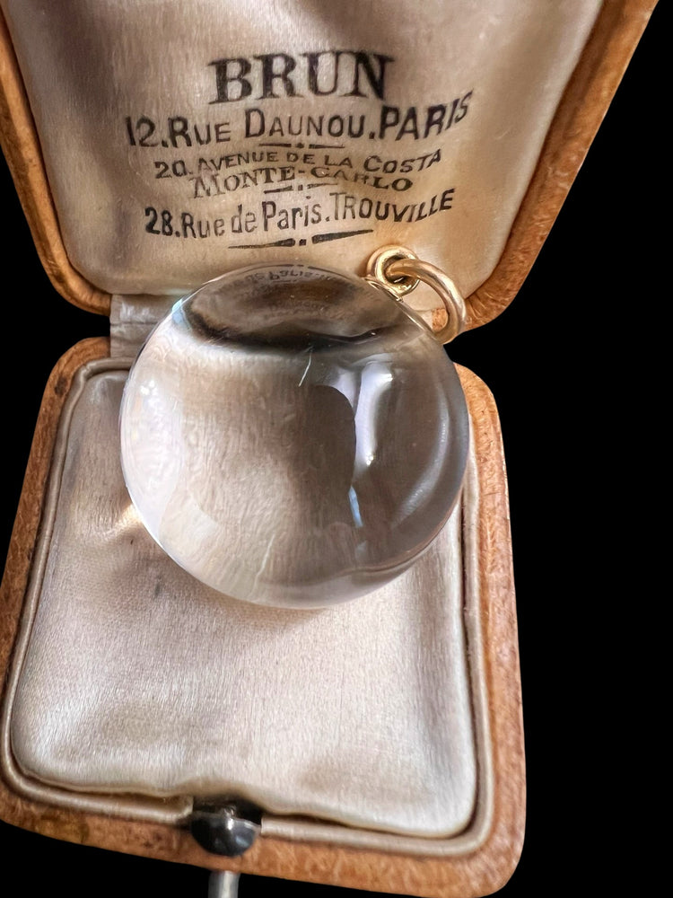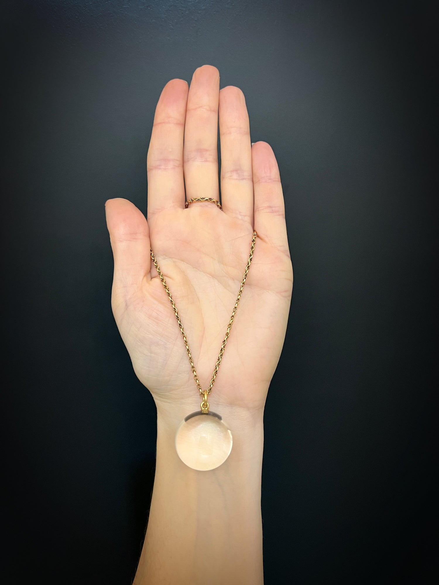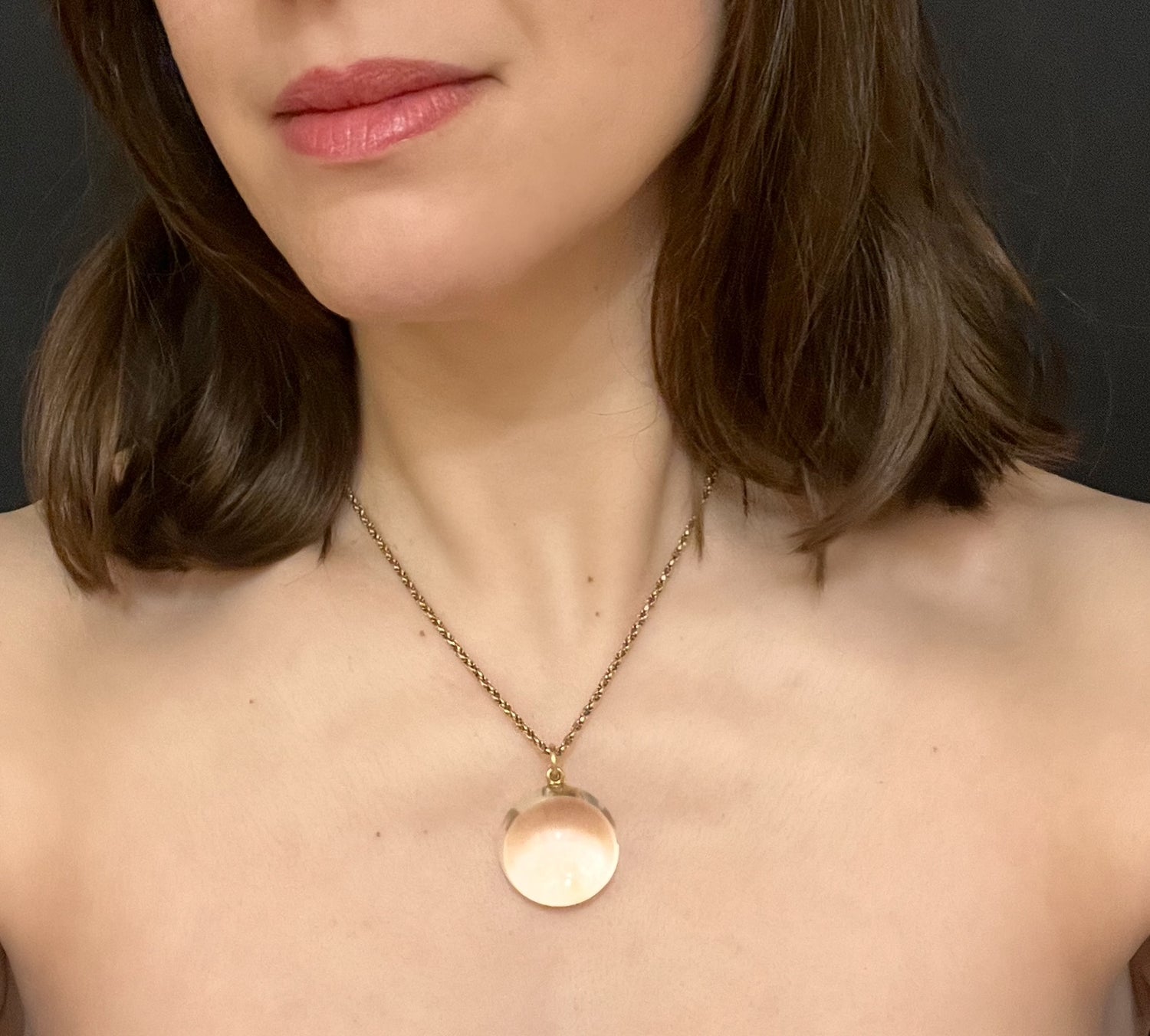 It’s a super chunky Victorian rock crystal pendant that has no setting! So the light catches the high domed piece of crystal beautifully!