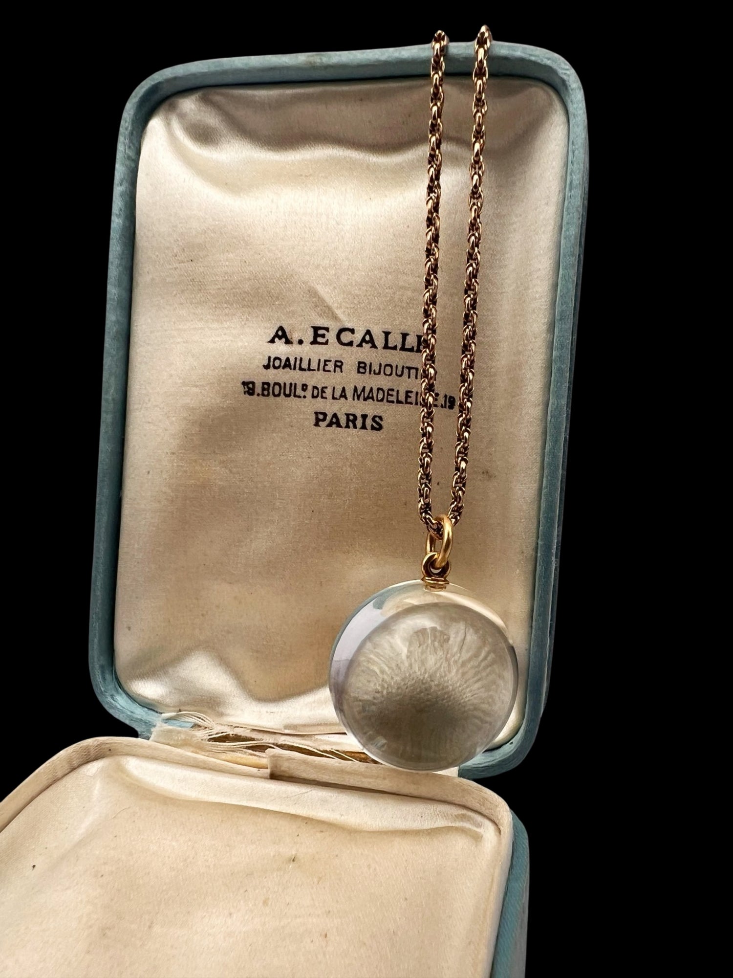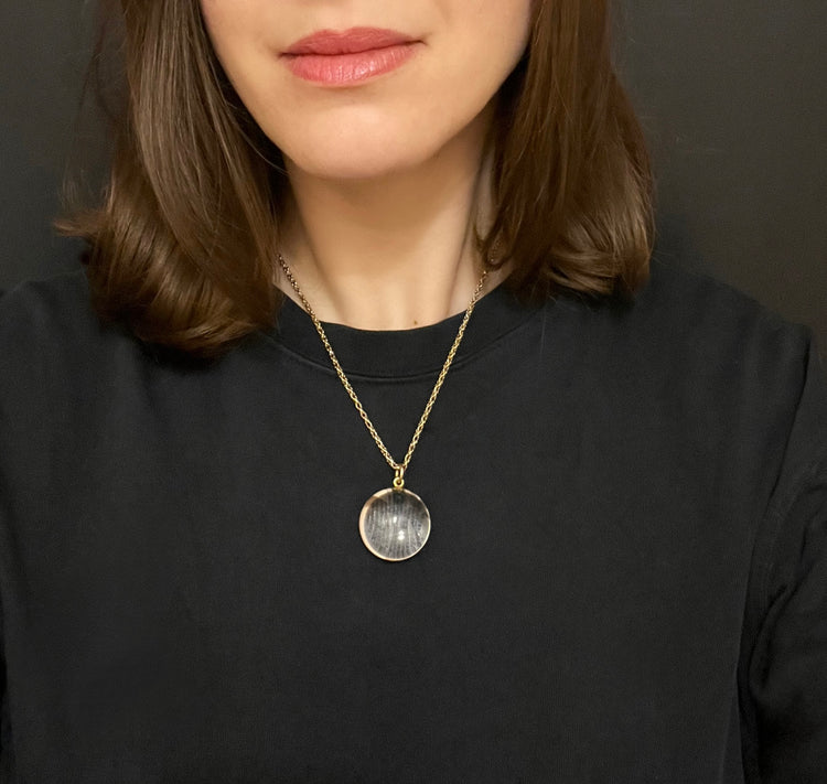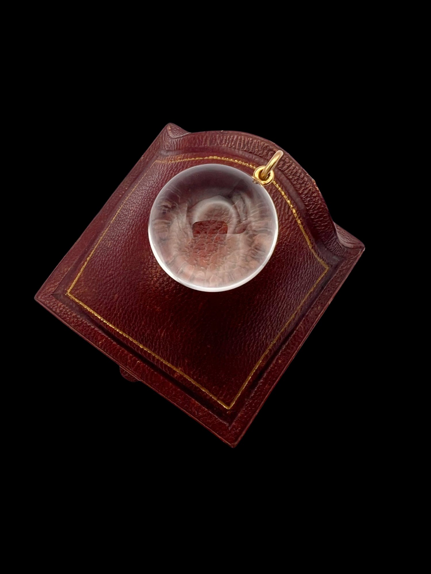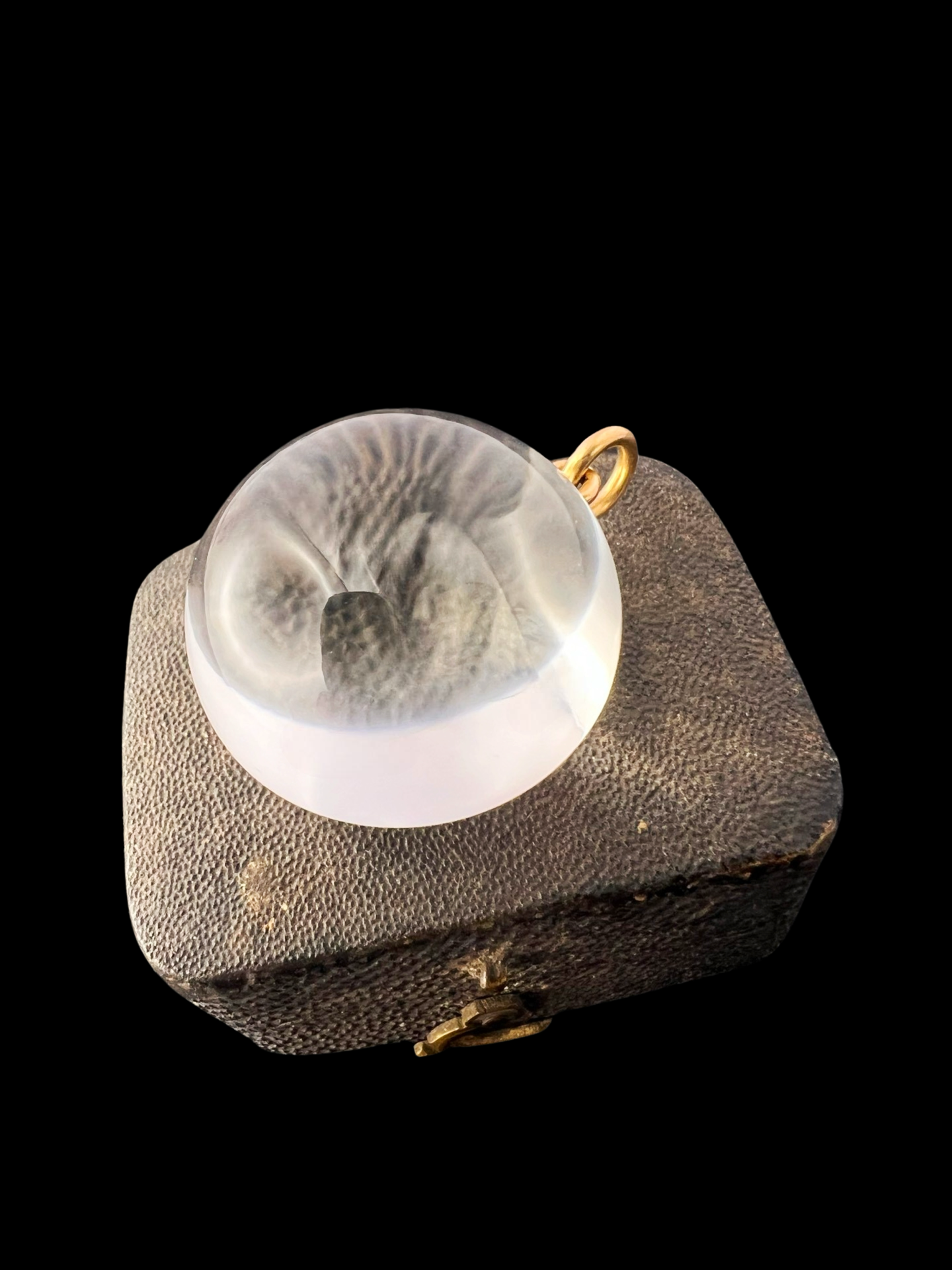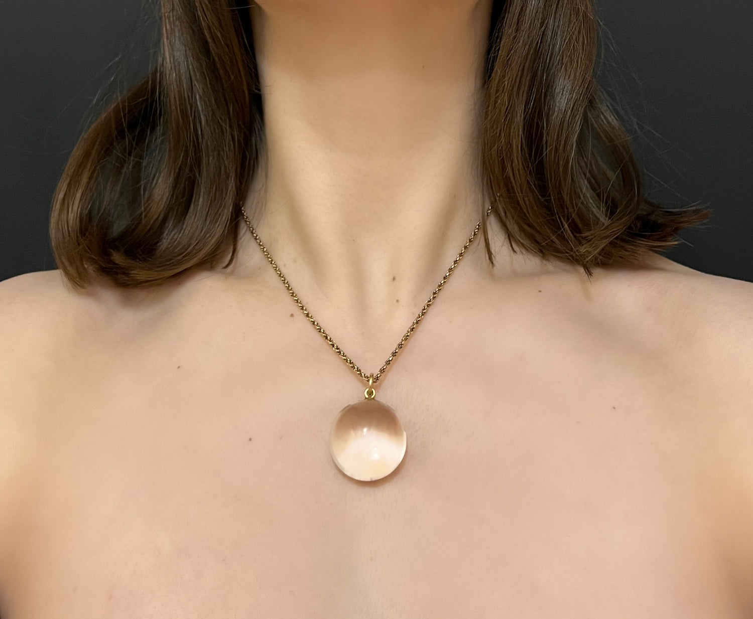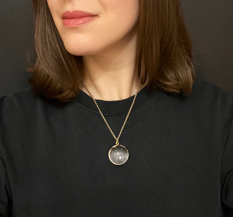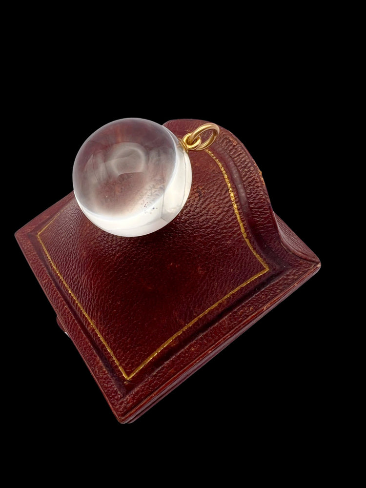 It’s a super chunky Victorian rock crystal pendant that has no setting! So the light catches the high domed piece of crystal beautifully!