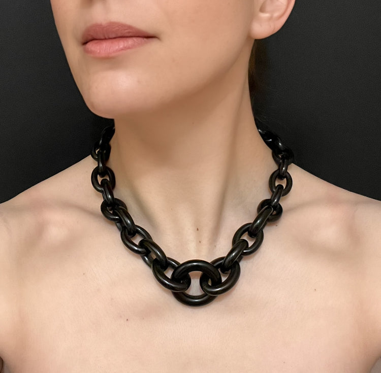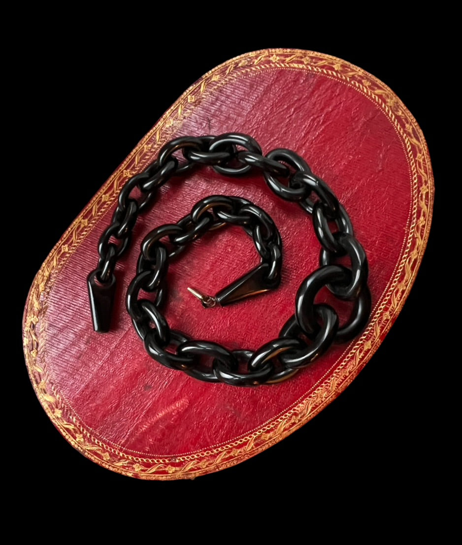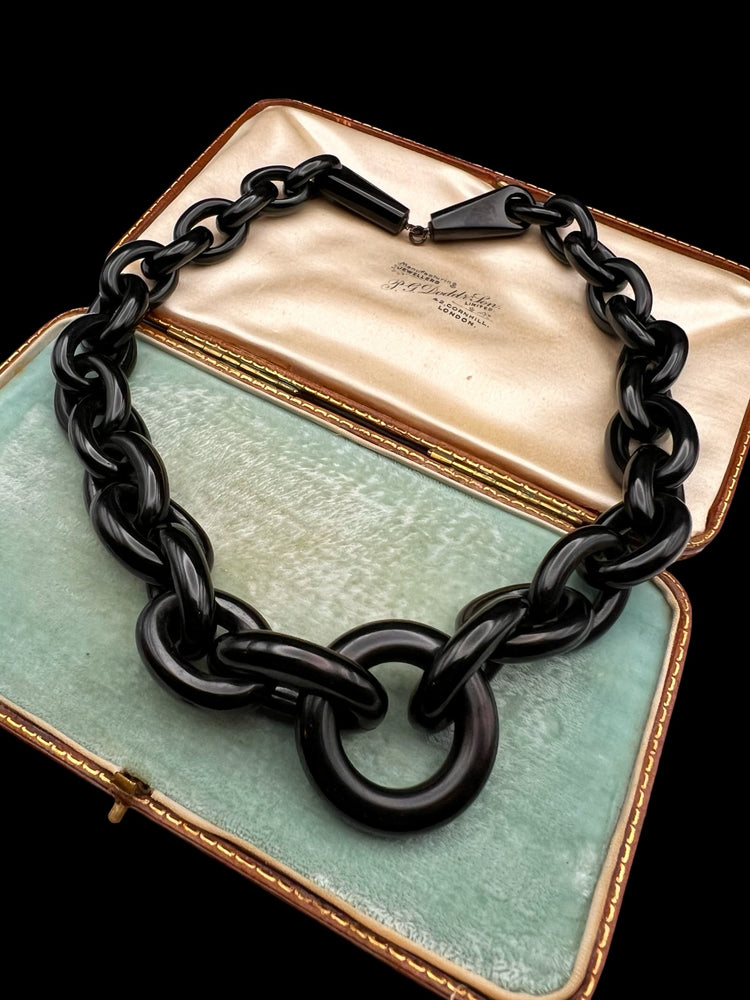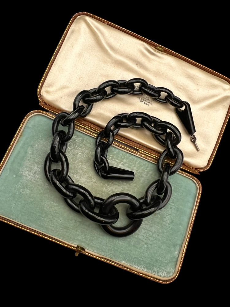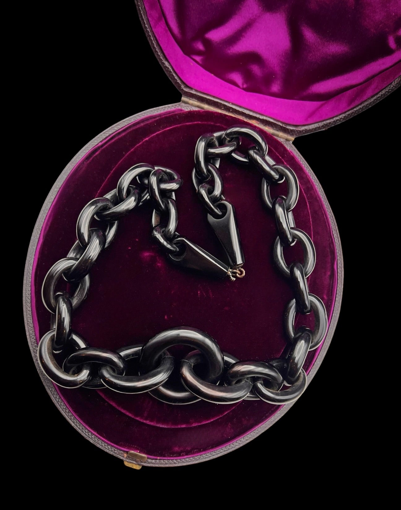 VICTORIAN CHUNKY WHITBY JET CHAIN NECKLACE