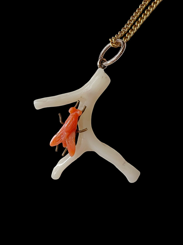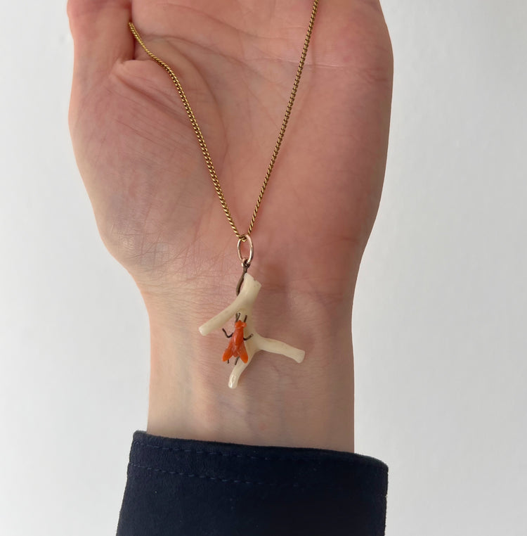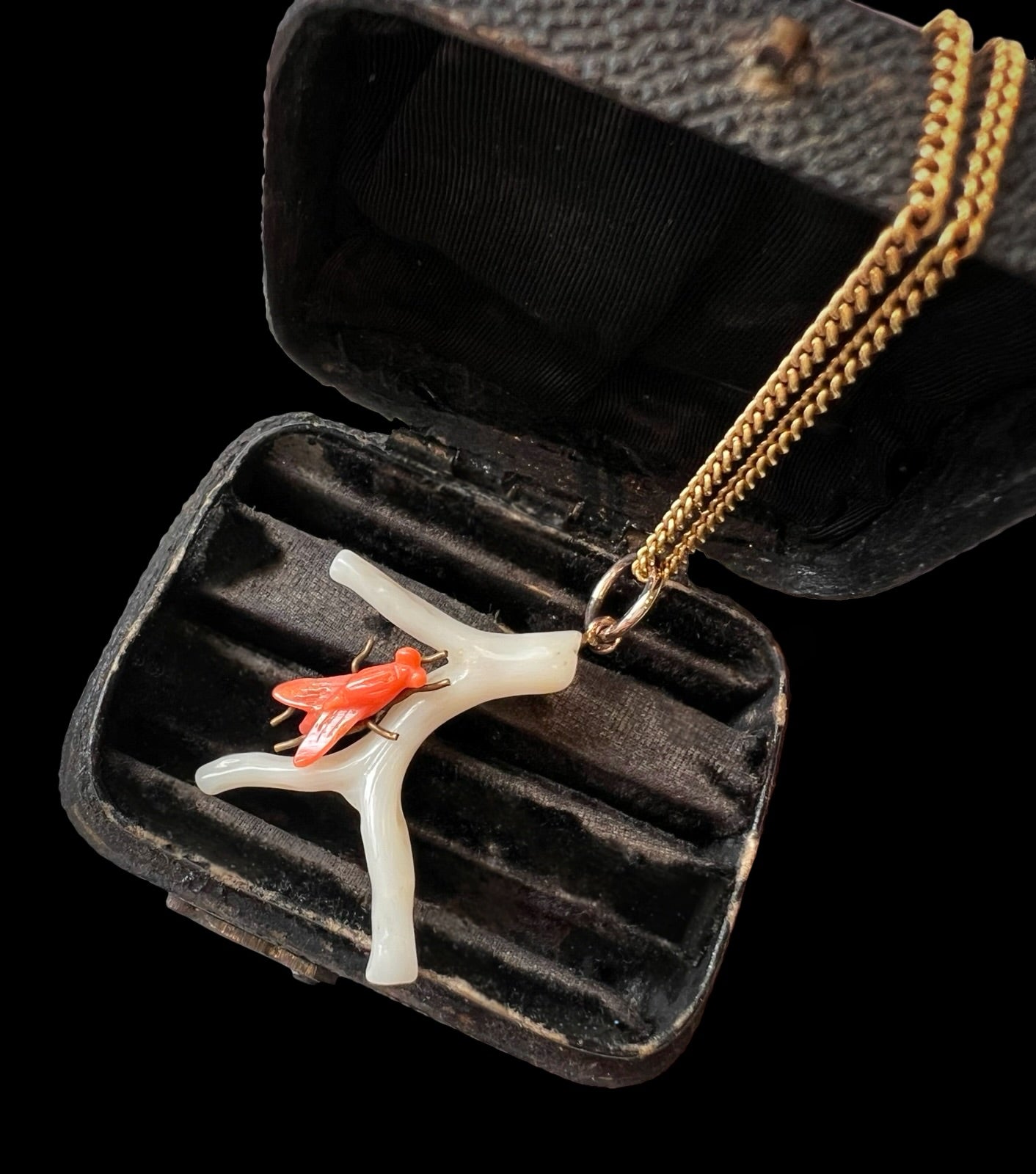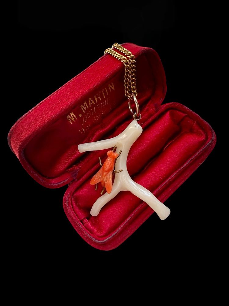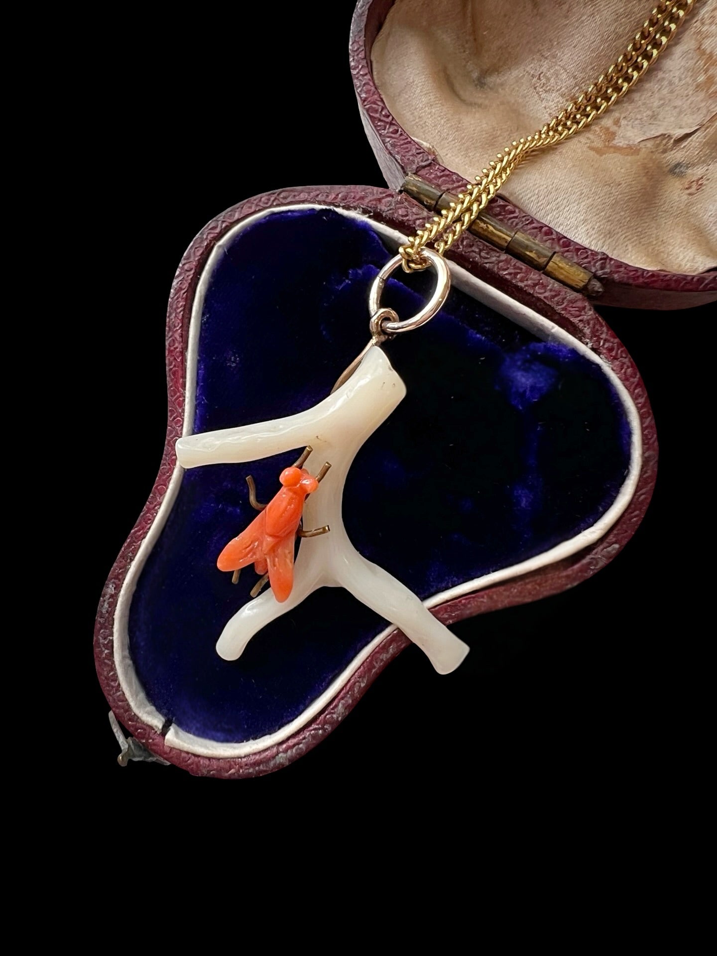 VICTORIAN CORAL FLY & BRANCH PENDANT