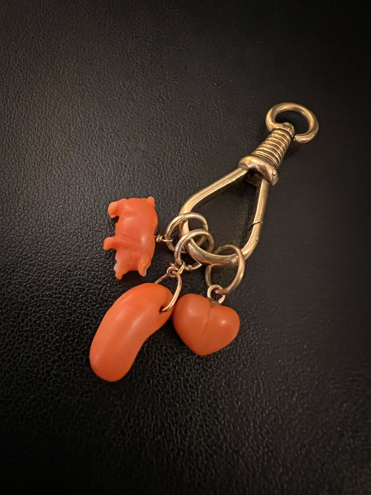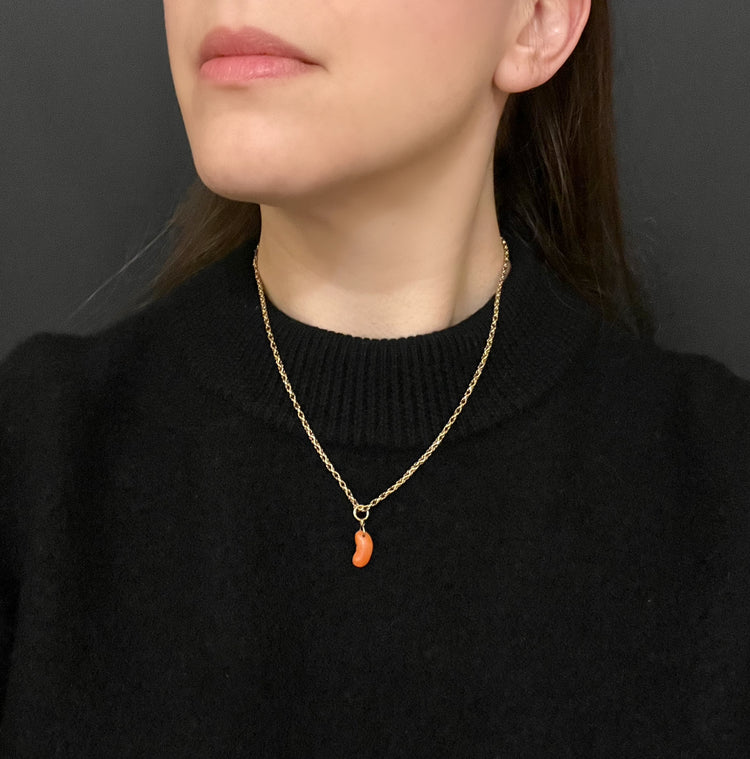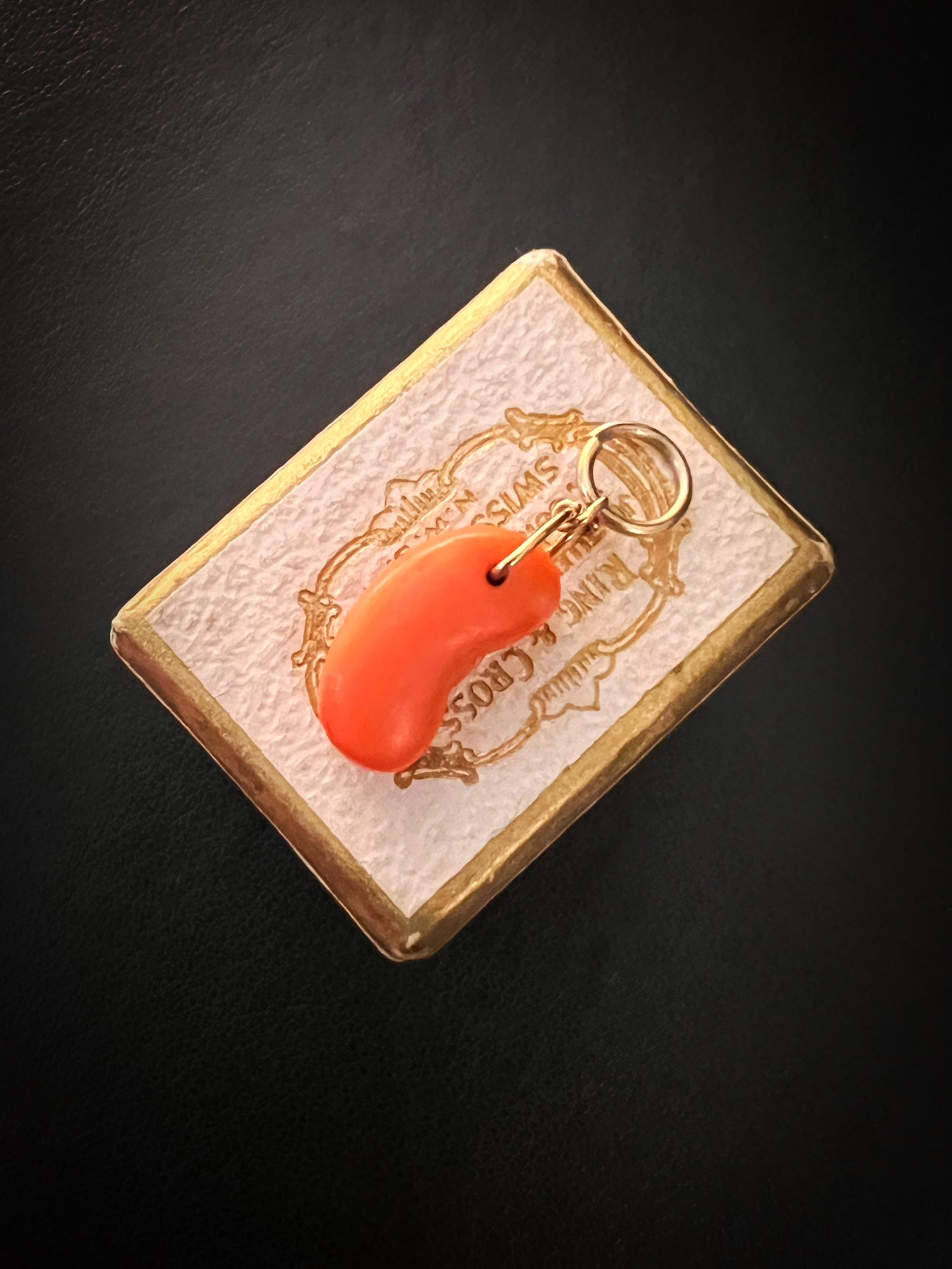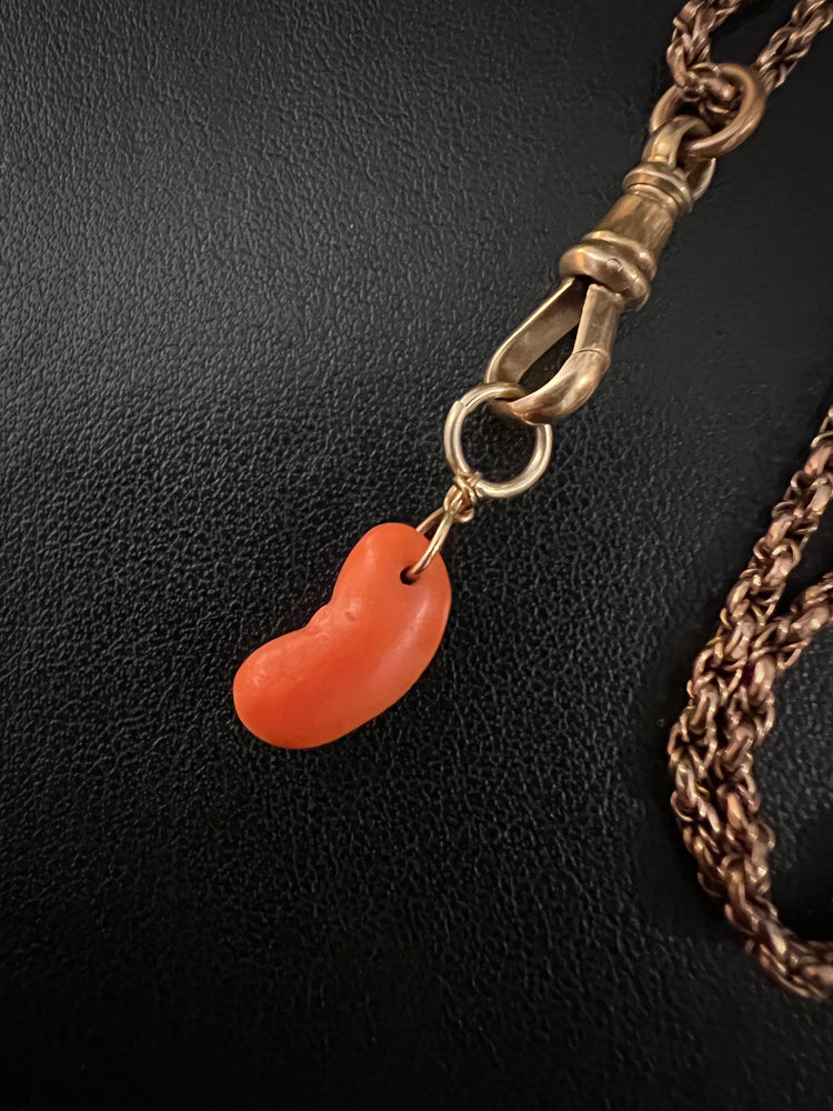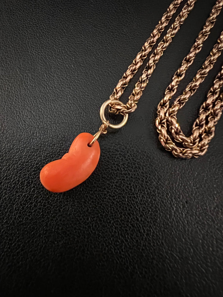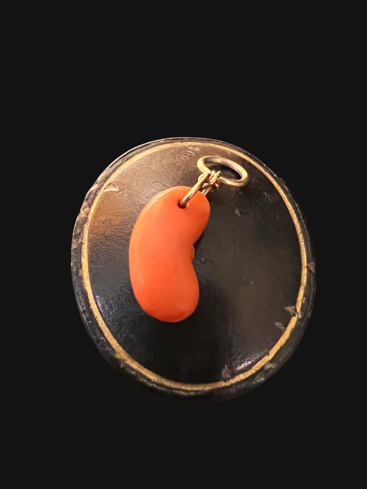 VICTORIAN CORAL LUCKY BEAN PENDANT
