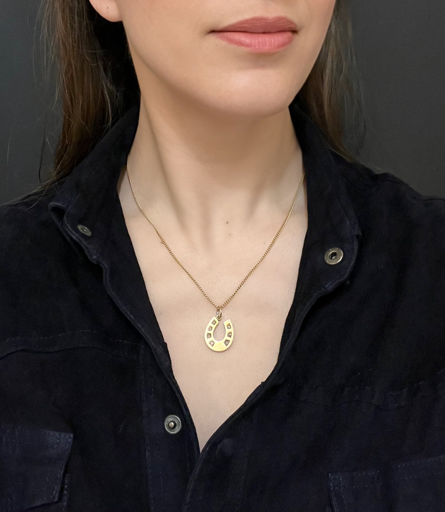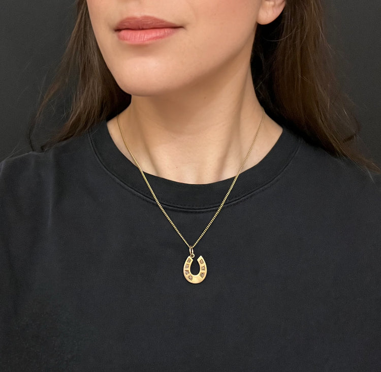 A lovely chunky Victorian 15ct gold horseshoe pendant, set with rose cut diamonds.