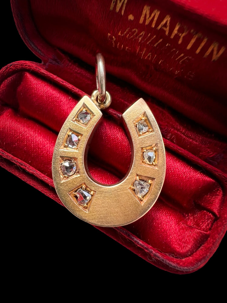 VICTORIAN DIAMOND & 15CT GOLD HORSESHOE PENDANT