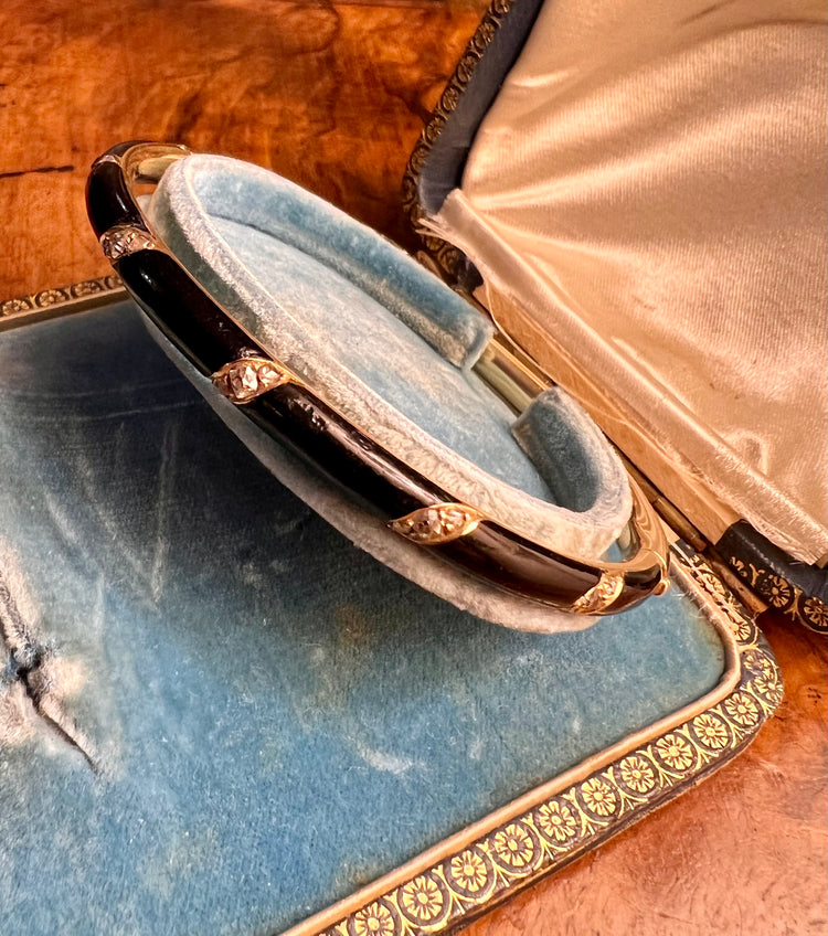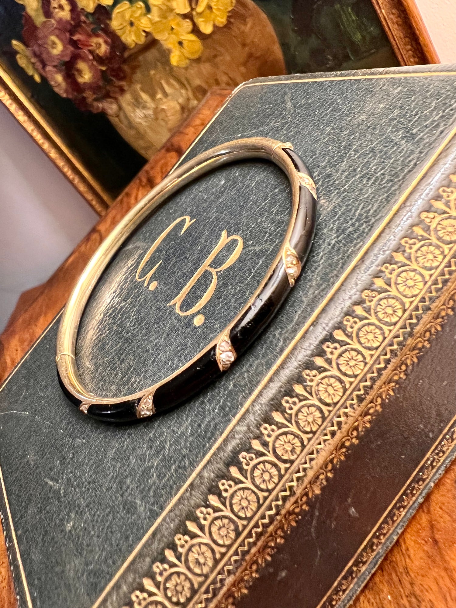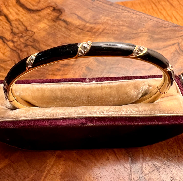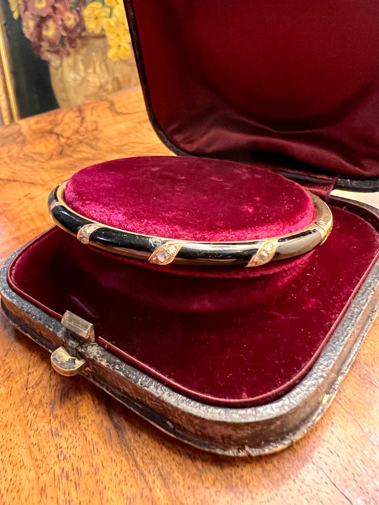 VICTORIAN DIAMOND & BLACK ENAMEL BANGLE