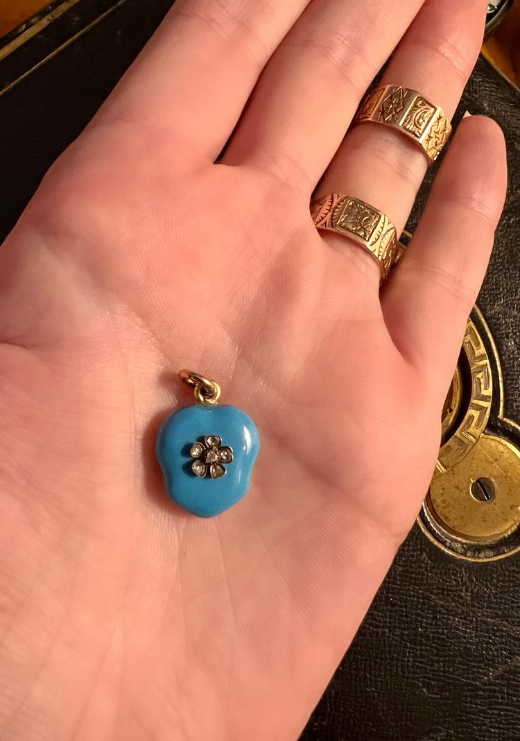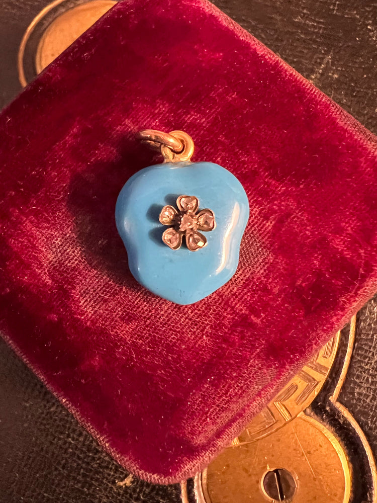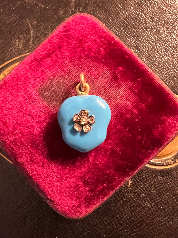 This is an adorable Victorian Forget-me-not turquoise enamel pendant.
