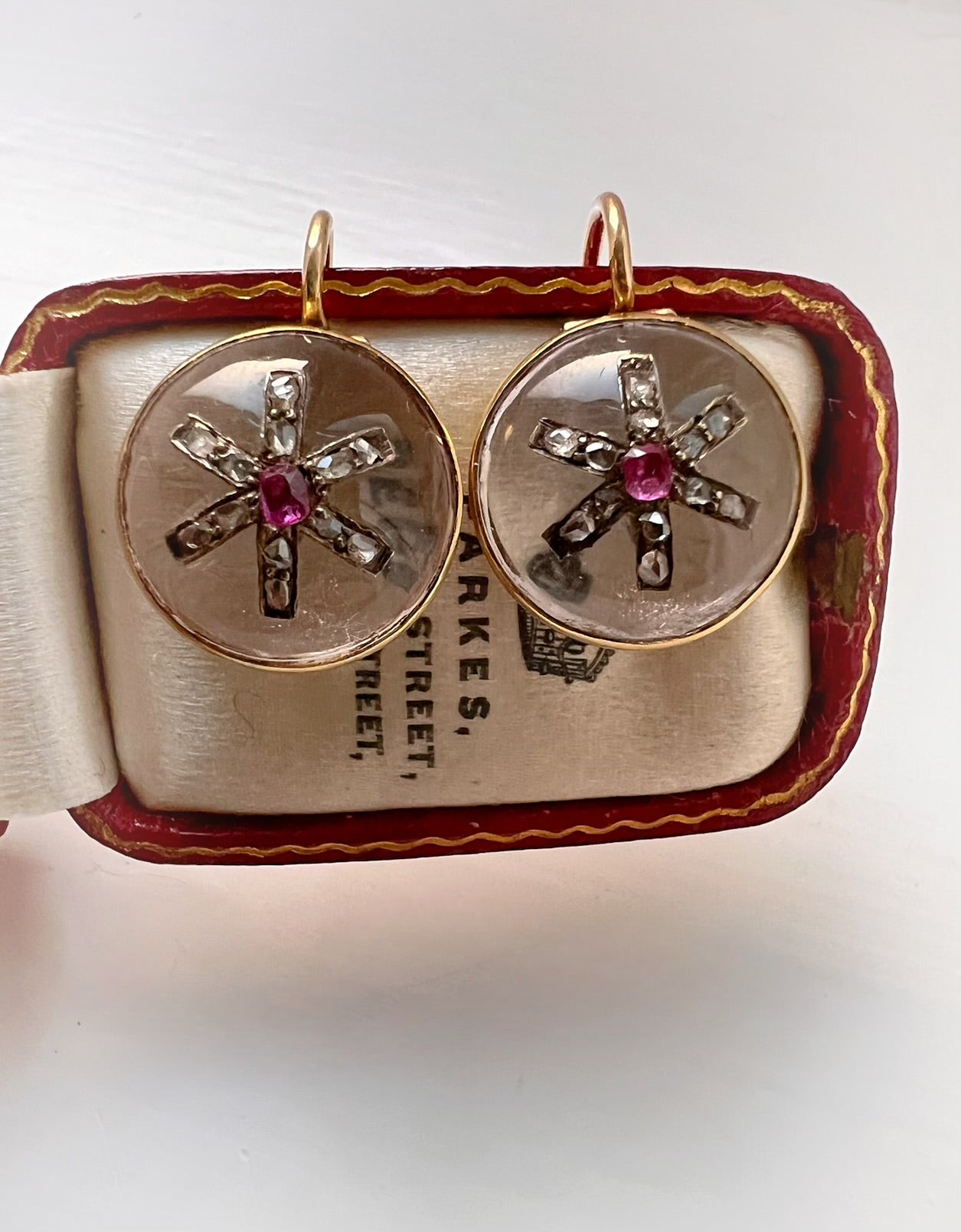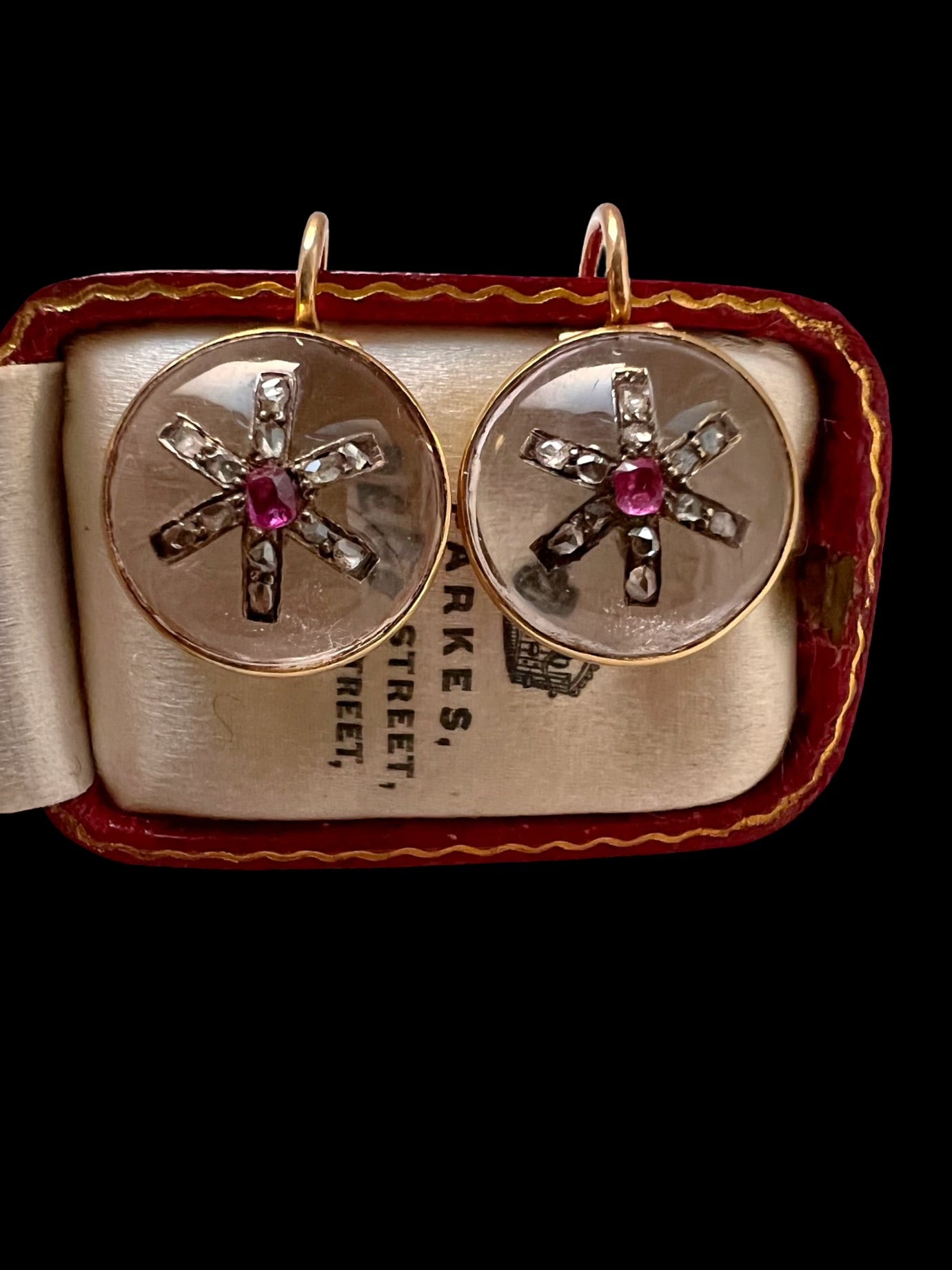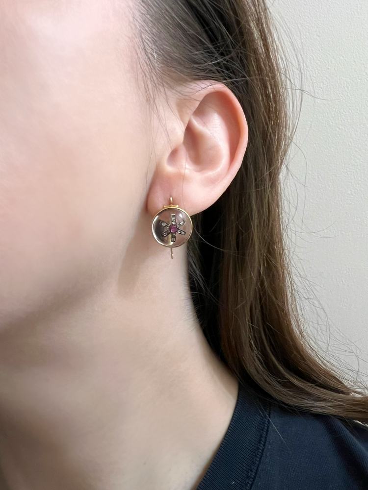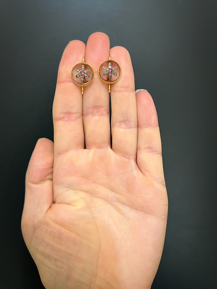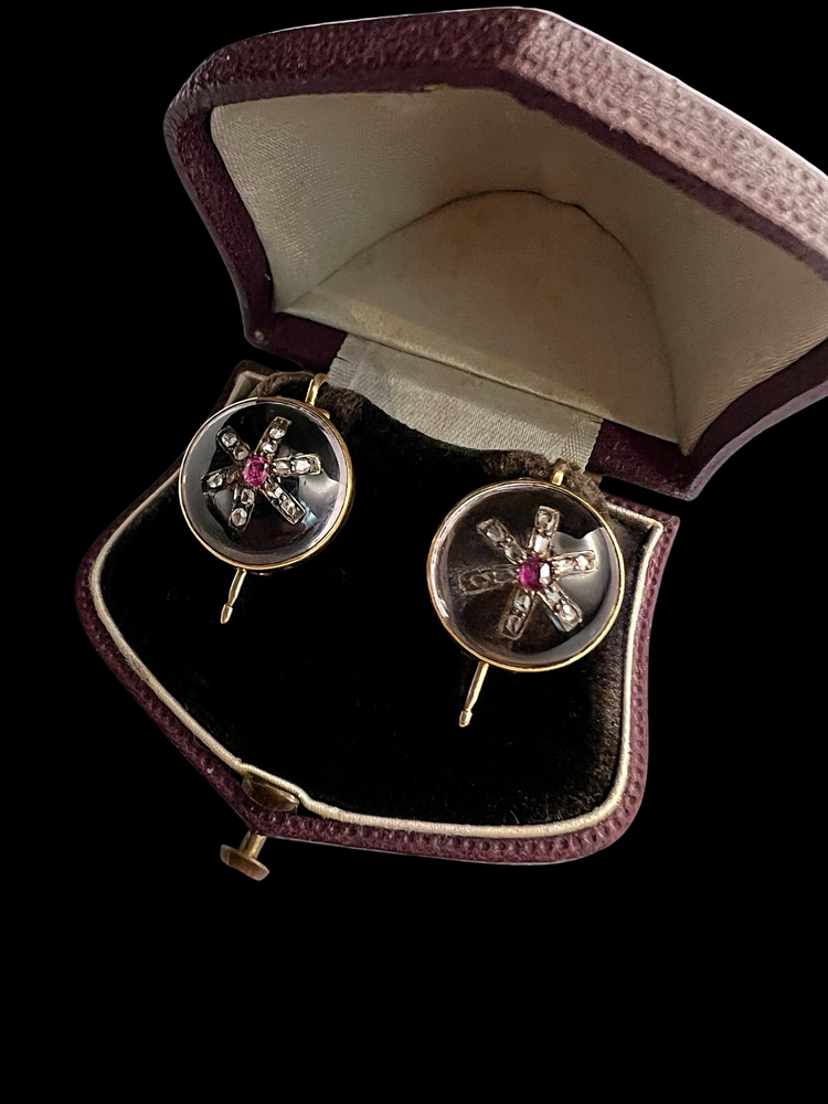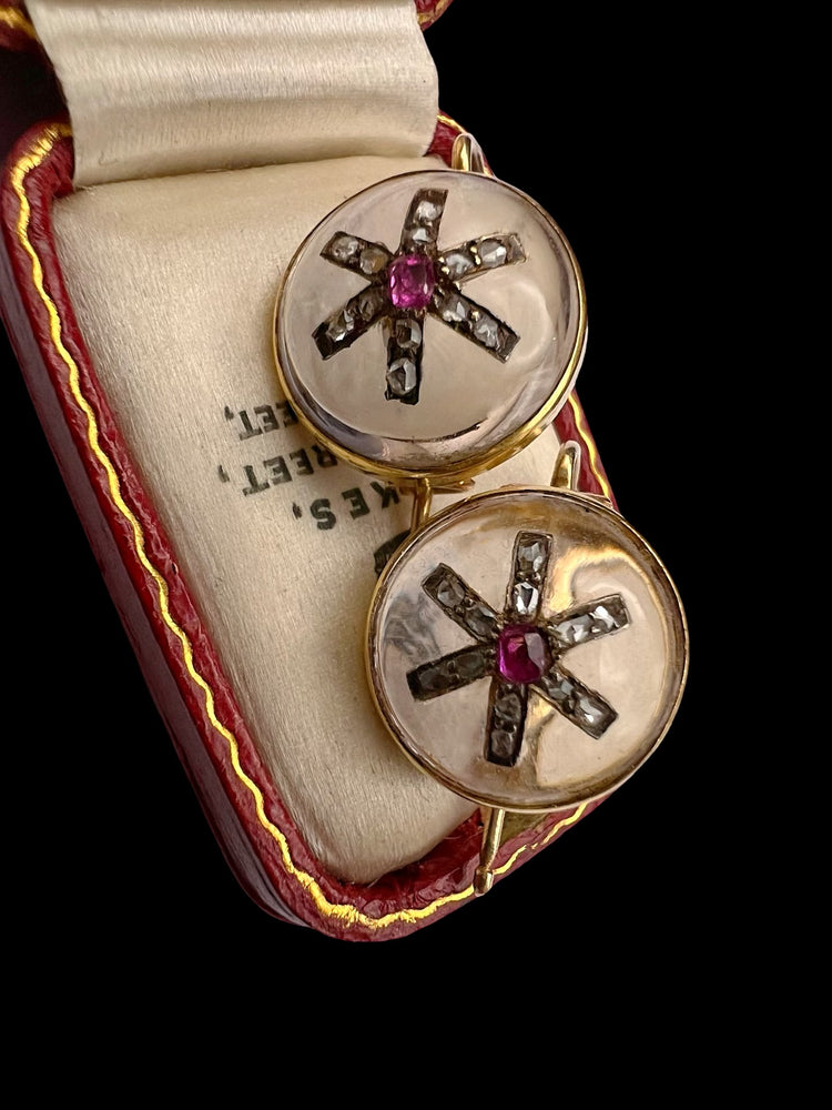 VICTORIAN DIAMOND & RUBY STAR ROCK CRYSTAL EARRINGS
