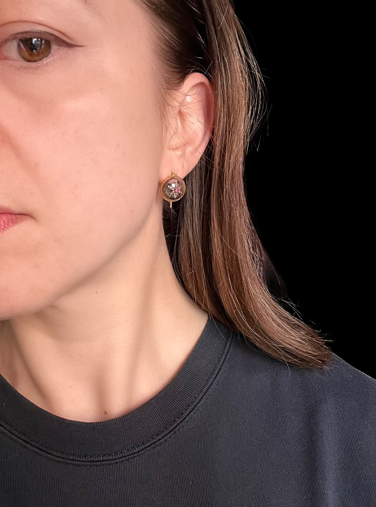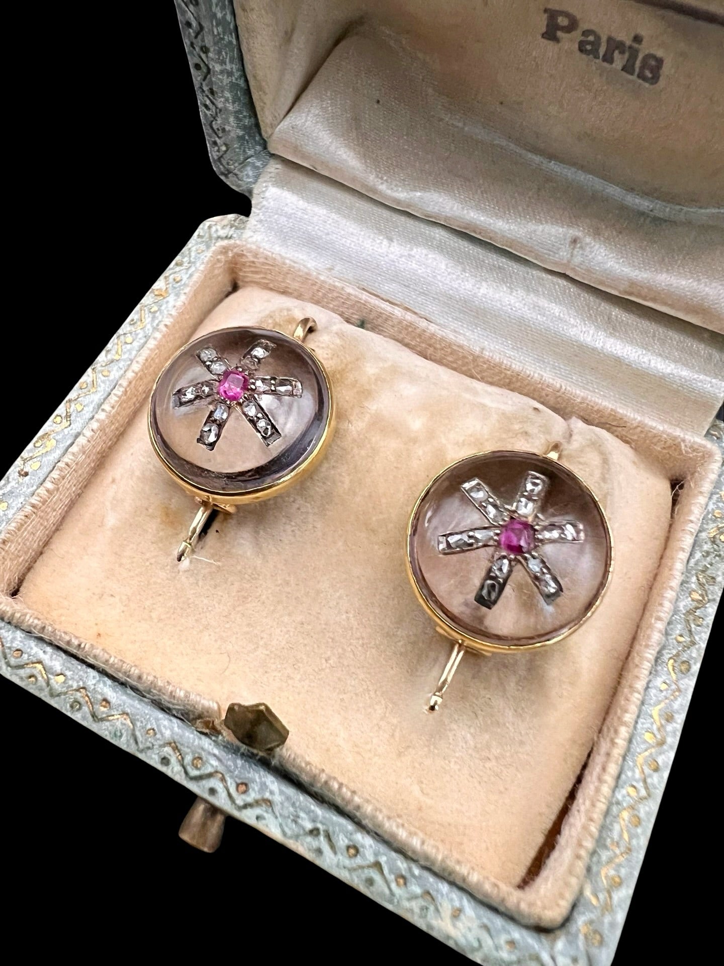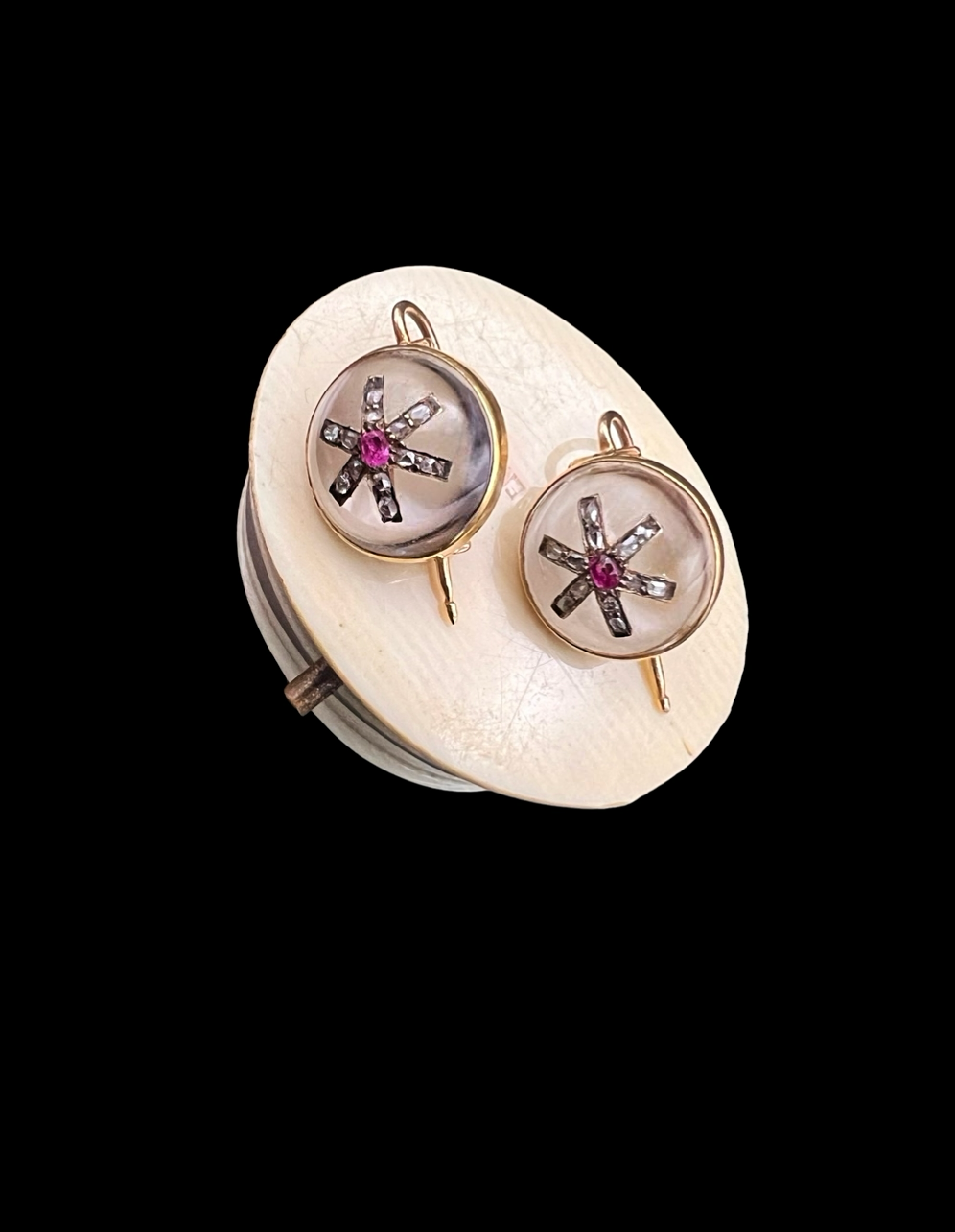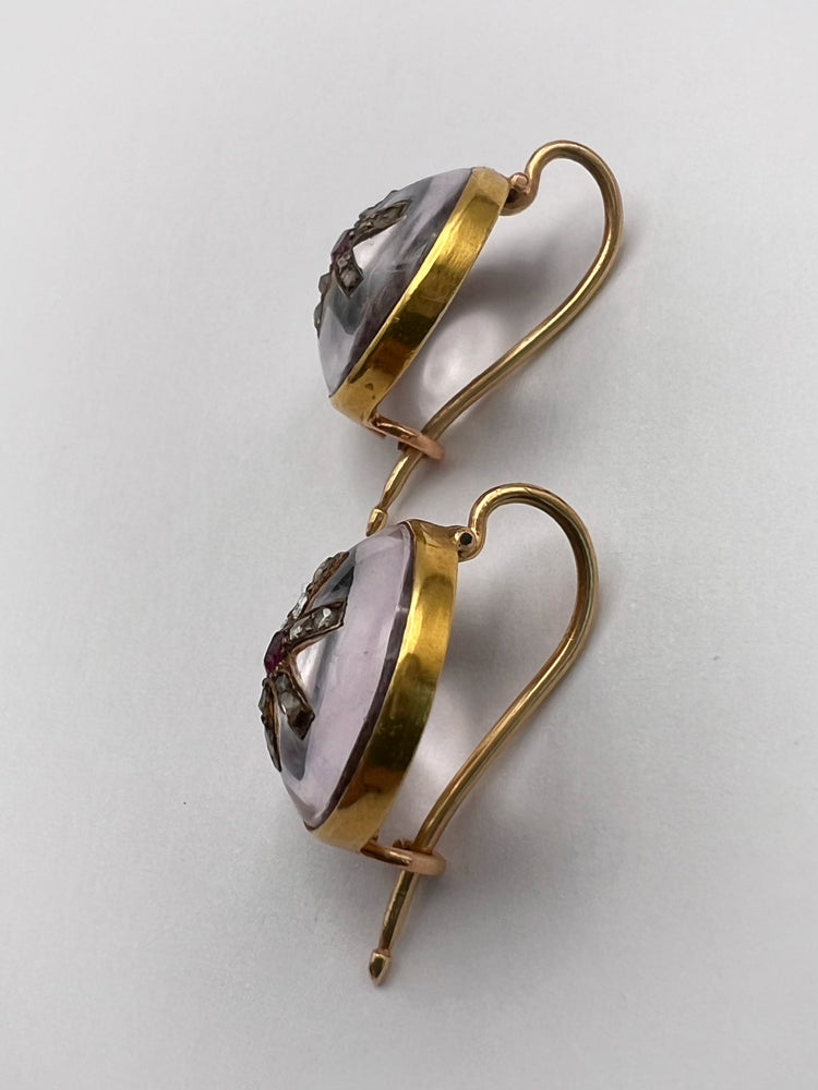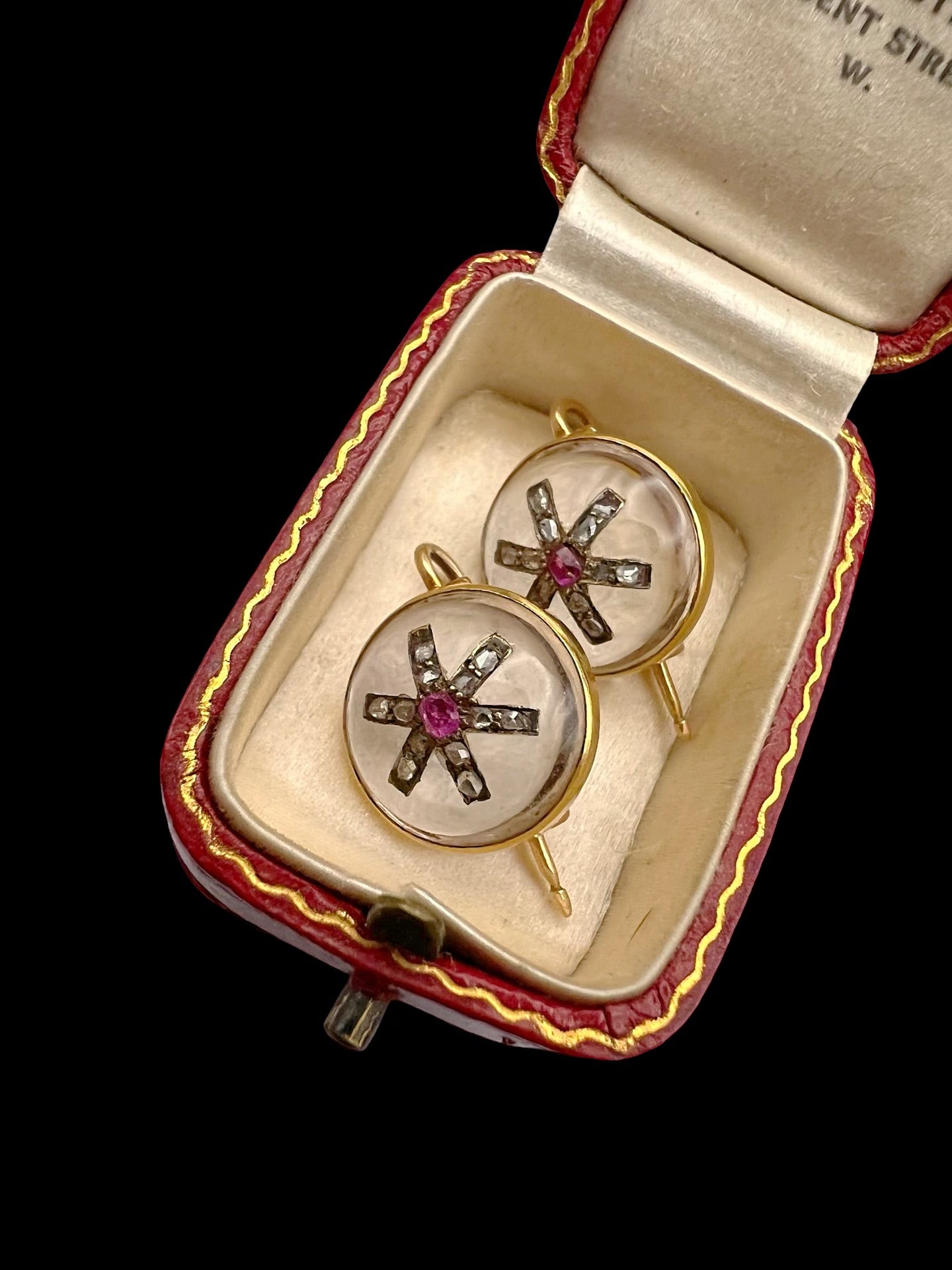 VICTORIAN DIAMOND & RUBY STAR ROCK CRYSTAL EARRINGS