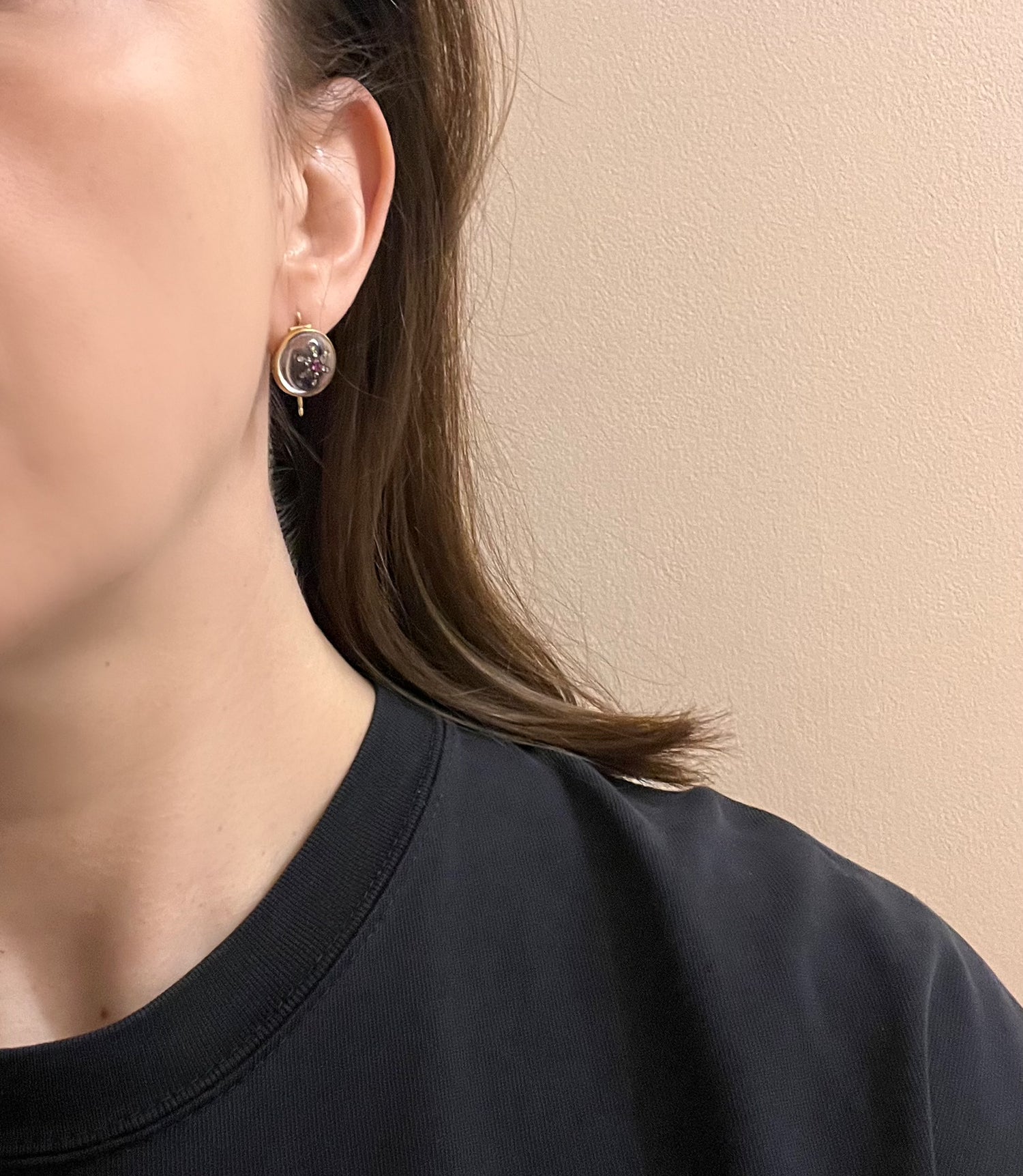 The earrings have solid 9ct carat gold shepherds hooks that clip at the back, so they are super secure.