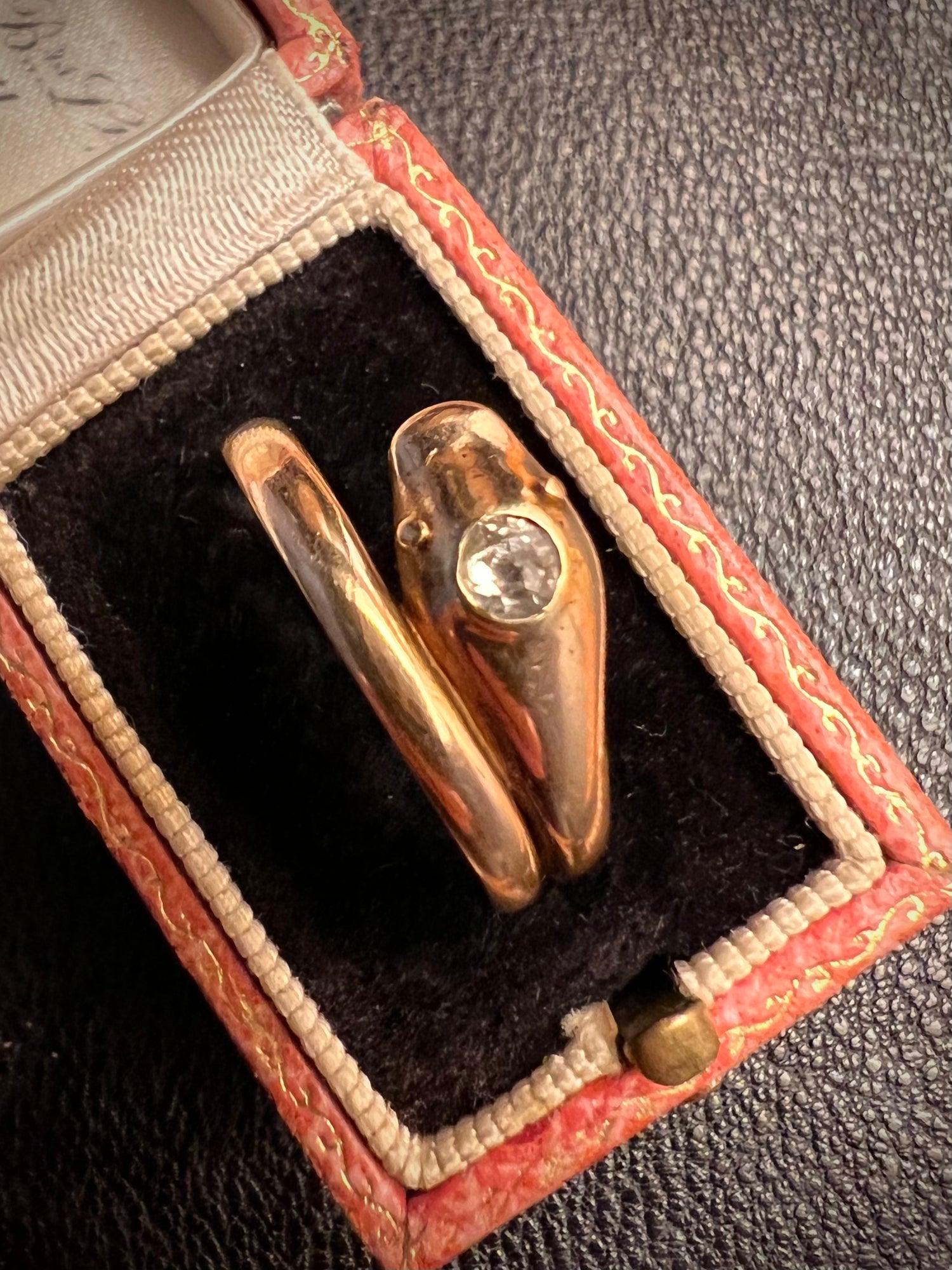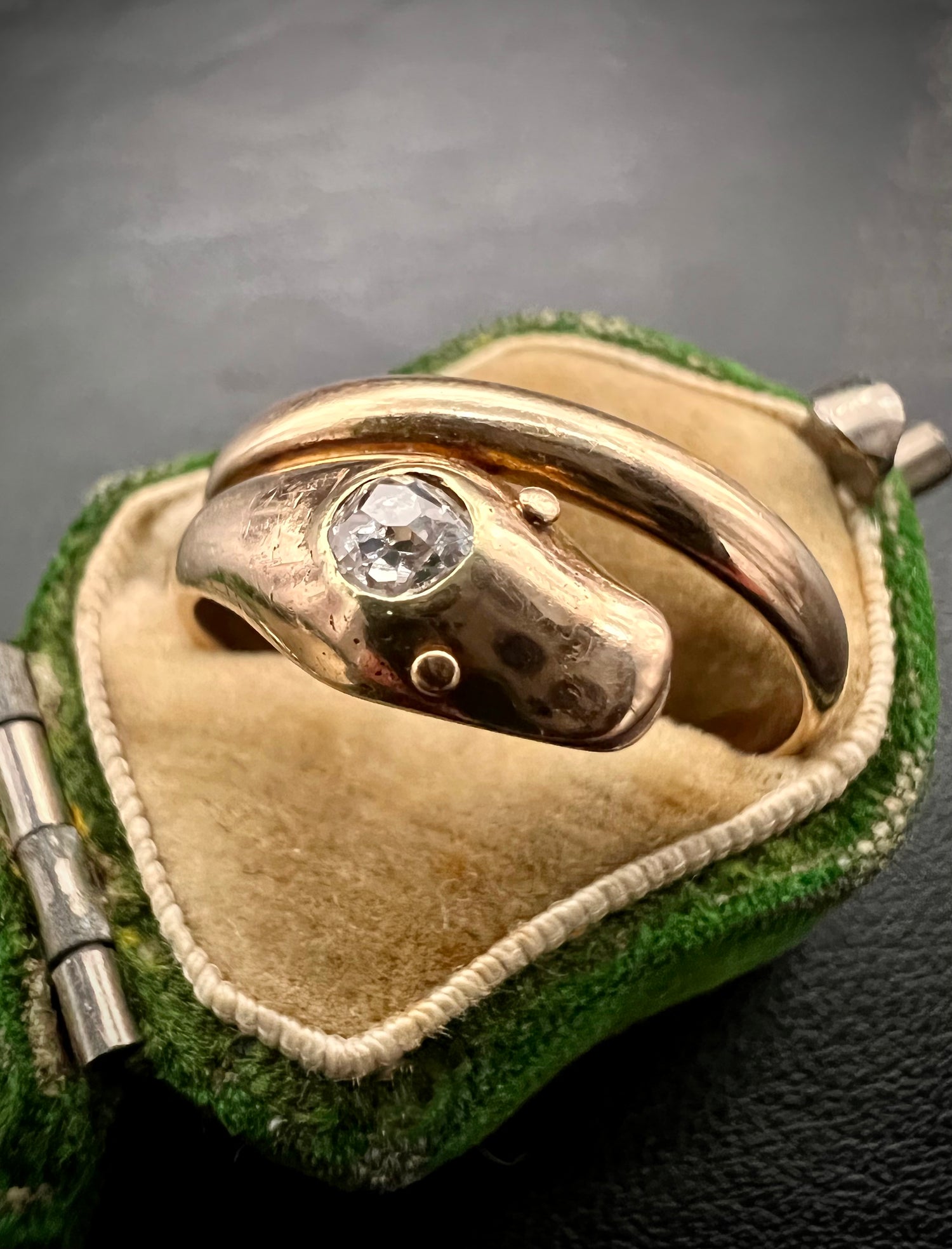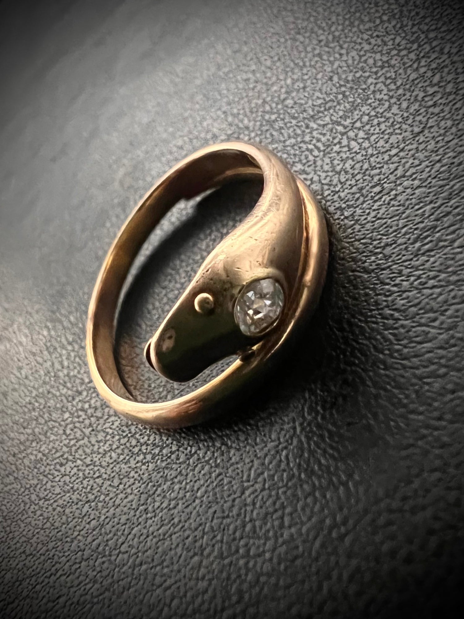This is a really stylish Victorian high carat snake ring with an old cut diamond head.