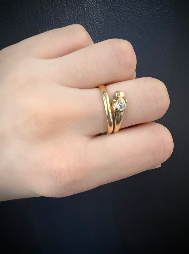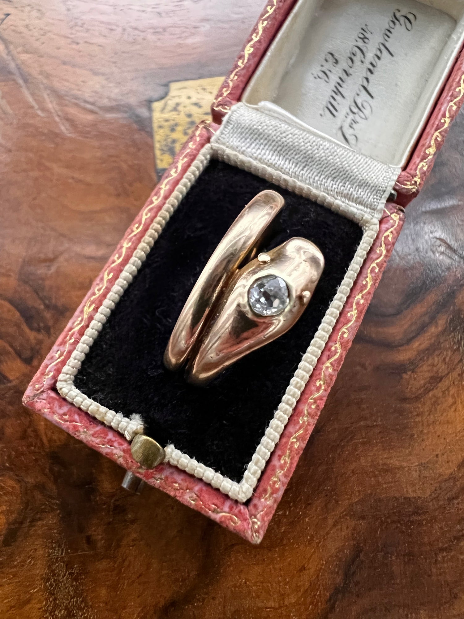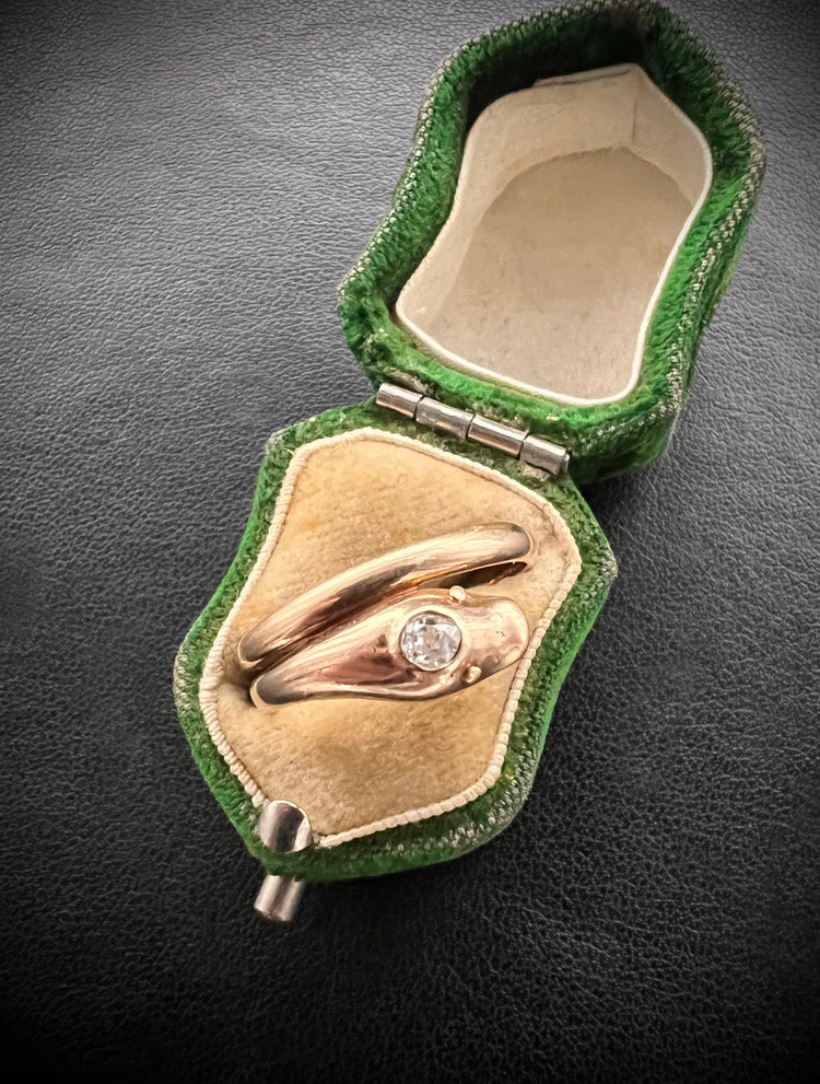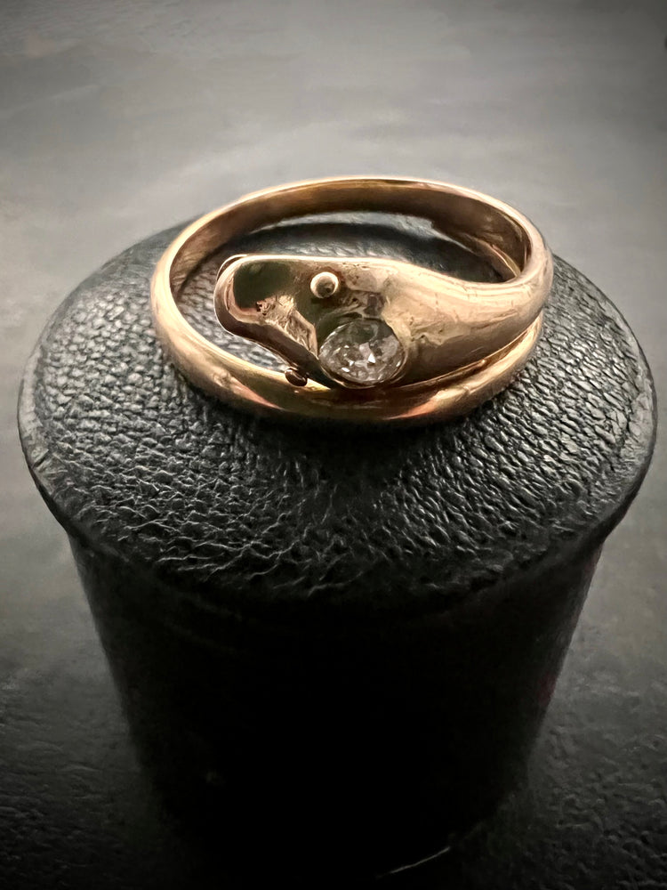 This is a really stylish Victorian high carat snake ring with an old cut diamond head.