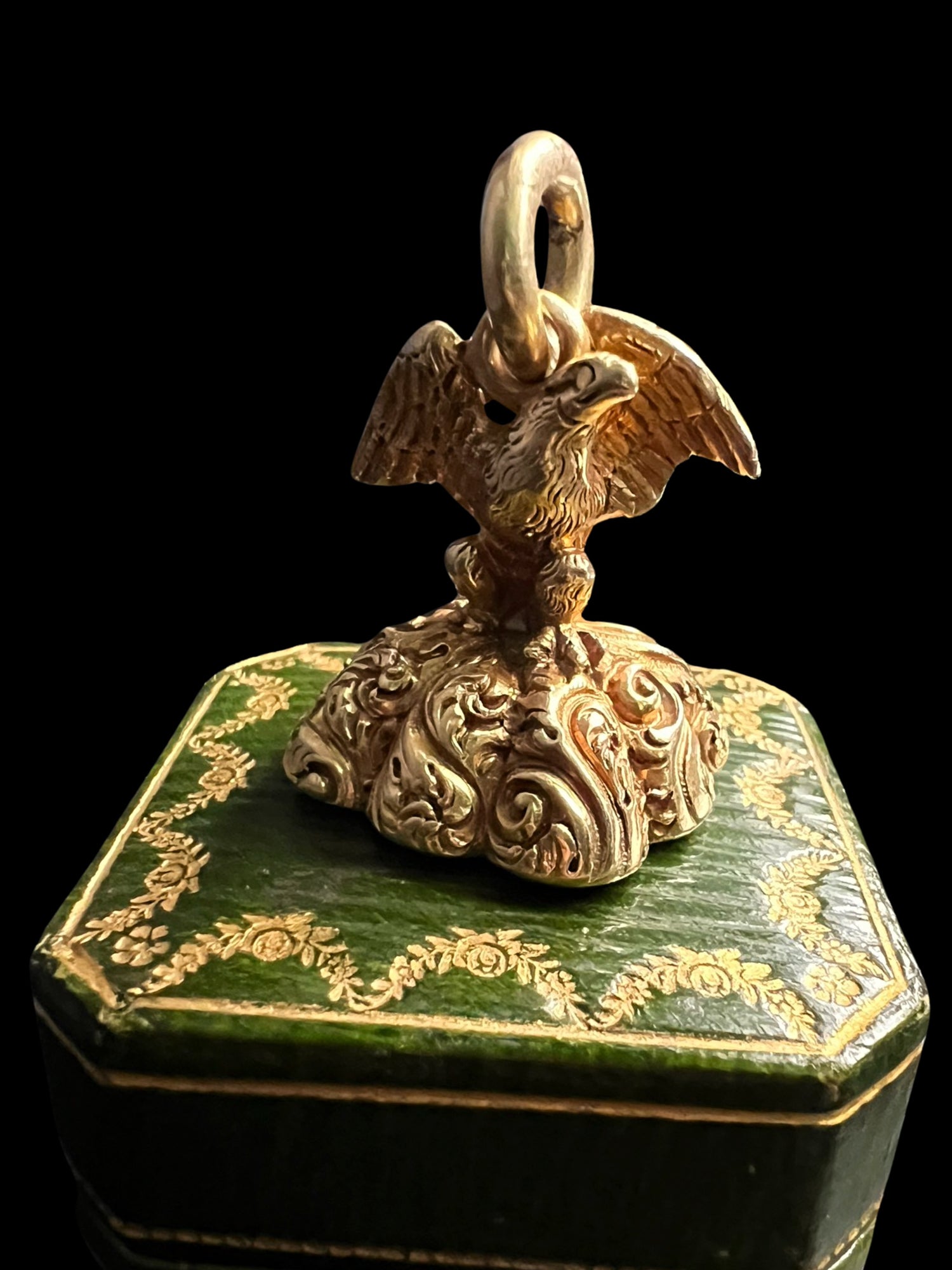 A superbly modelled Eagle fob with a beautifully scalloped Chalcedony intaglio.