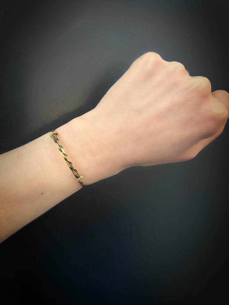 The antique bracelet features one elephant hair strand from the tail, twisted within a fine 9ct gold sheet.