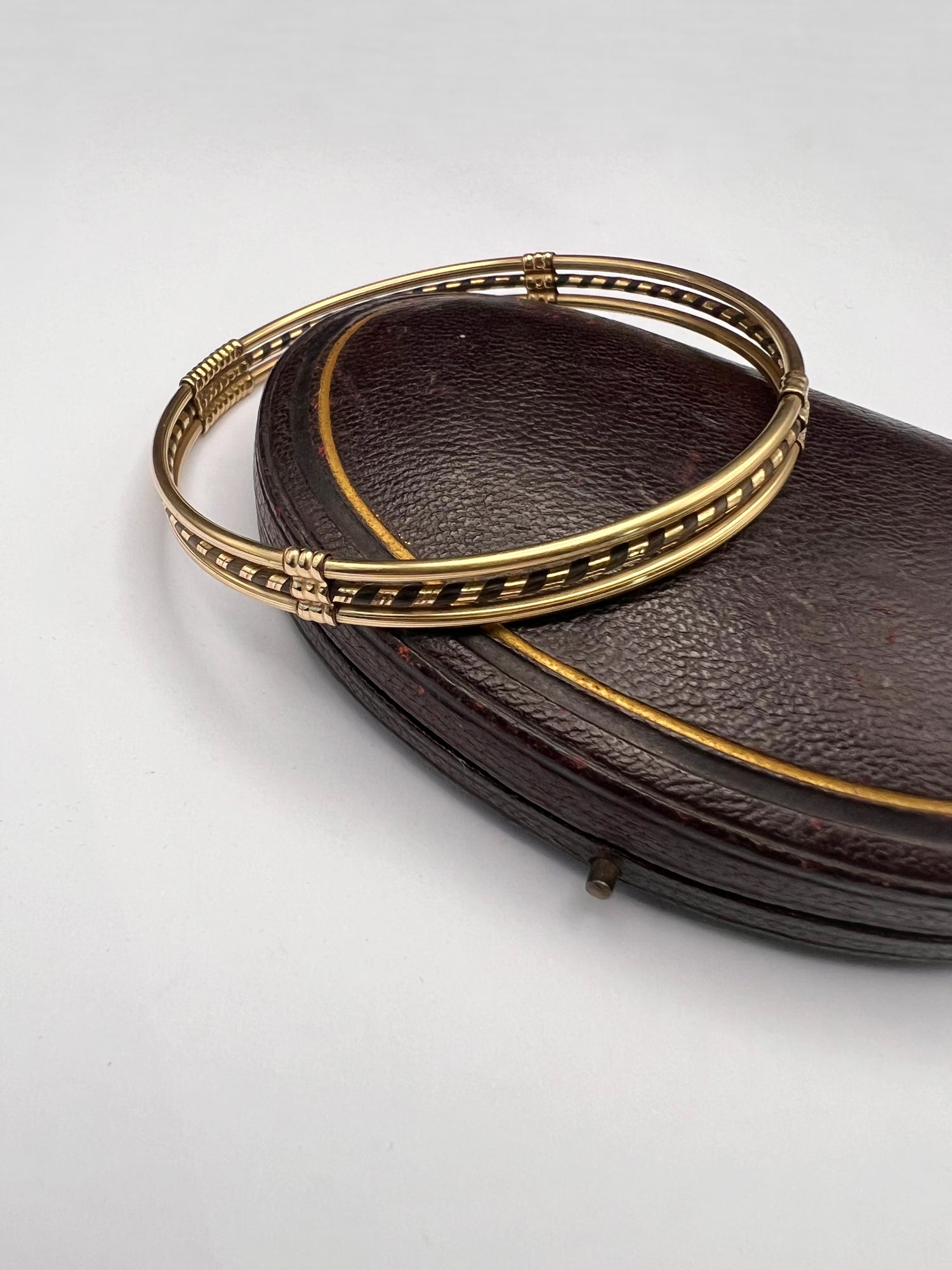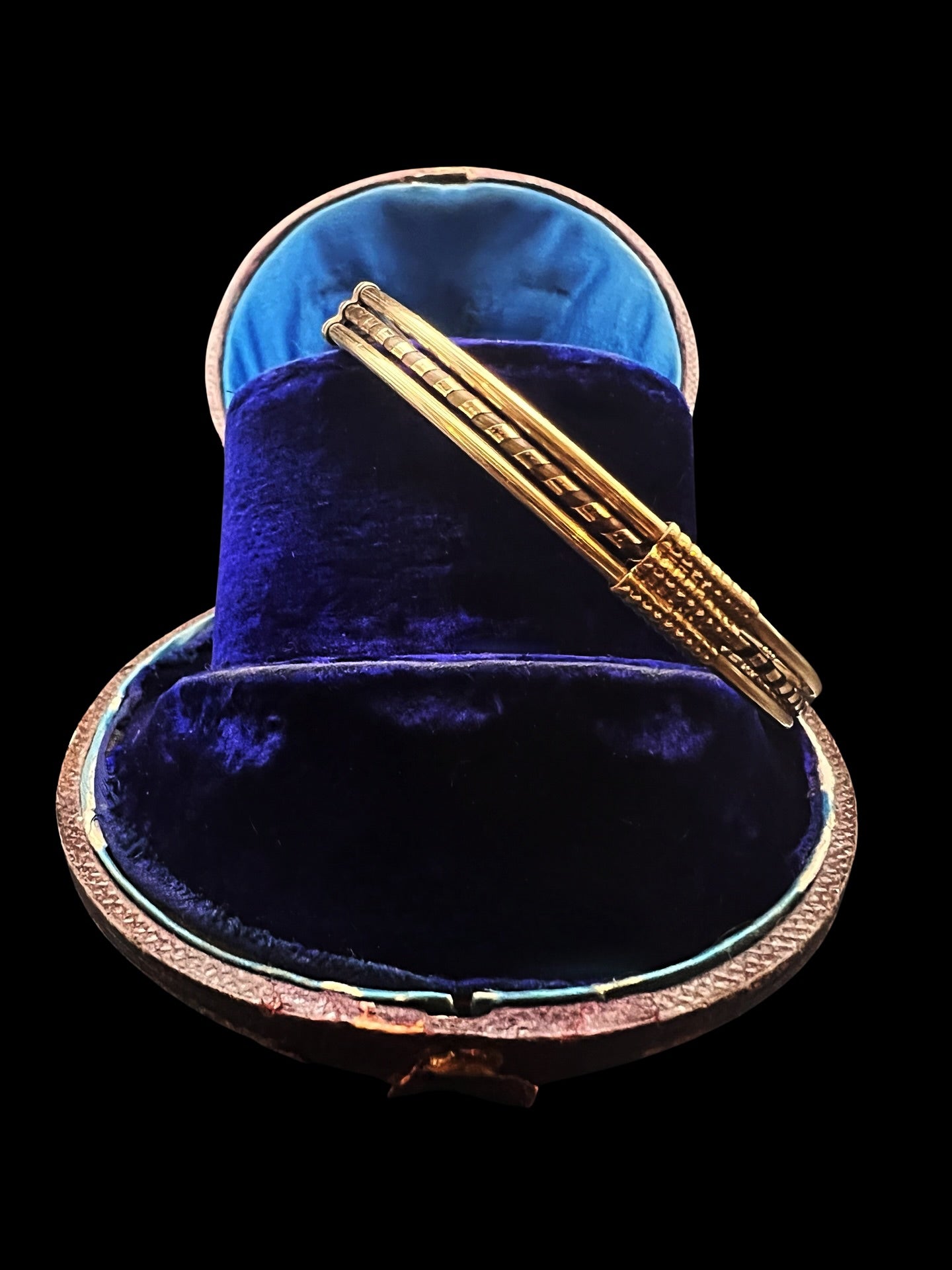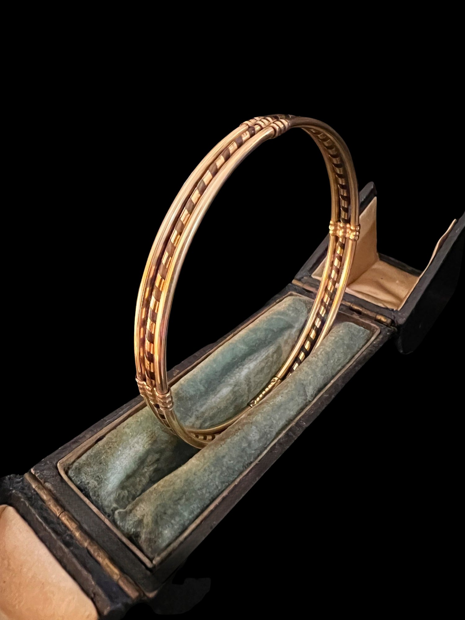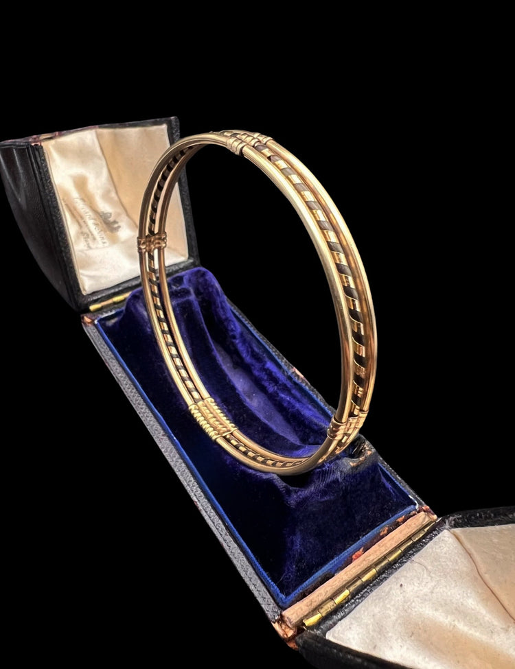 Rolled gold was first created in England in the 19th century. It is made by fusing sheets of 9ct or higher gold either side of a base metal.