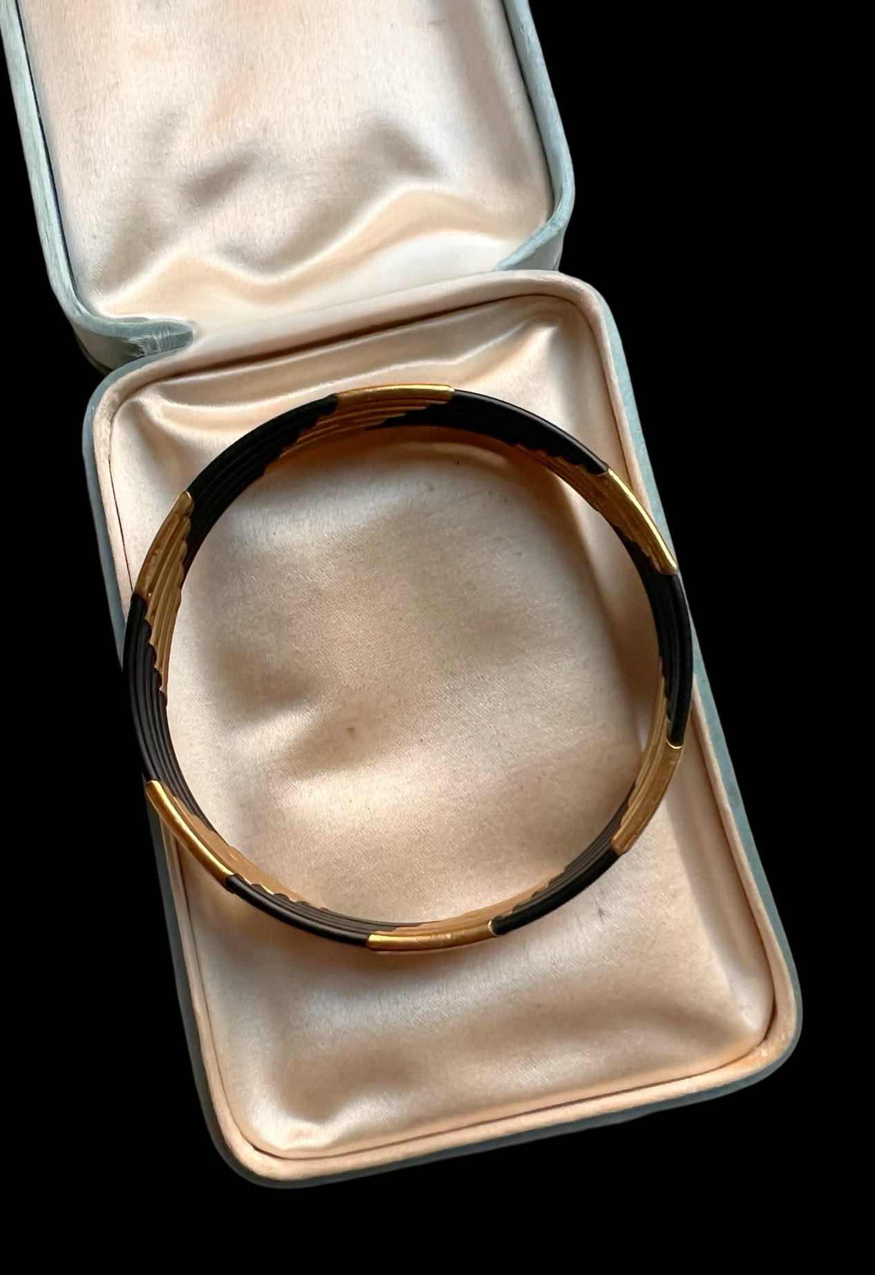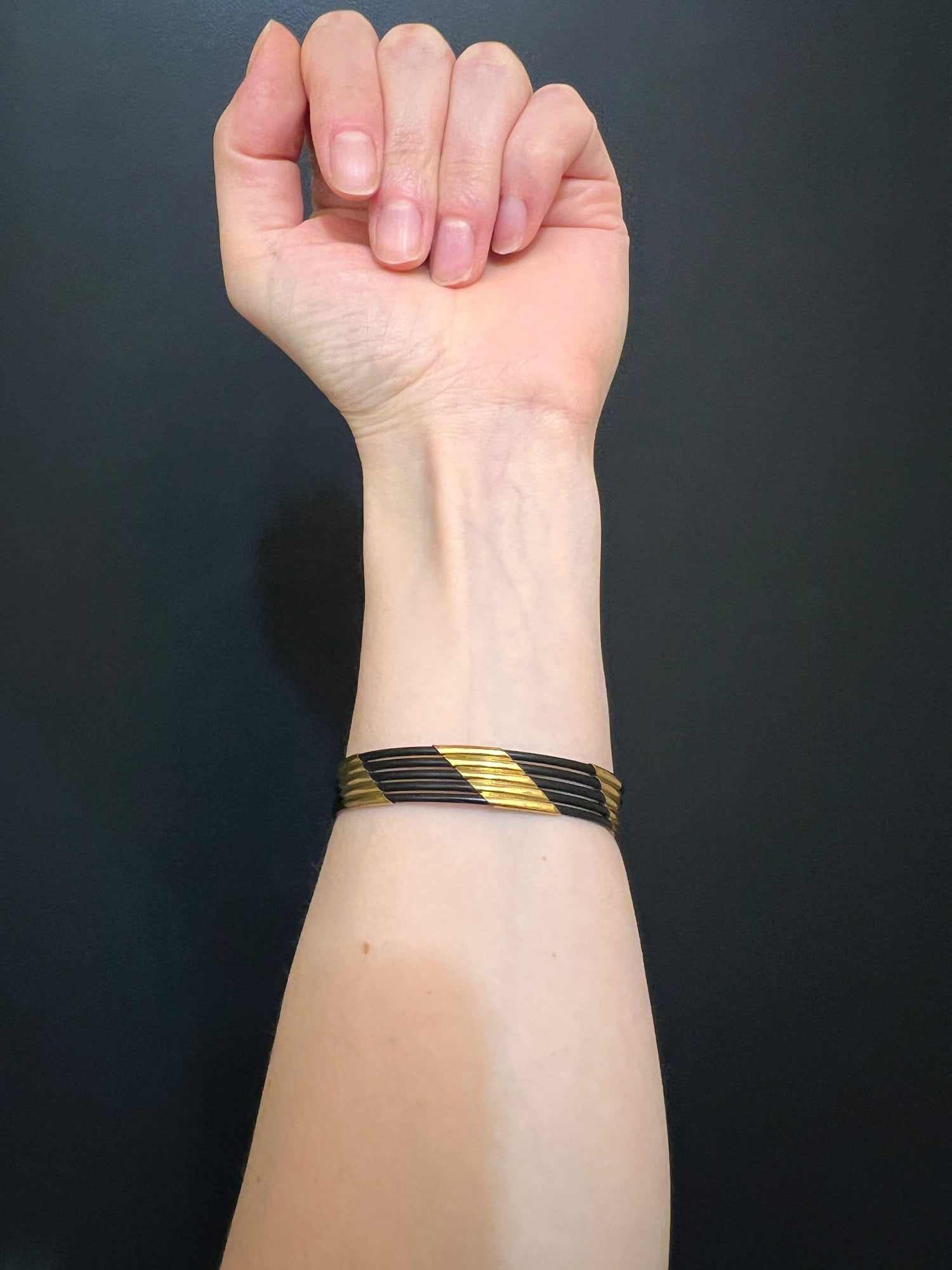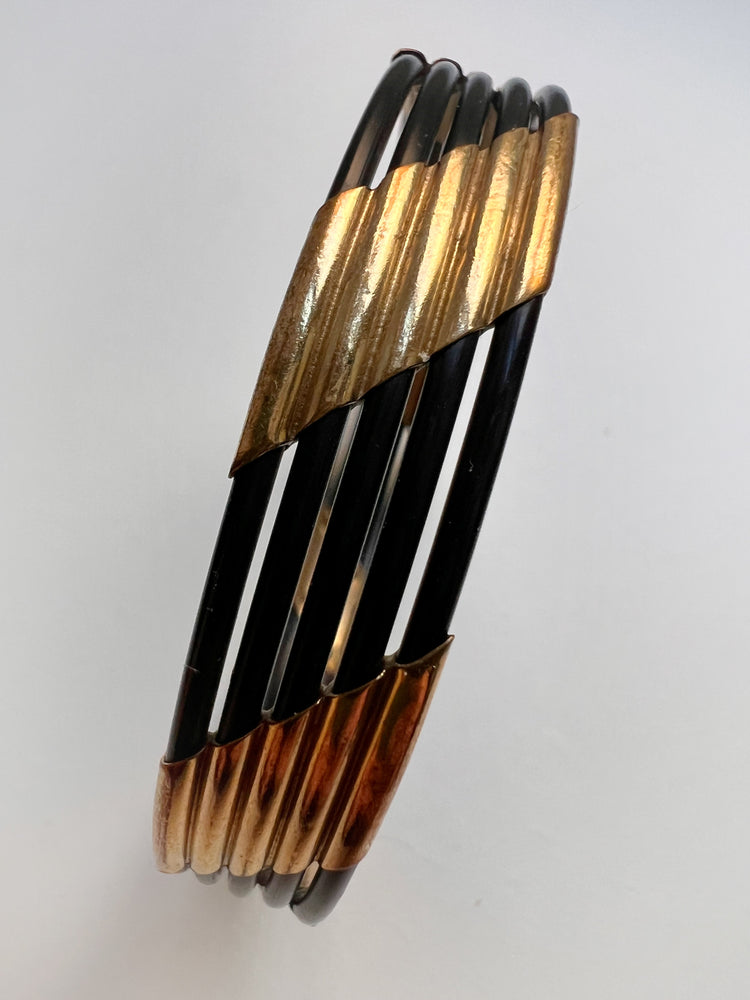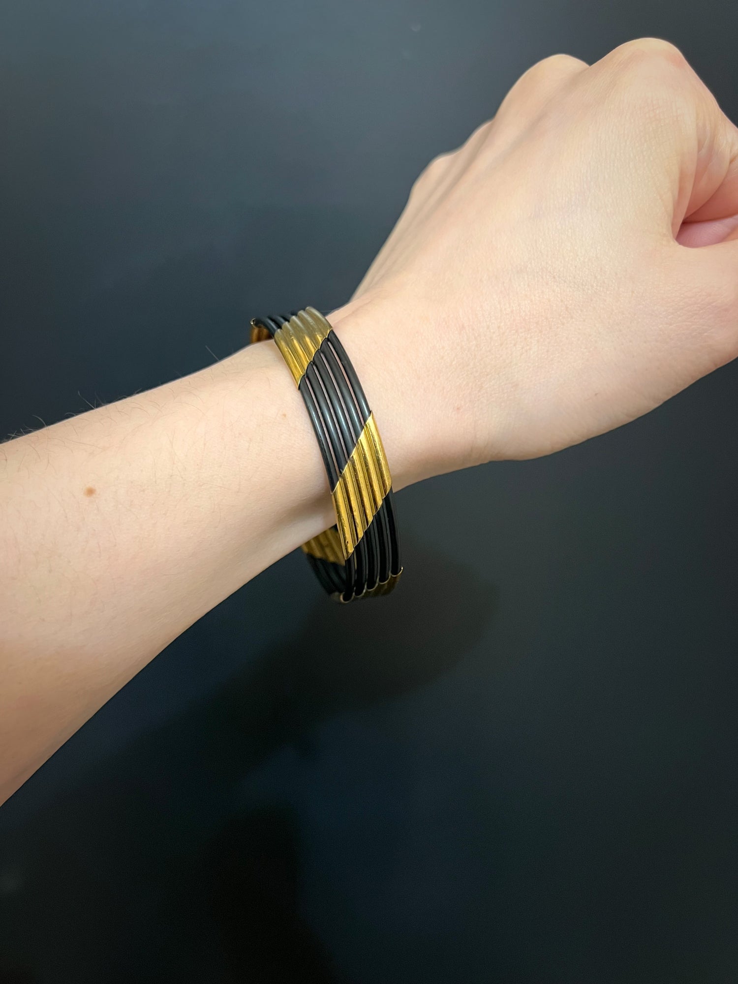 This is the chunkiest elephant hair bangle I have found so far, with 5 strands of elephant tail hair connected with alternating sections of rolled 14ct gold.