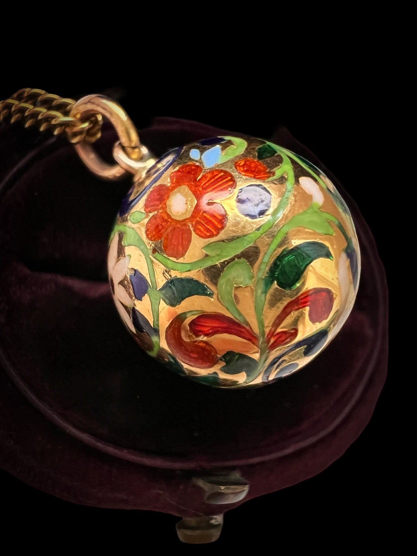 VICTORIAN ENAMELLED 18CT GOLD SPHERE PENDANT