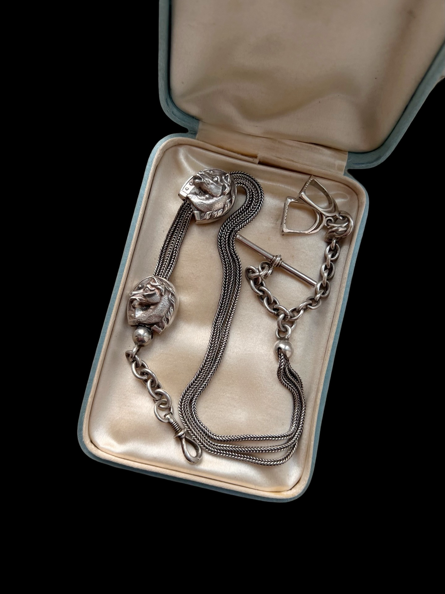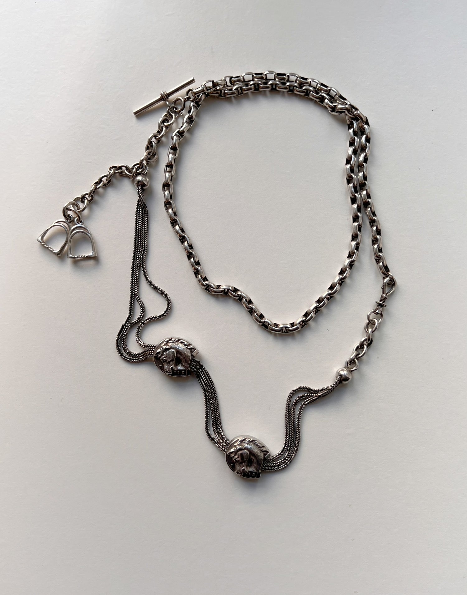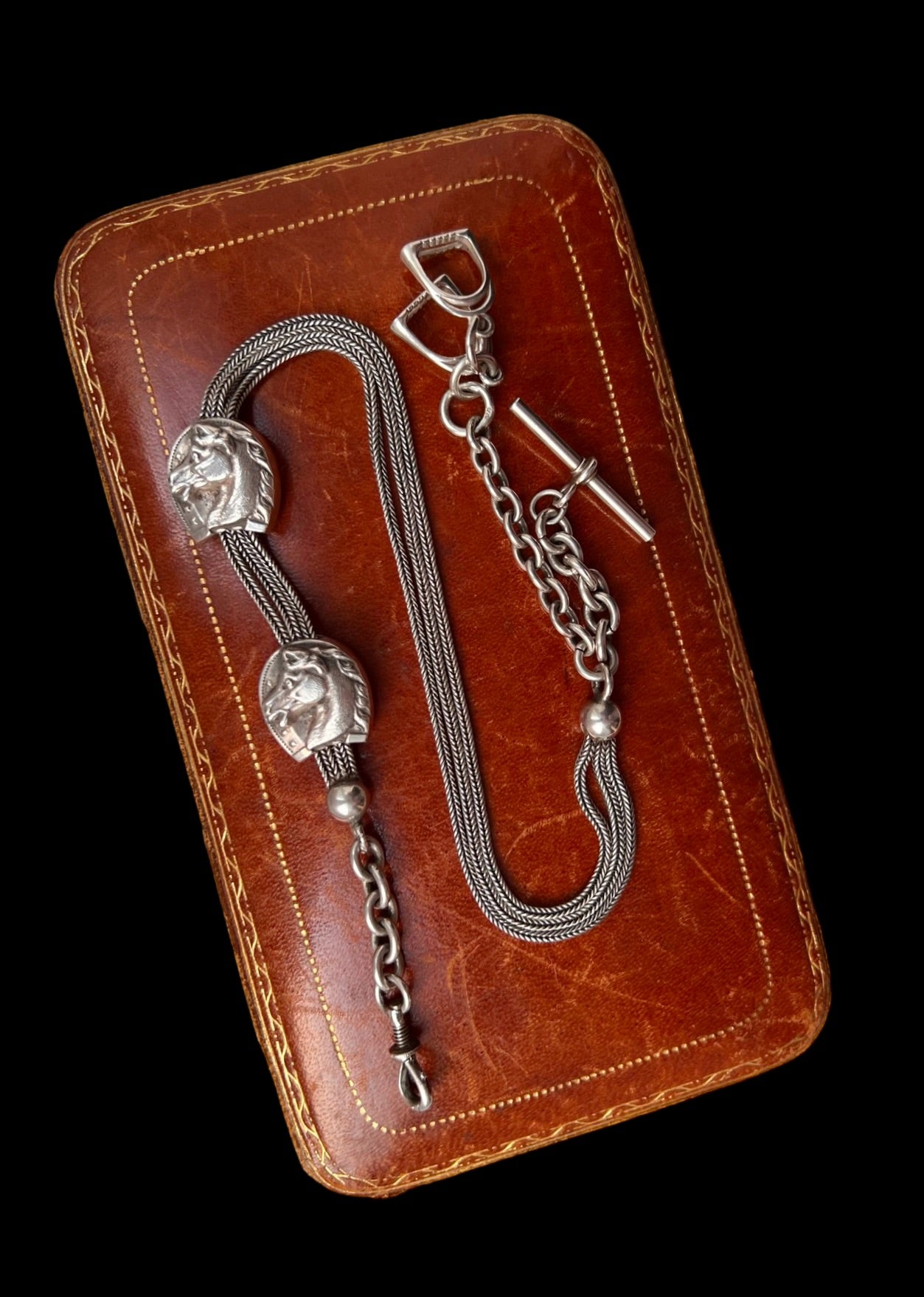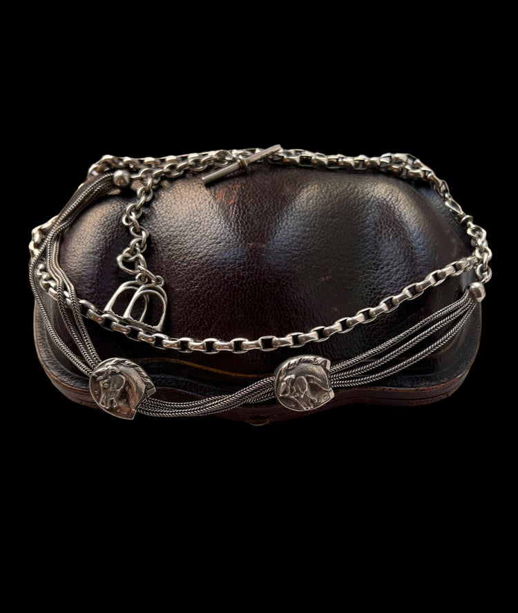 A super versatile 19th century silver Equestrian Albertina chain from France.