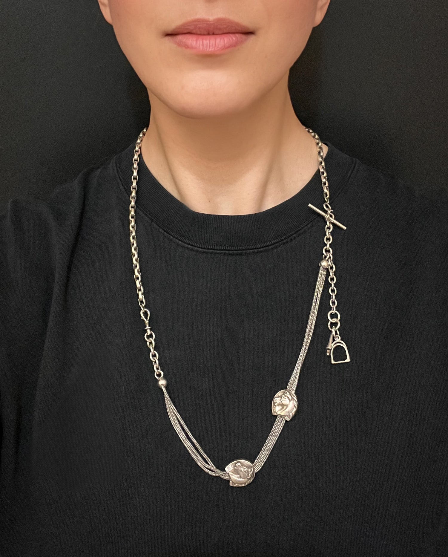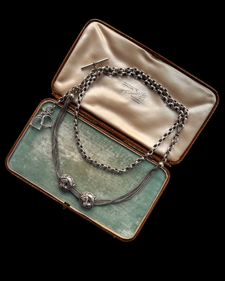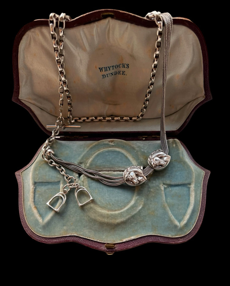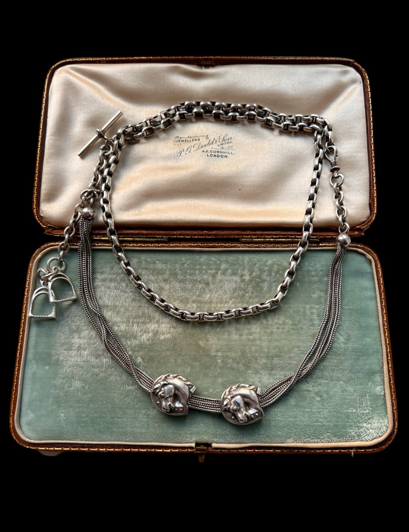 A super versatile 19th century silver Equestrian Albertina chain from France.