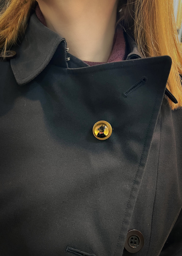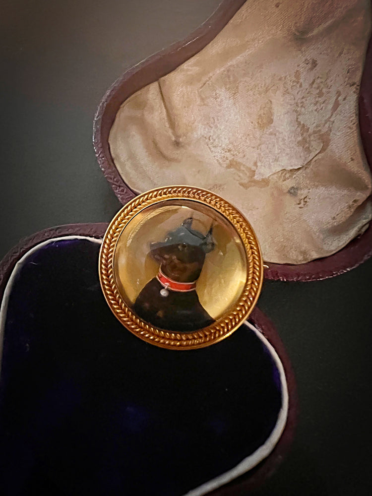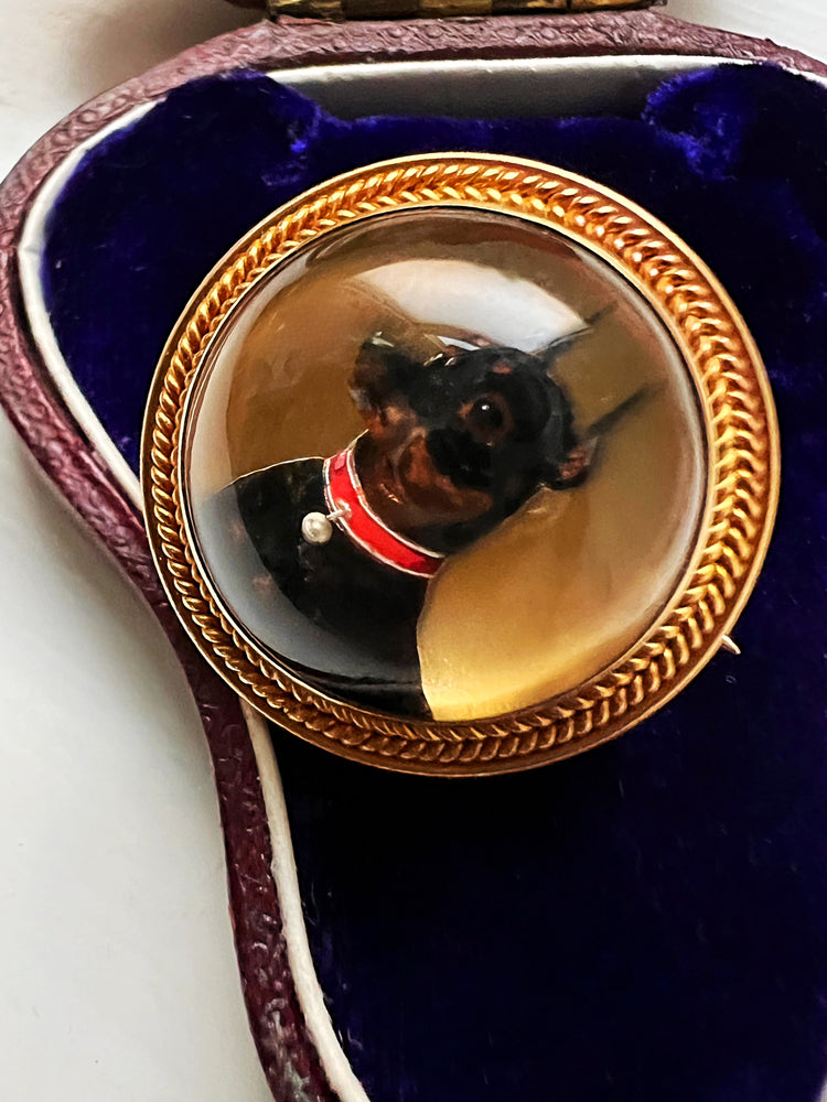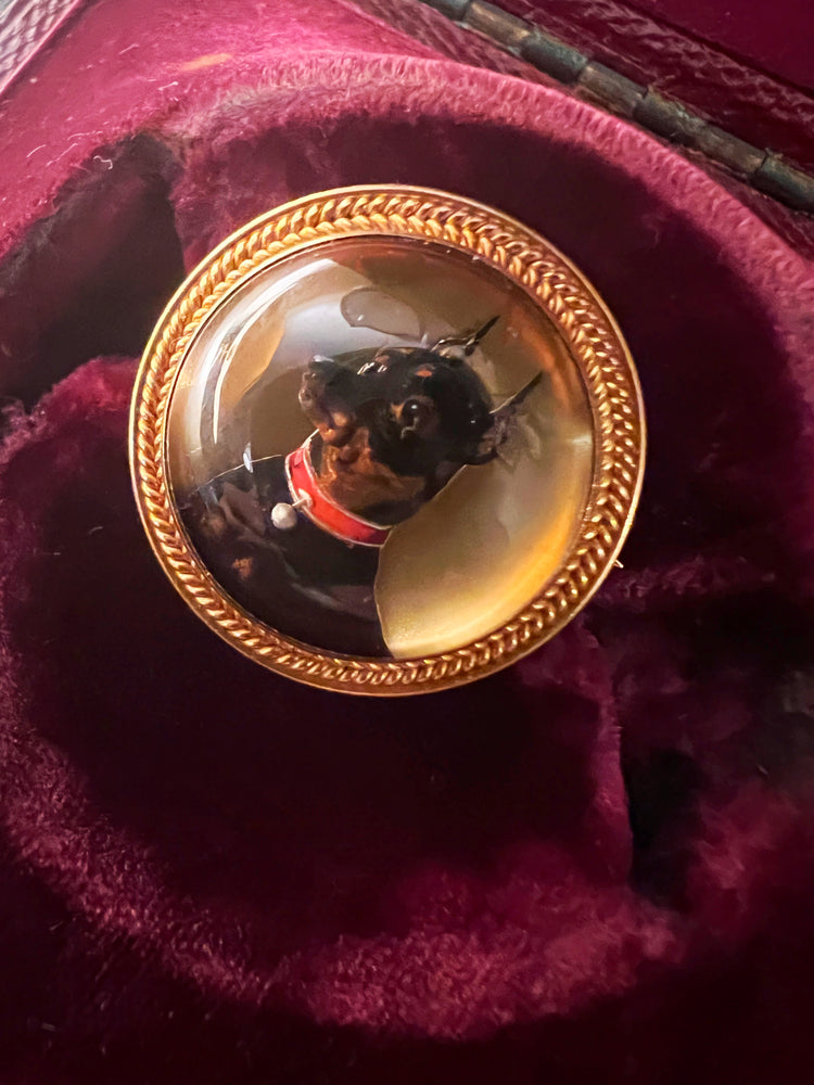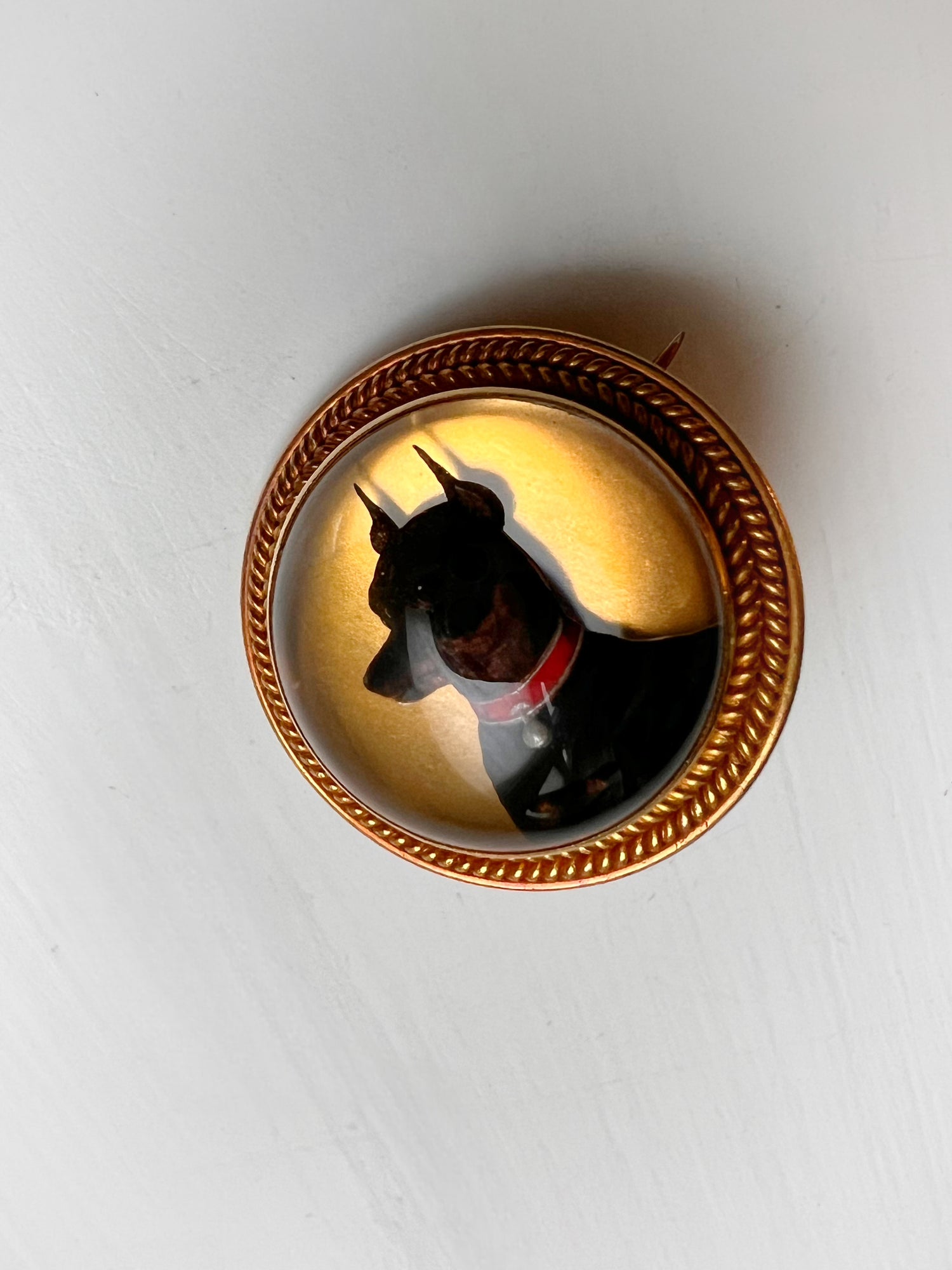 VICTORIAN ESSEX CRYSTAL / REVERSE INTAGLIO PINSCHER DOG BROOCH
