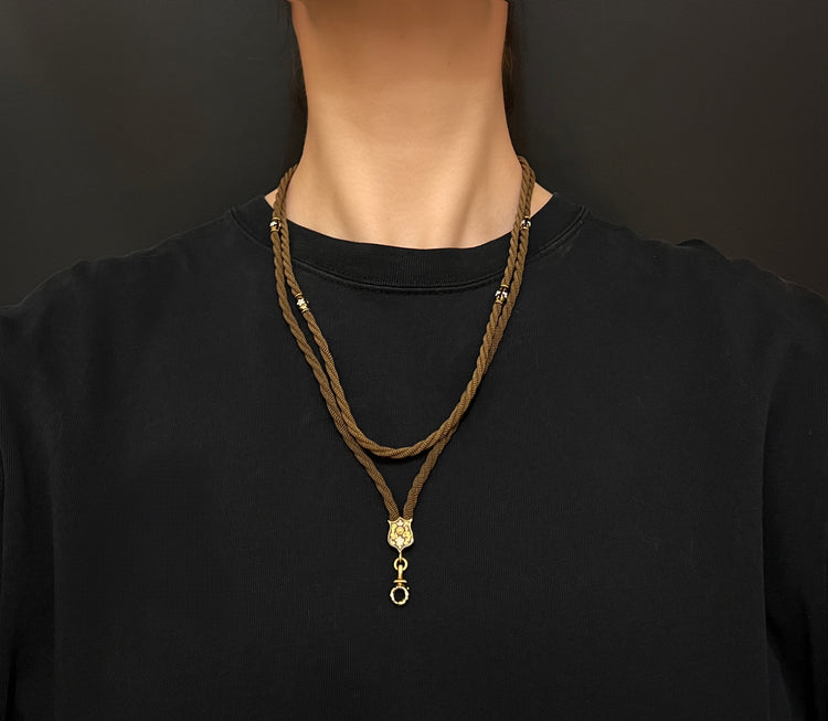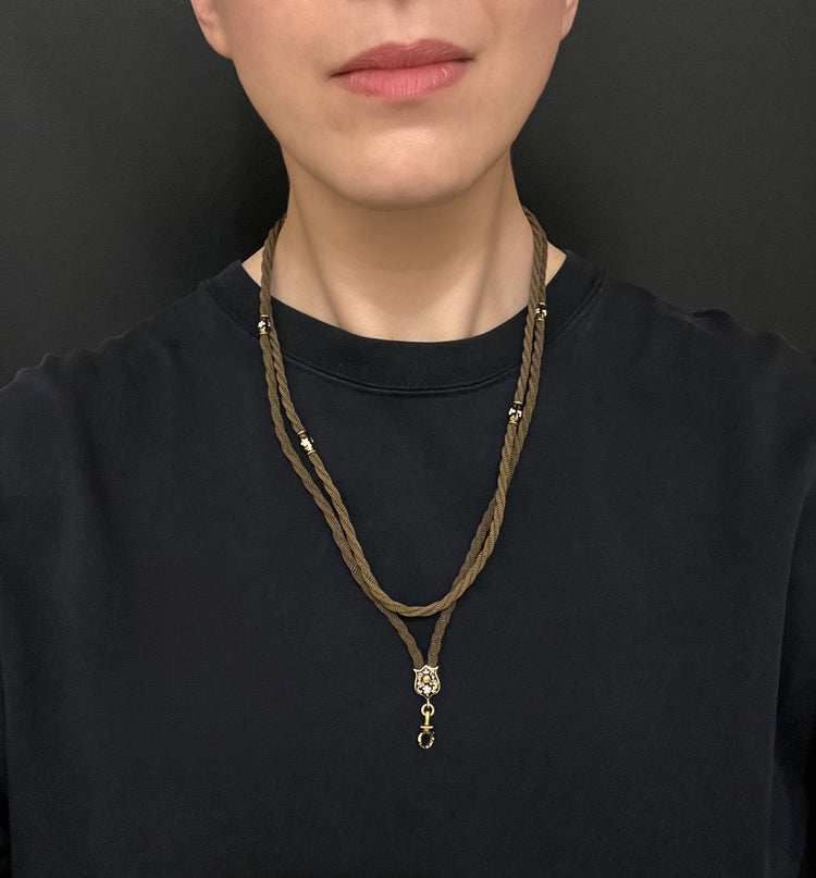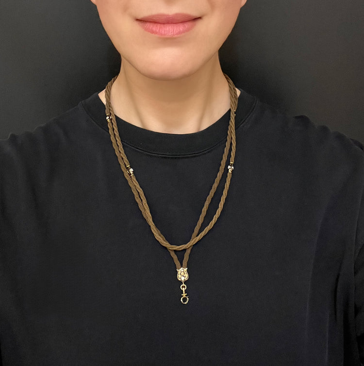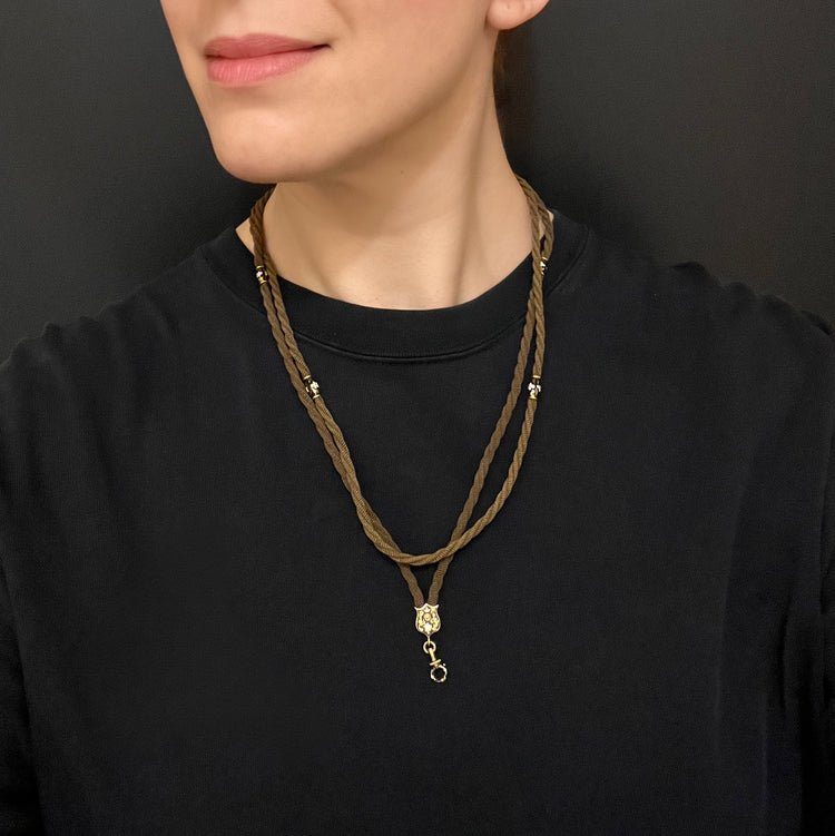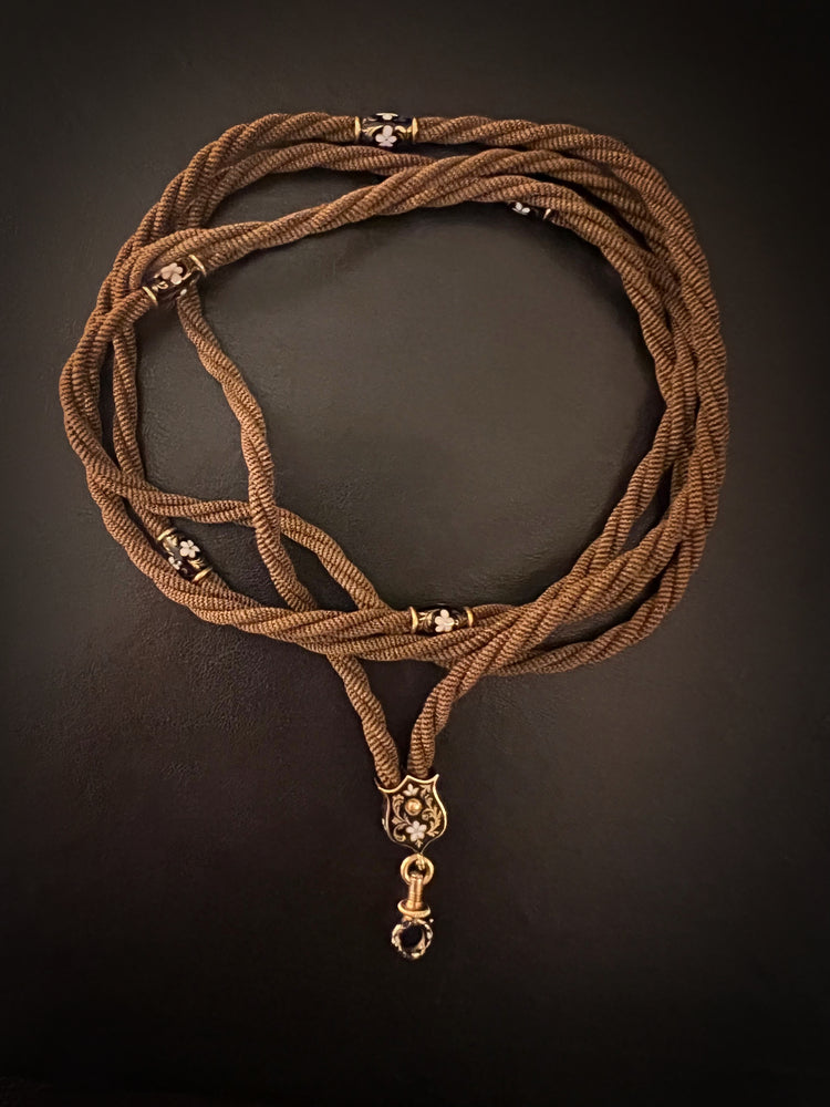 This is a stunning Victorian memorial necklace made of woven, twisted hair.