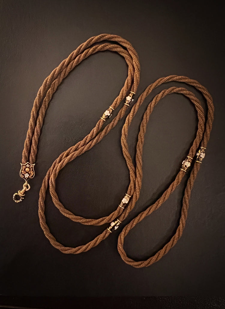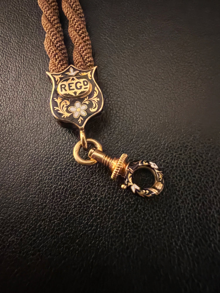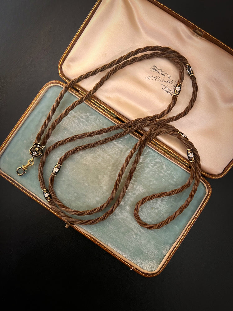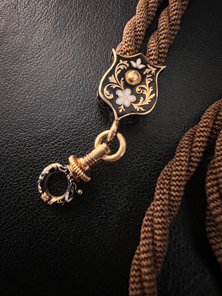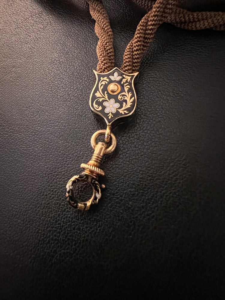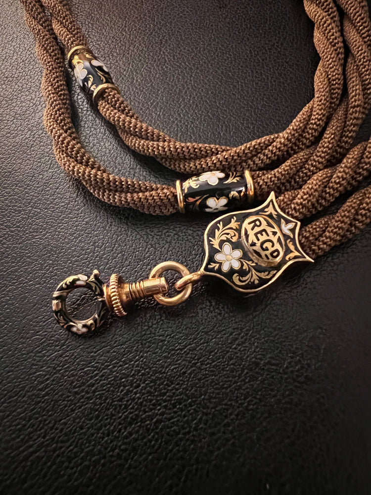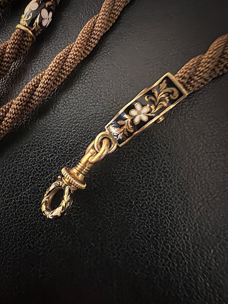 VICTORIAN HAIR NECKLACE WITH HIGH CARAT GOLD / ENAMAL FITTINGS & DOG CLIP