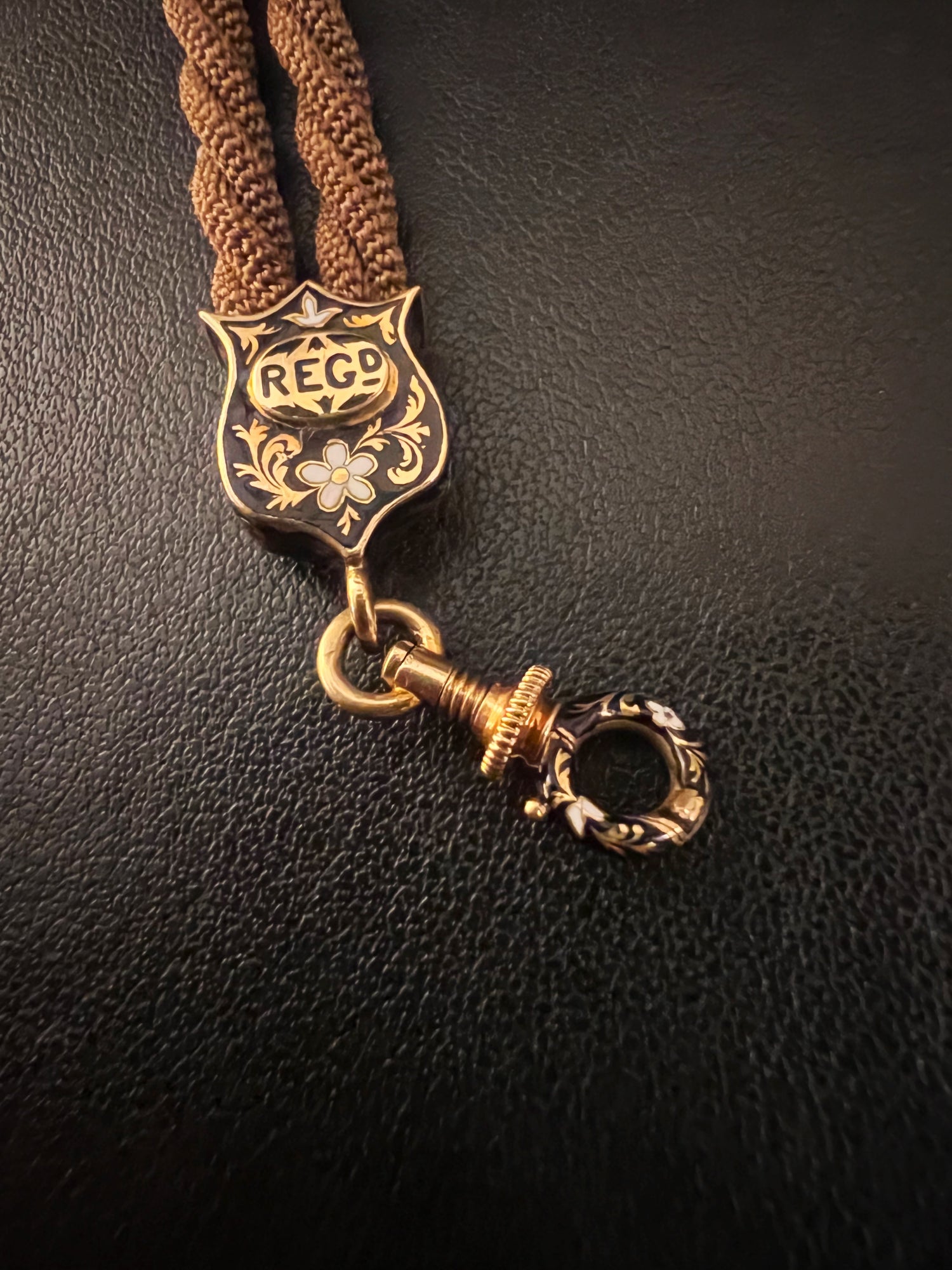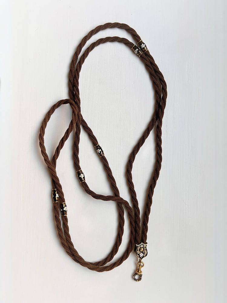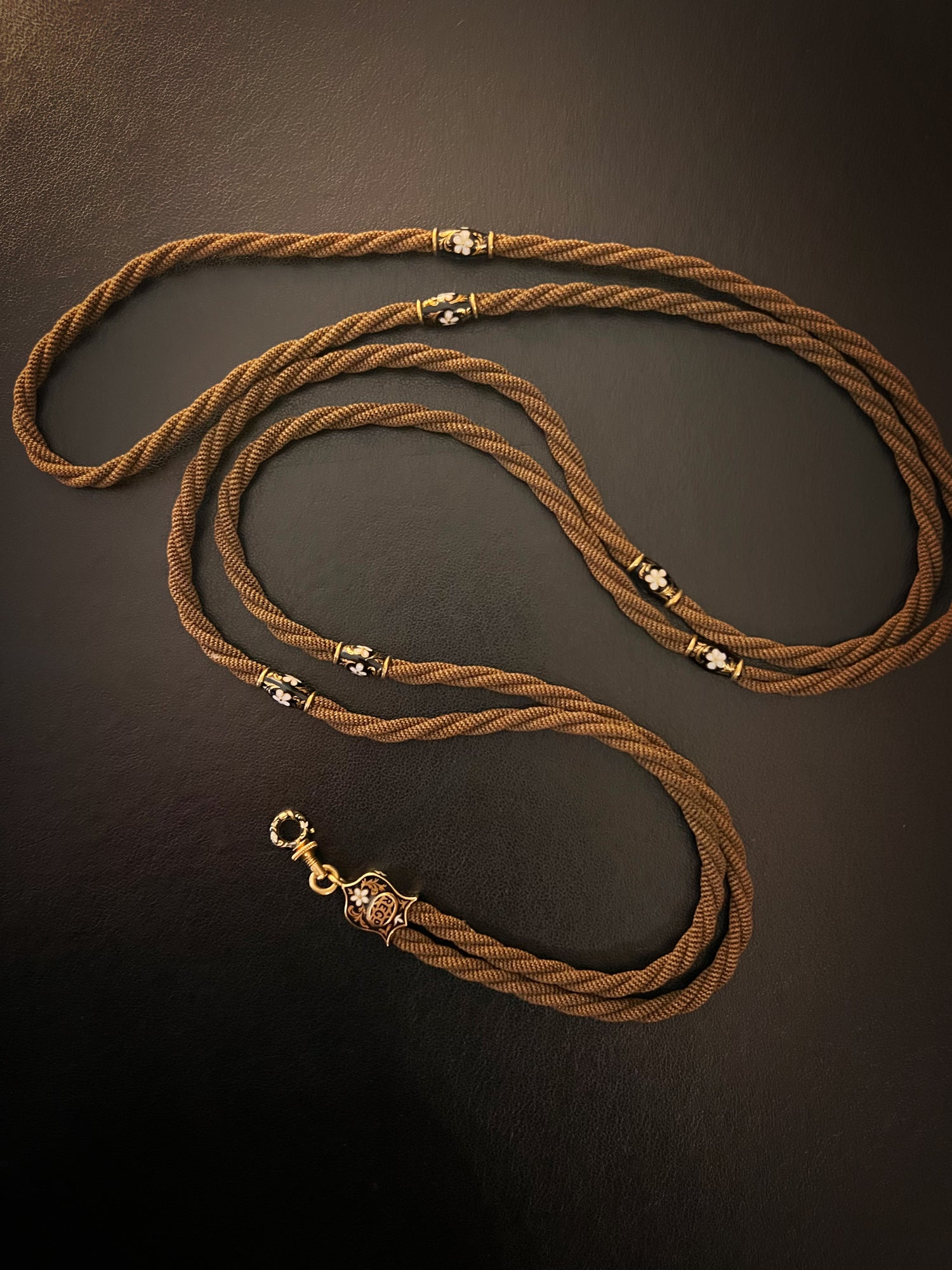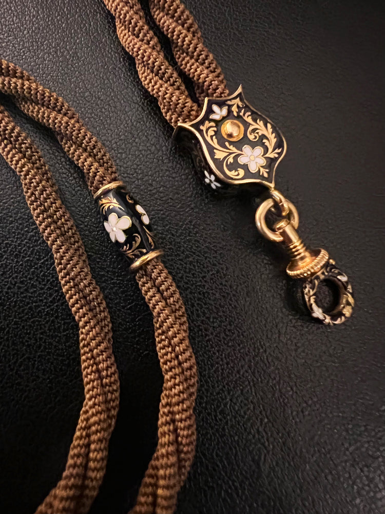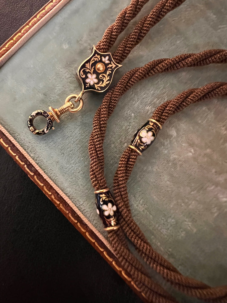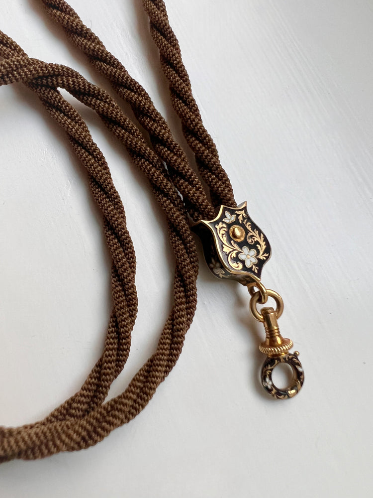 VICTORIAN HAIR NECKLACE WITH HIGH CARAT GOLD / ENAMAL FITTINGS & DOG CLIP