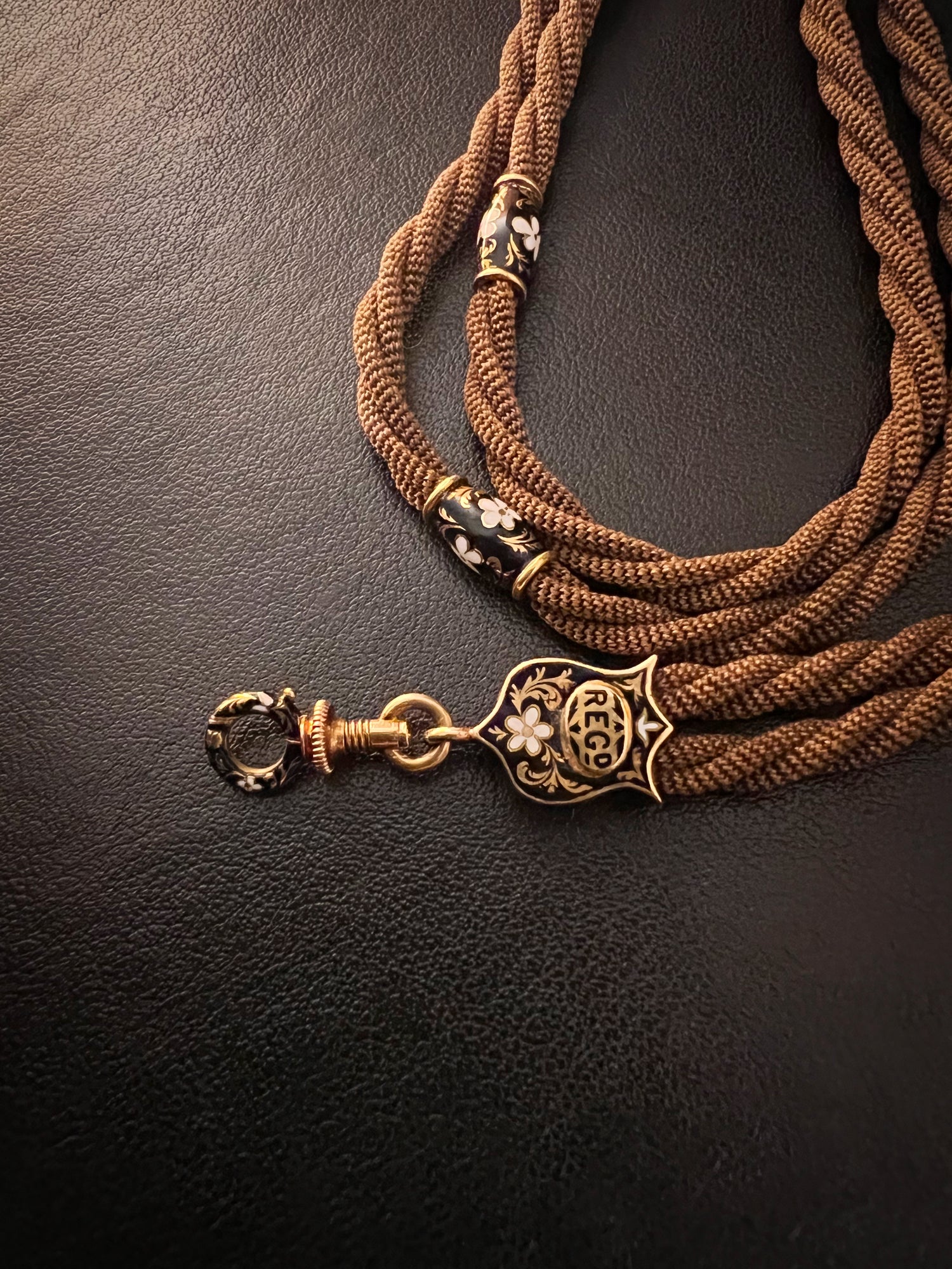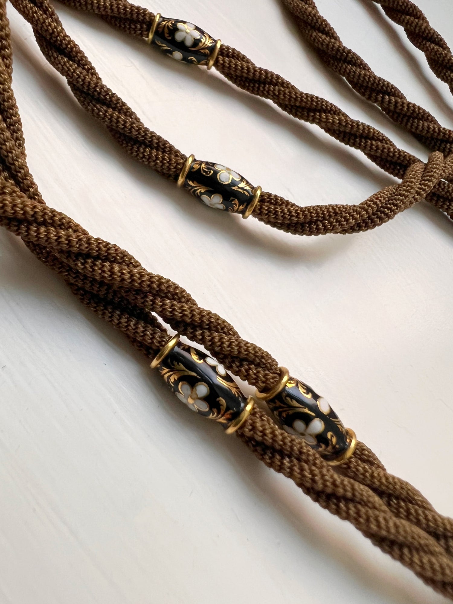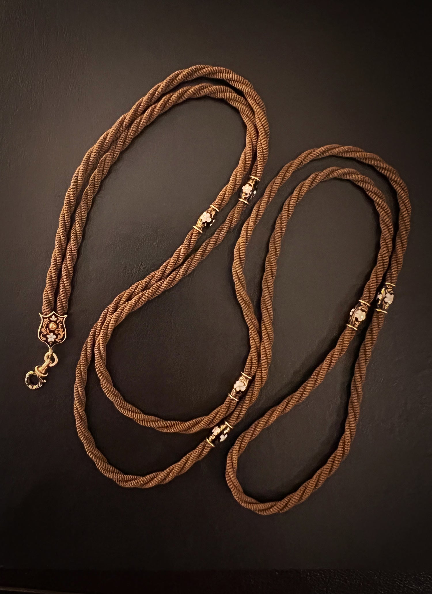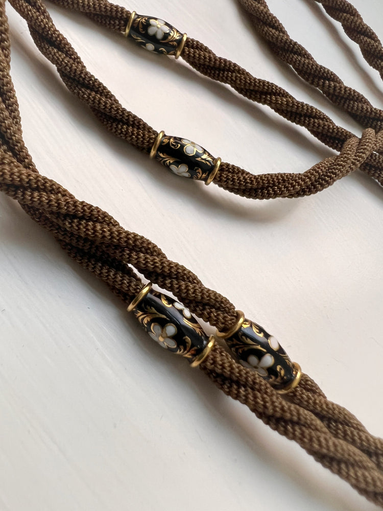 The twisted hair is interspaced with six high carat gold and enamel matching beads!
