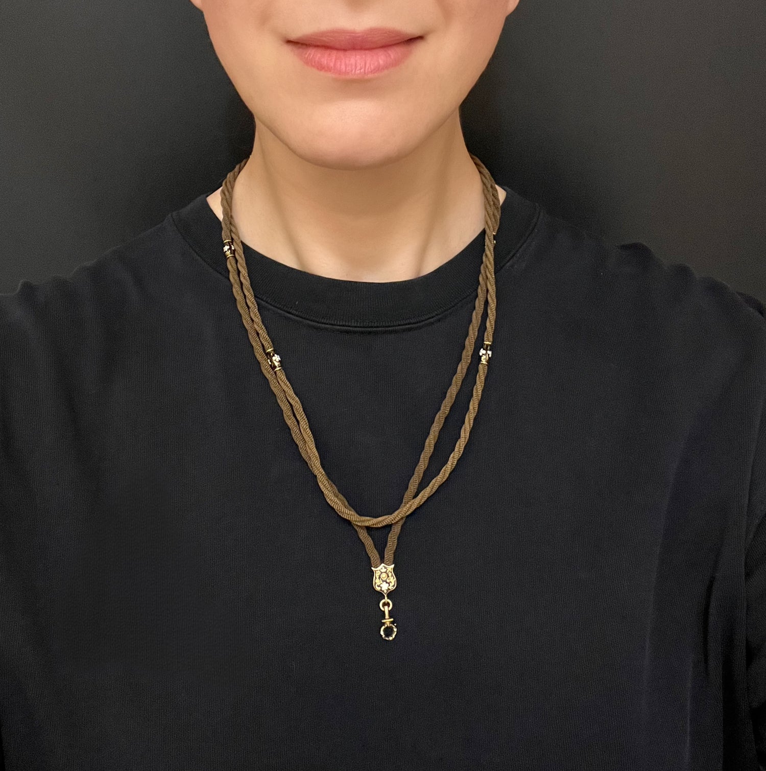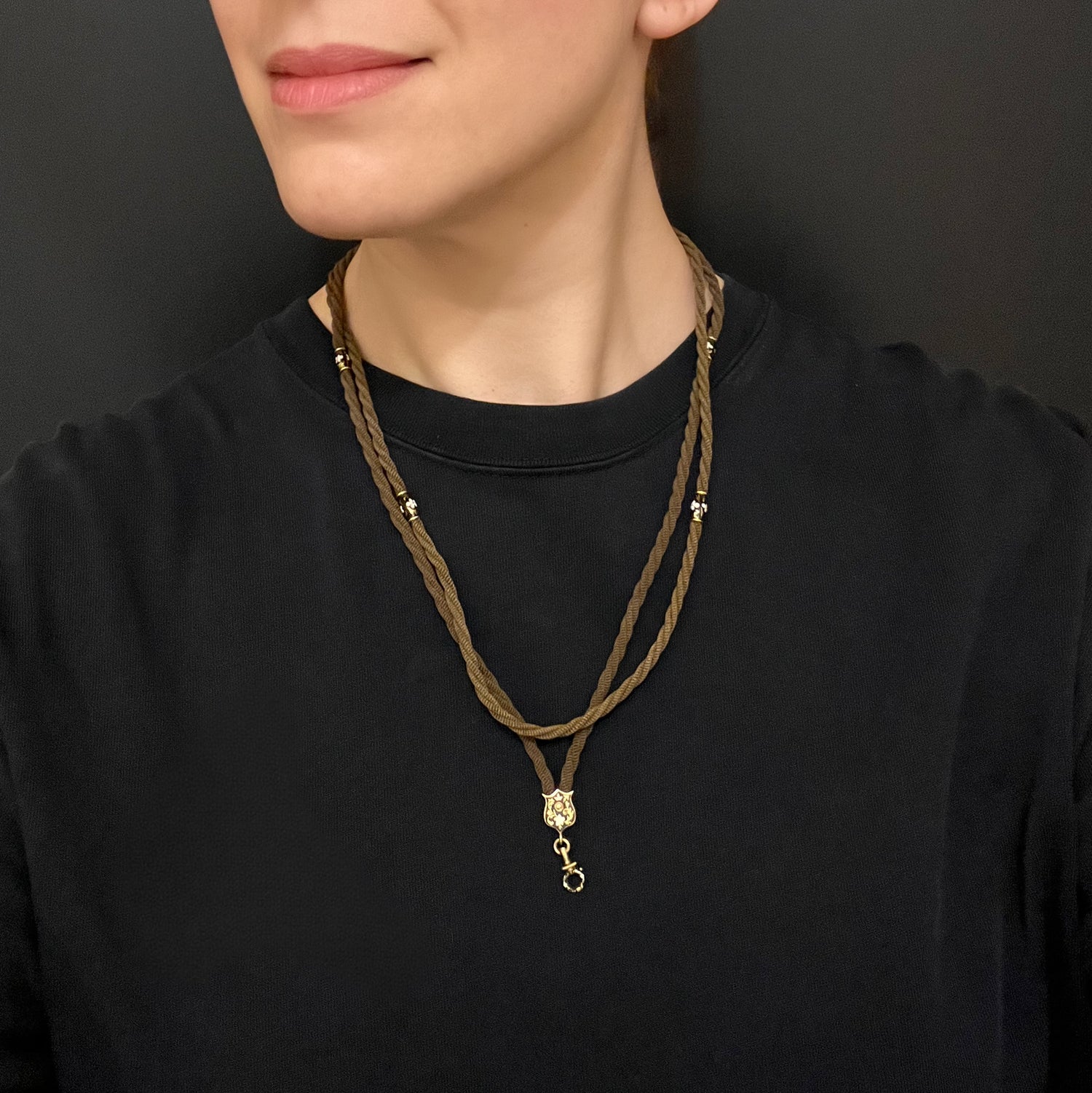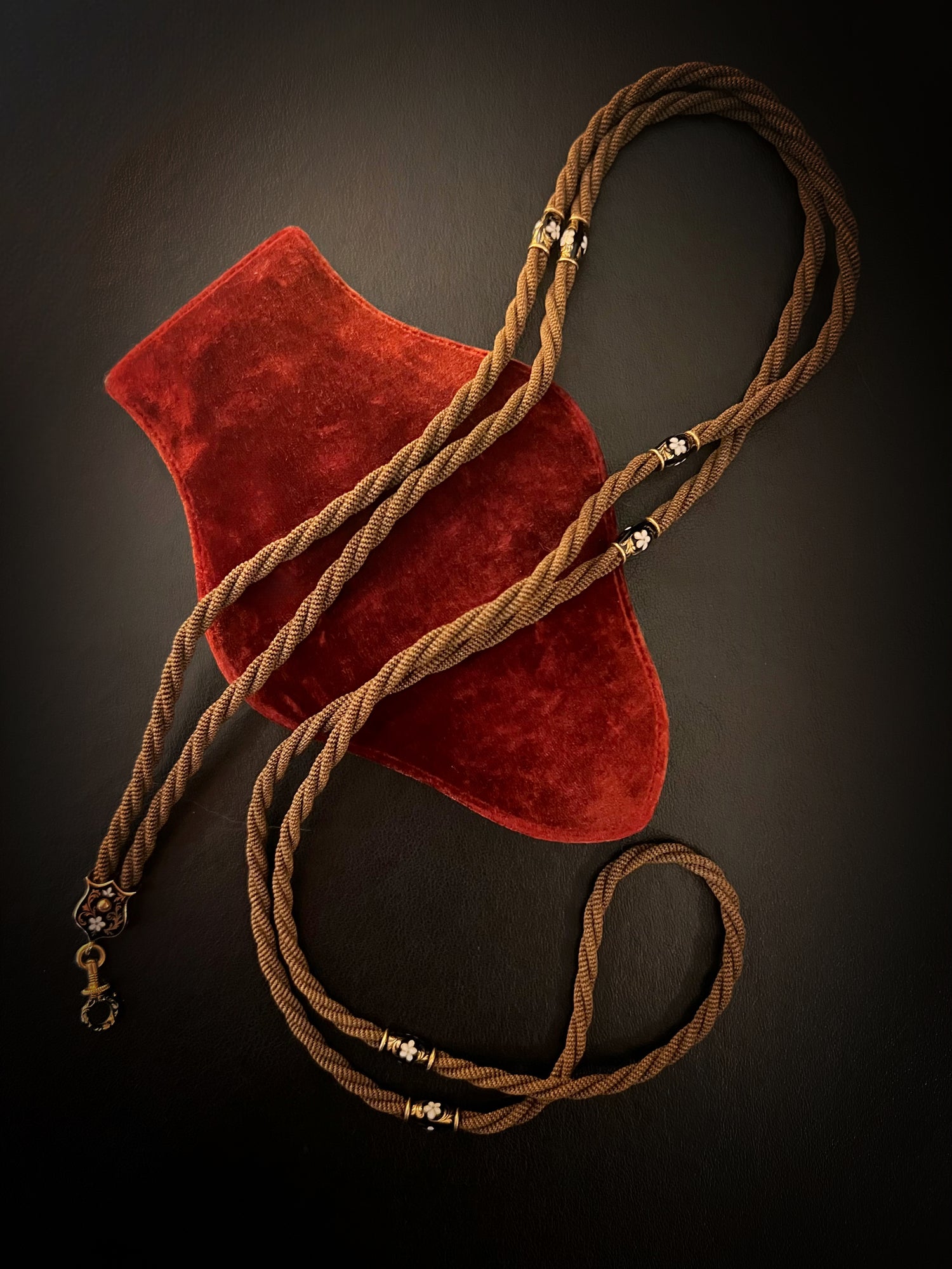 The twisted hair is interspaced with six high carat gold and enamel matching beads!